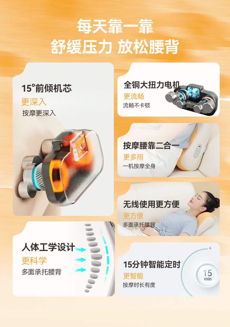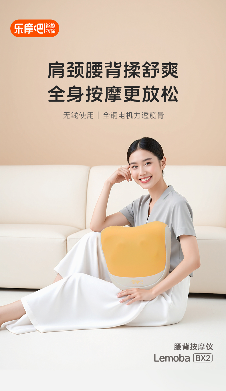 【按摩腰靠二合一】乐摩吧 腰背按摩器 一机按摩全身 可舒缓放松颈椎/腰部/背部/脚足/腹部/斜方肌 模拟人手揉捏 恒温入房 缓解疲劳LMB-BX2