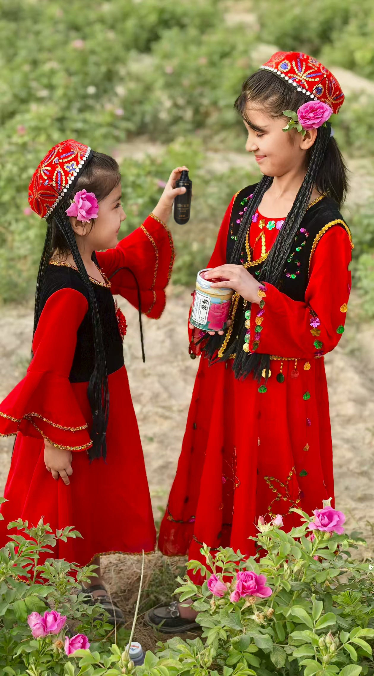 上春晚的两姐妹,体验玫瑰花纯露