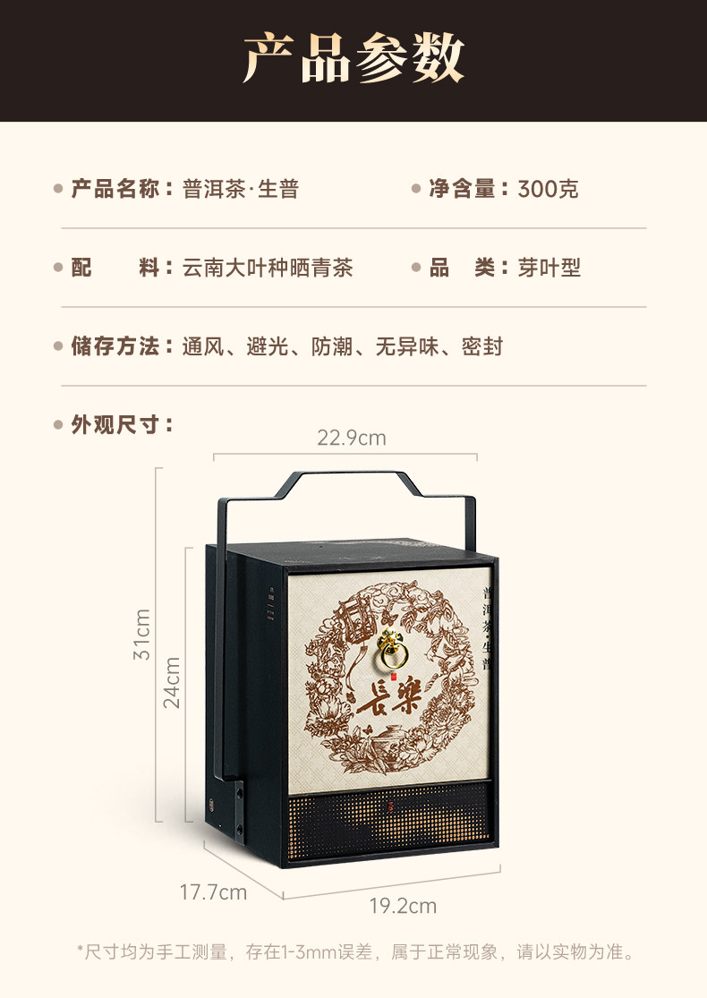 【年货礼盒】茶叶 云南普洱 普洱茶 普洱生茶 长乐 提篮 茶饮 五虎 300g