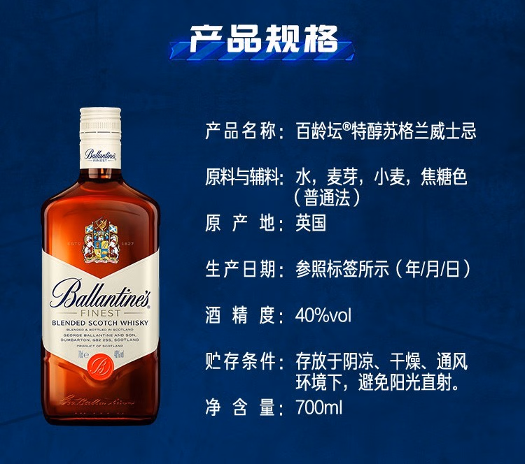 百龄坛 特醇苏格威士忌 700ml/1瓶/2瓶