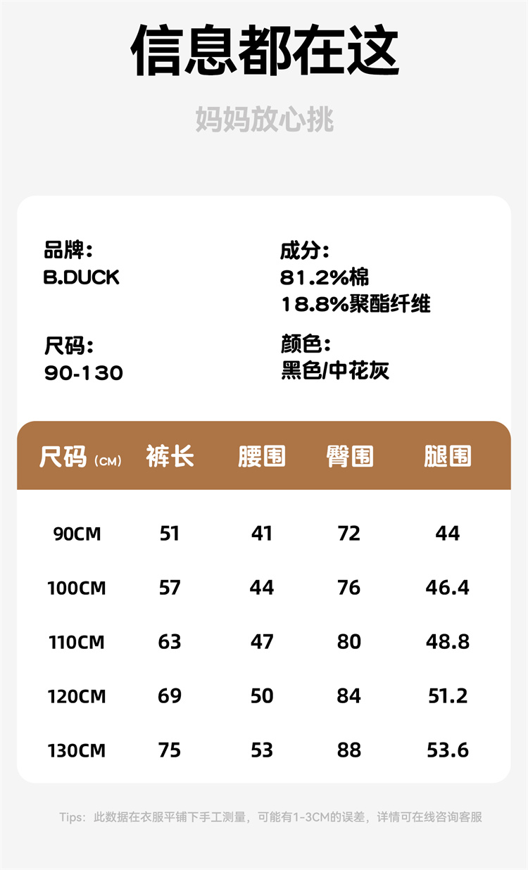 B.Duck小黄鸭童装春秋针织裤90-130 BF3563006