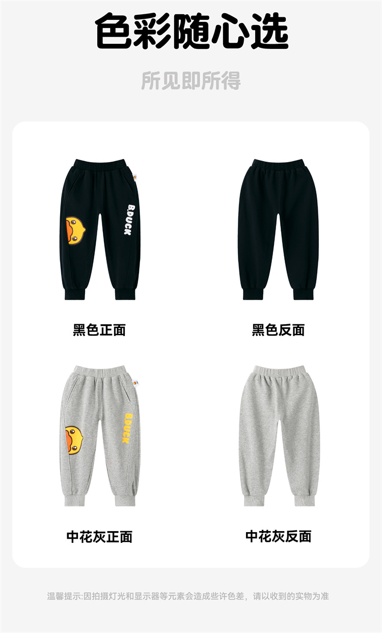 bduck小黄鸭童装春秋男女童运动裤春秋儿童裤子纯棉中小童长裤105-150 BF1663056