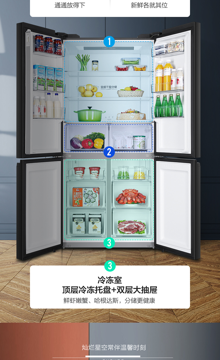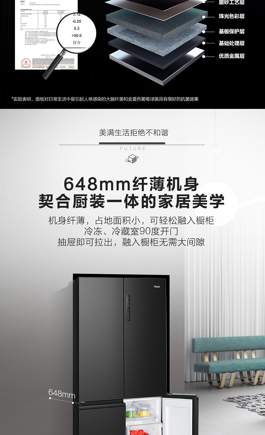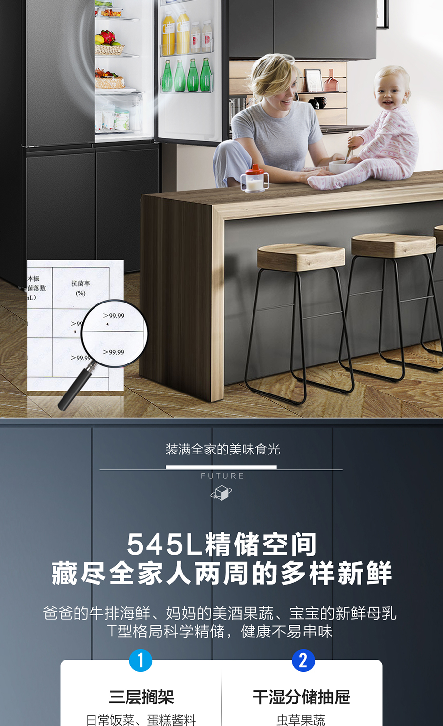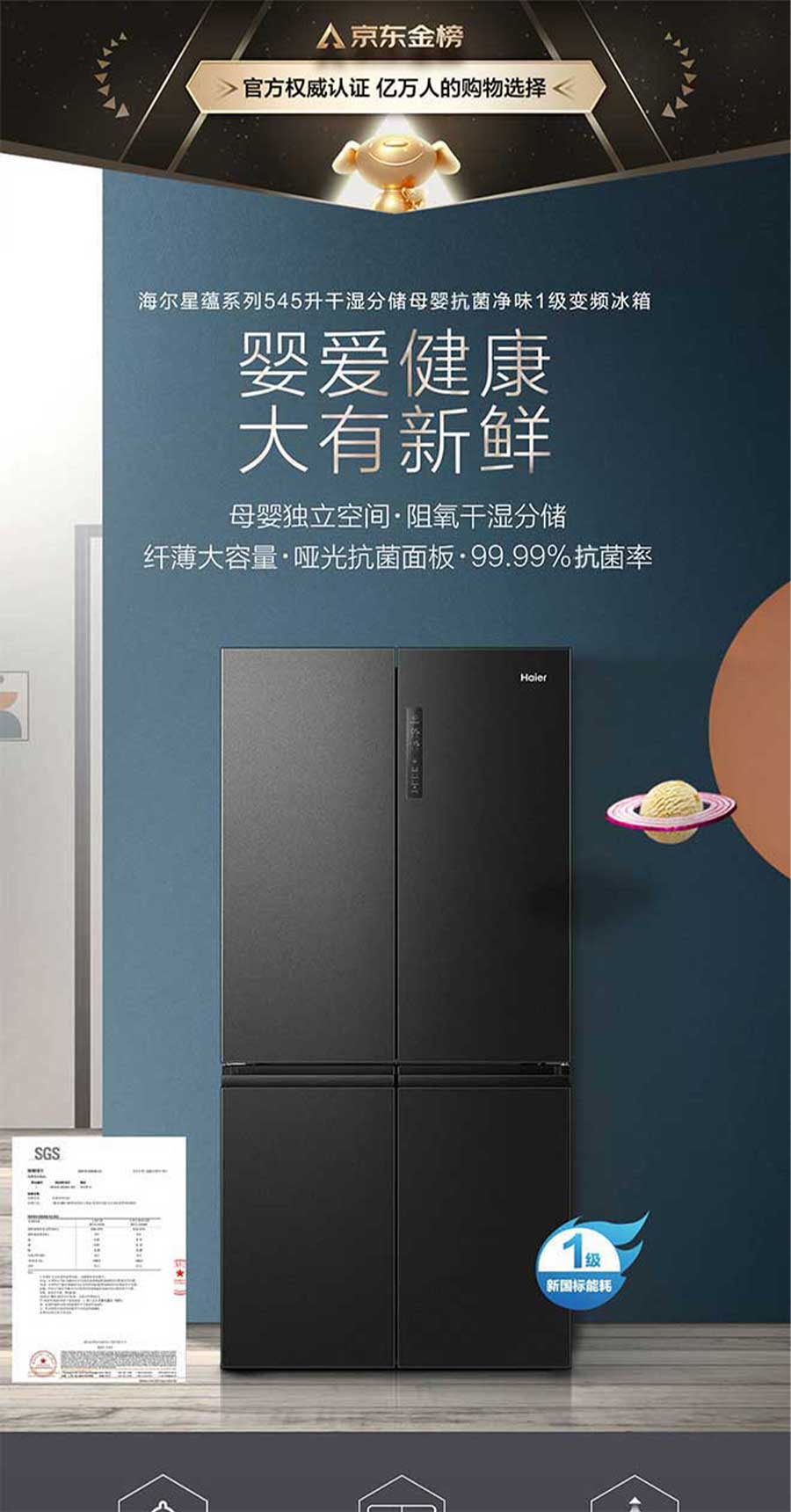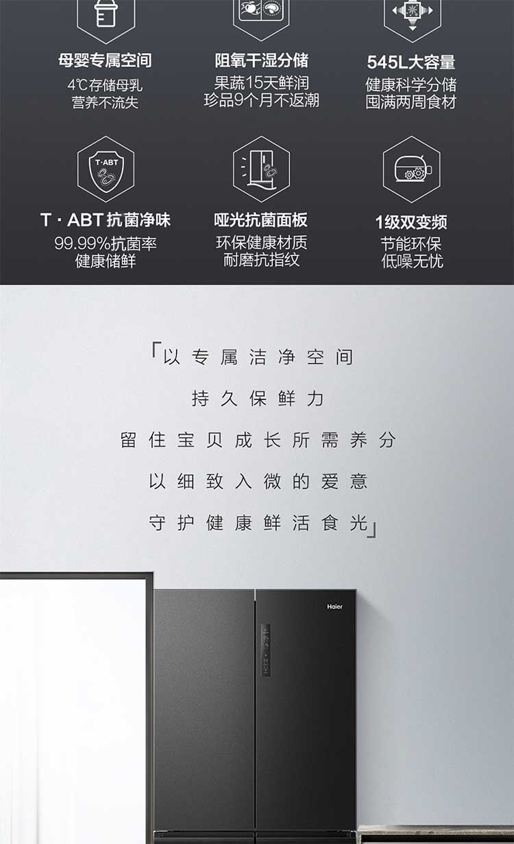 【下单前请先与客服联系】海尔(Haier)545升星蕴旗舰系列风冷无霜双变频十字门冰箱干湿分储存储母婴食材T·ABT除菌纤薄箱体BCD-545WFPB