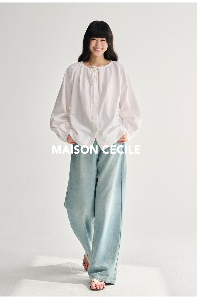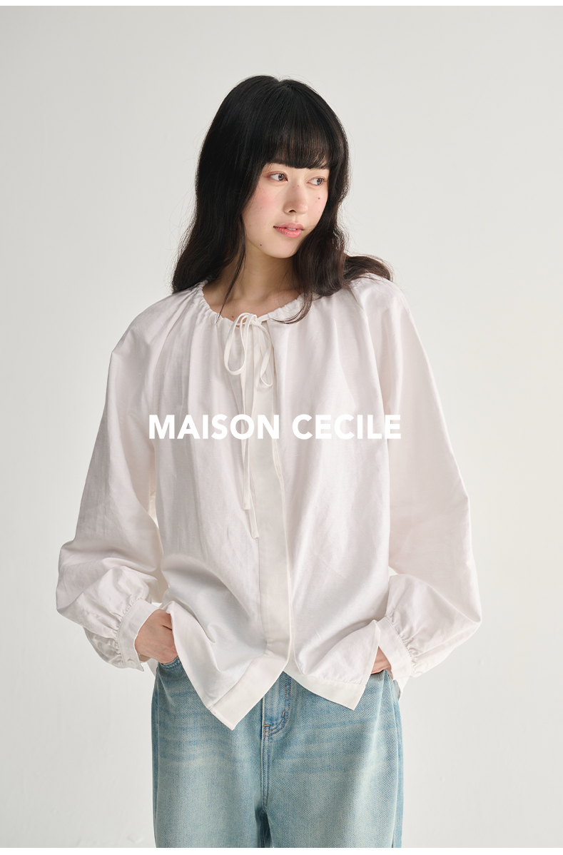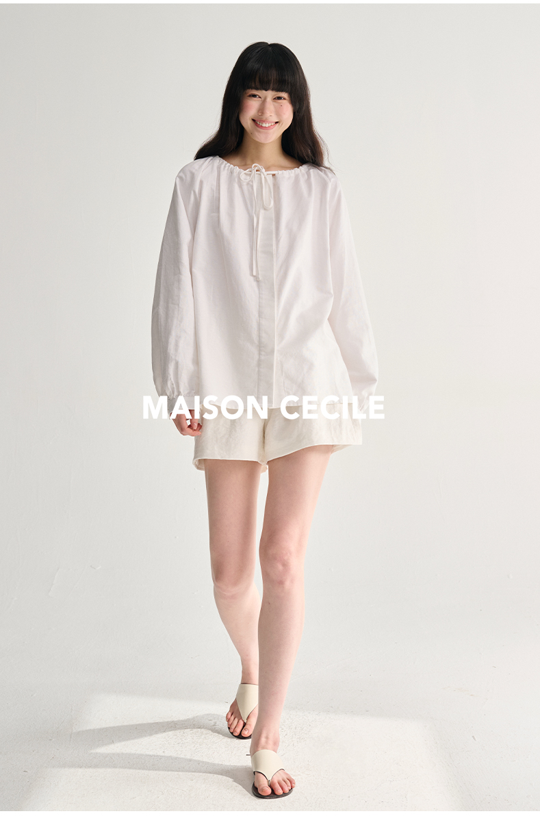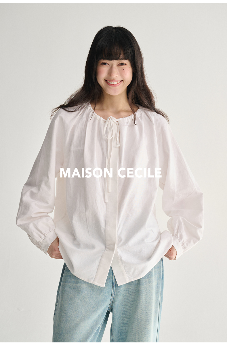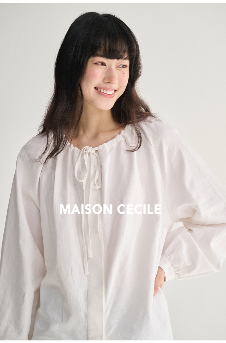 MAISON CECILE亚麻肌理感可调节抽绳圆领宽松简约白衬衫