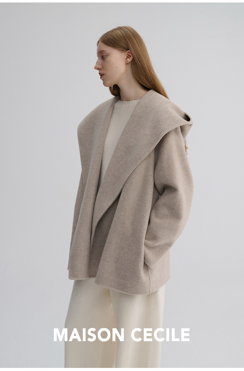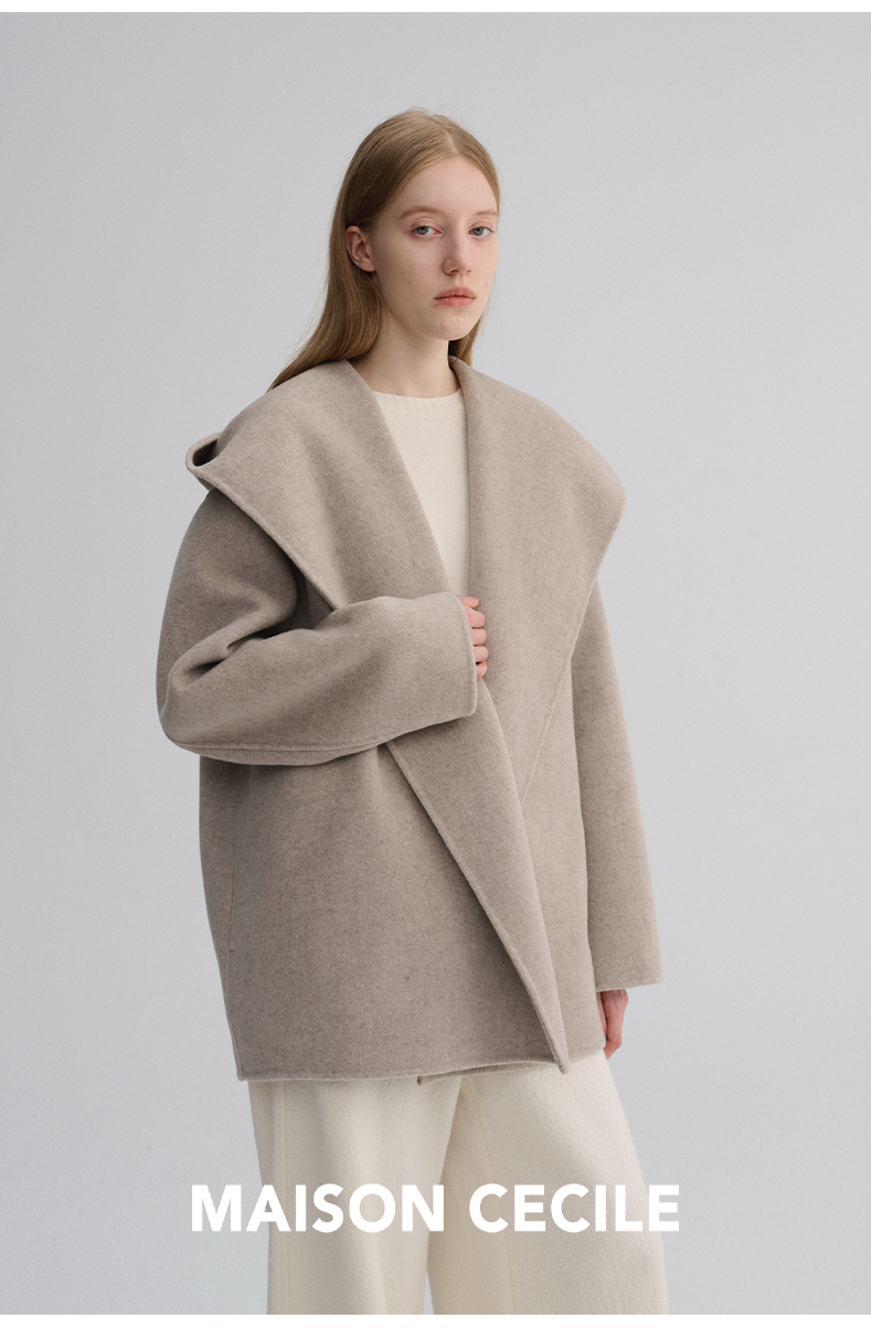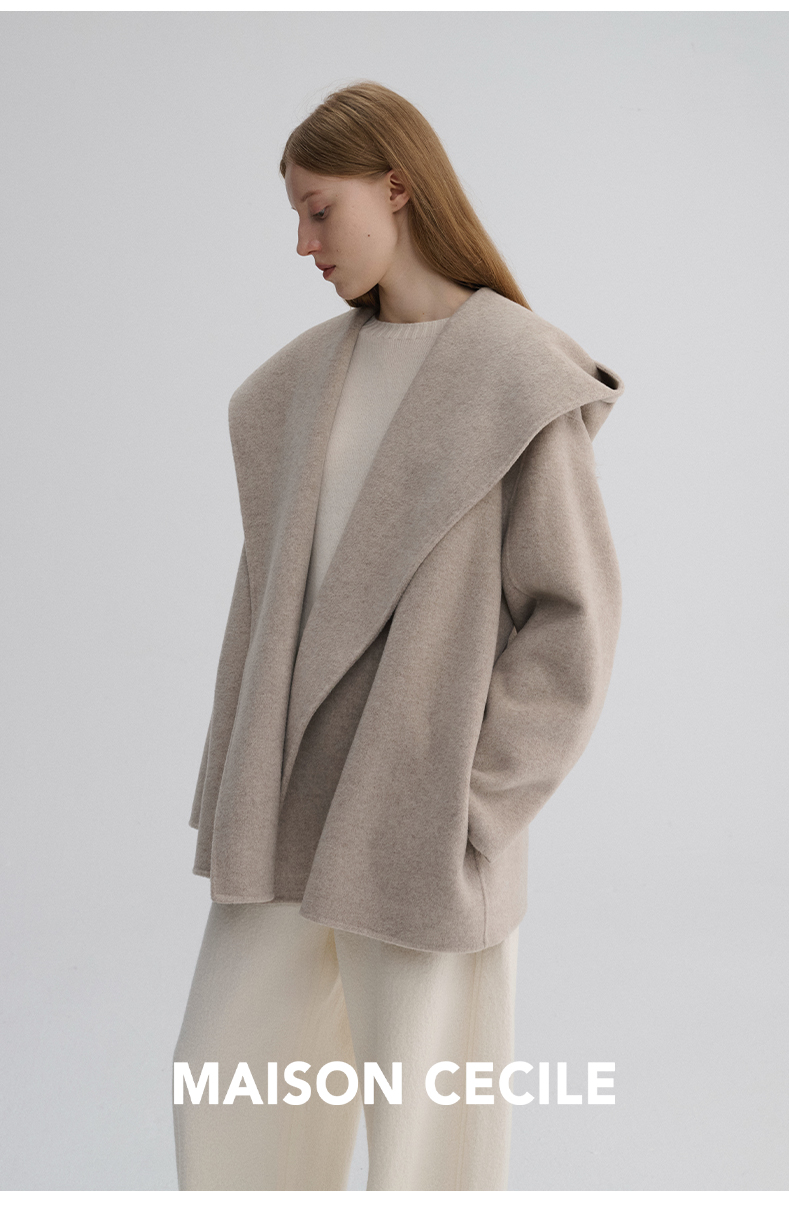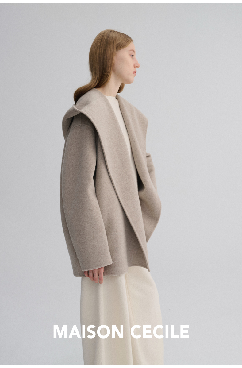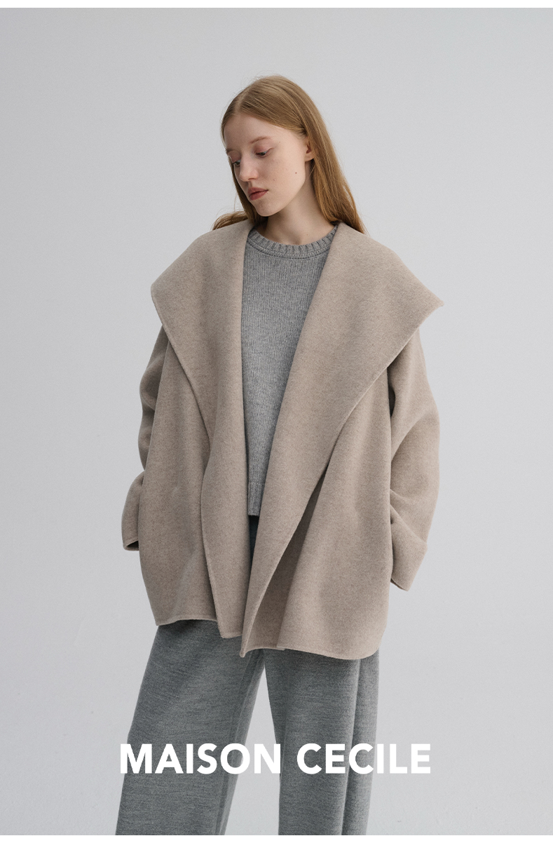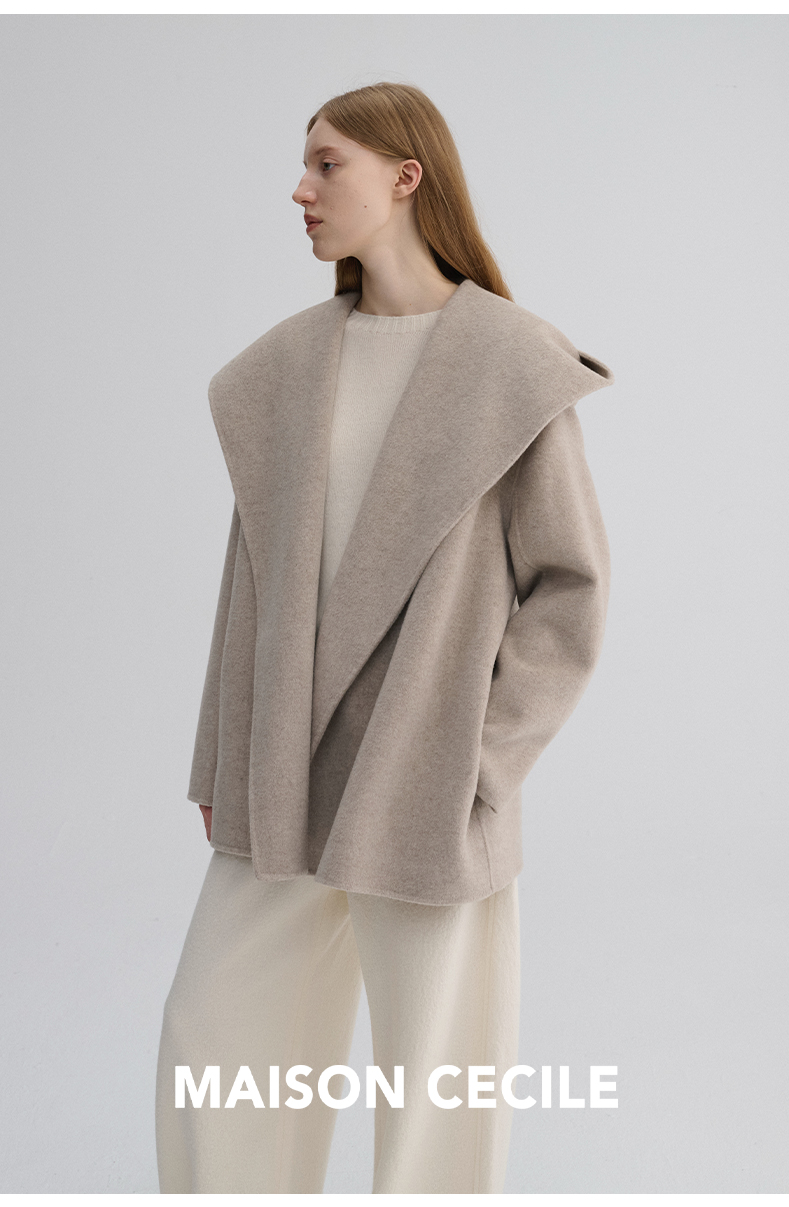 MAISON CECILE 羊驼毛羊毛混纺双面呢浴袍式大翻领廓形短款大衣