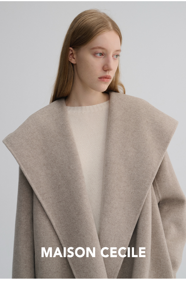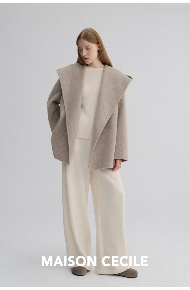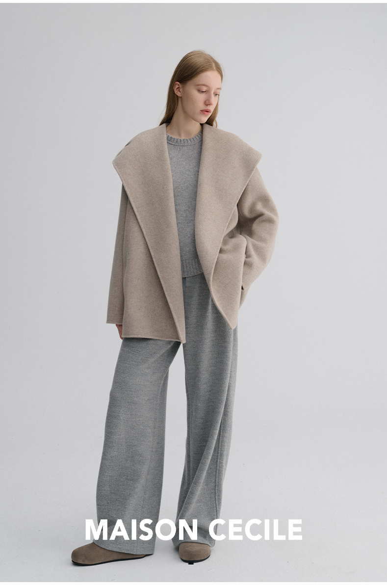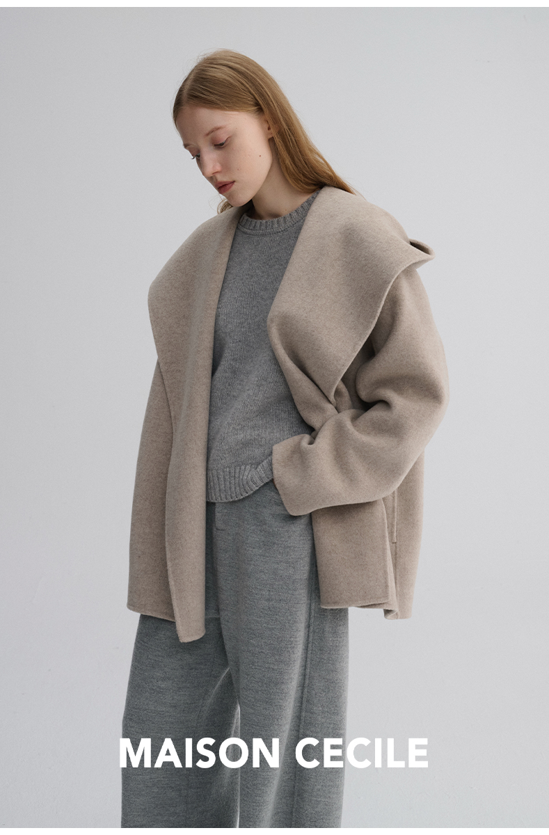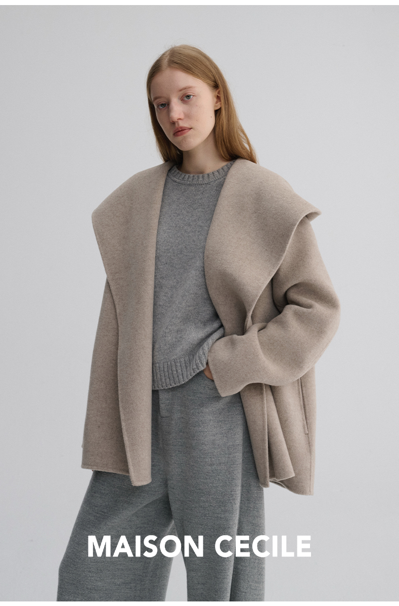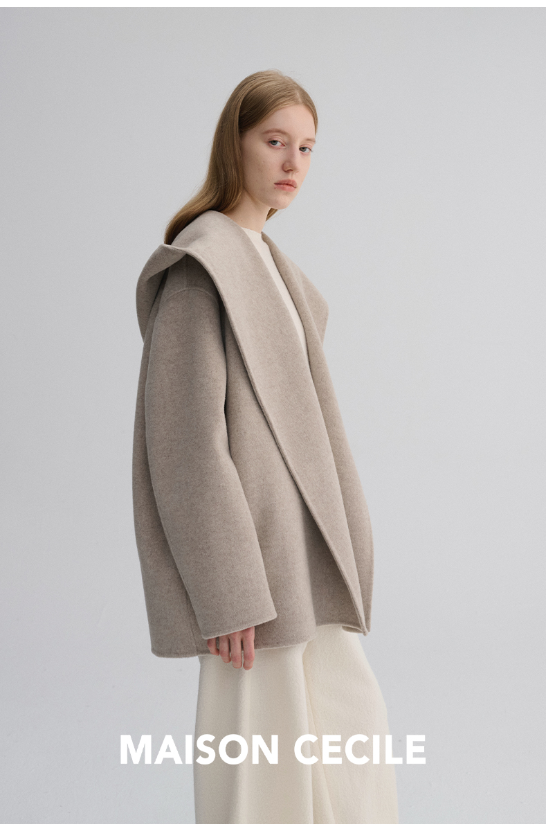 MAISON CECILE 羊驼毛羊毛混纺双面呢浴袍式大翻领廓形短款大衣