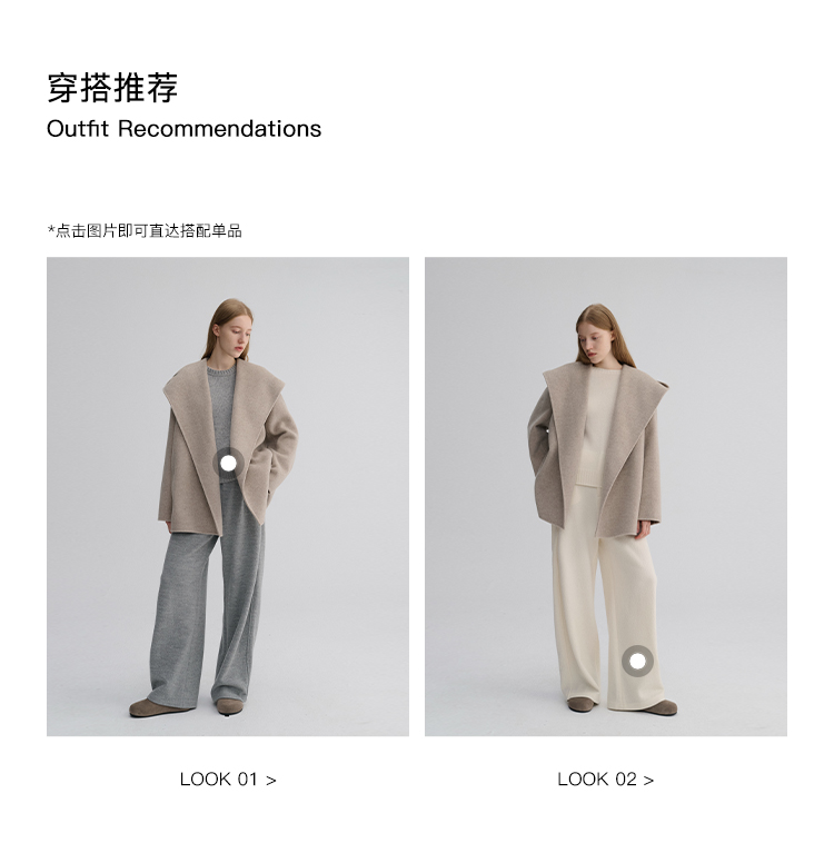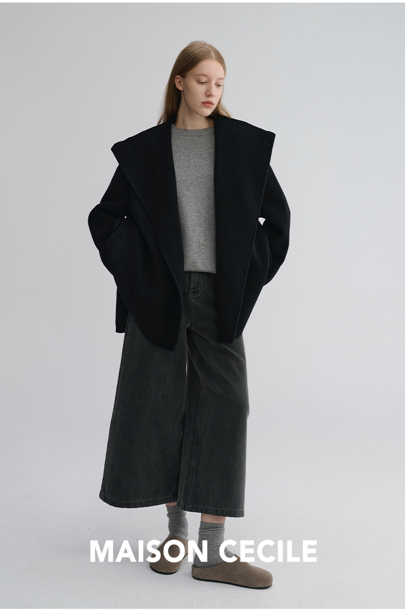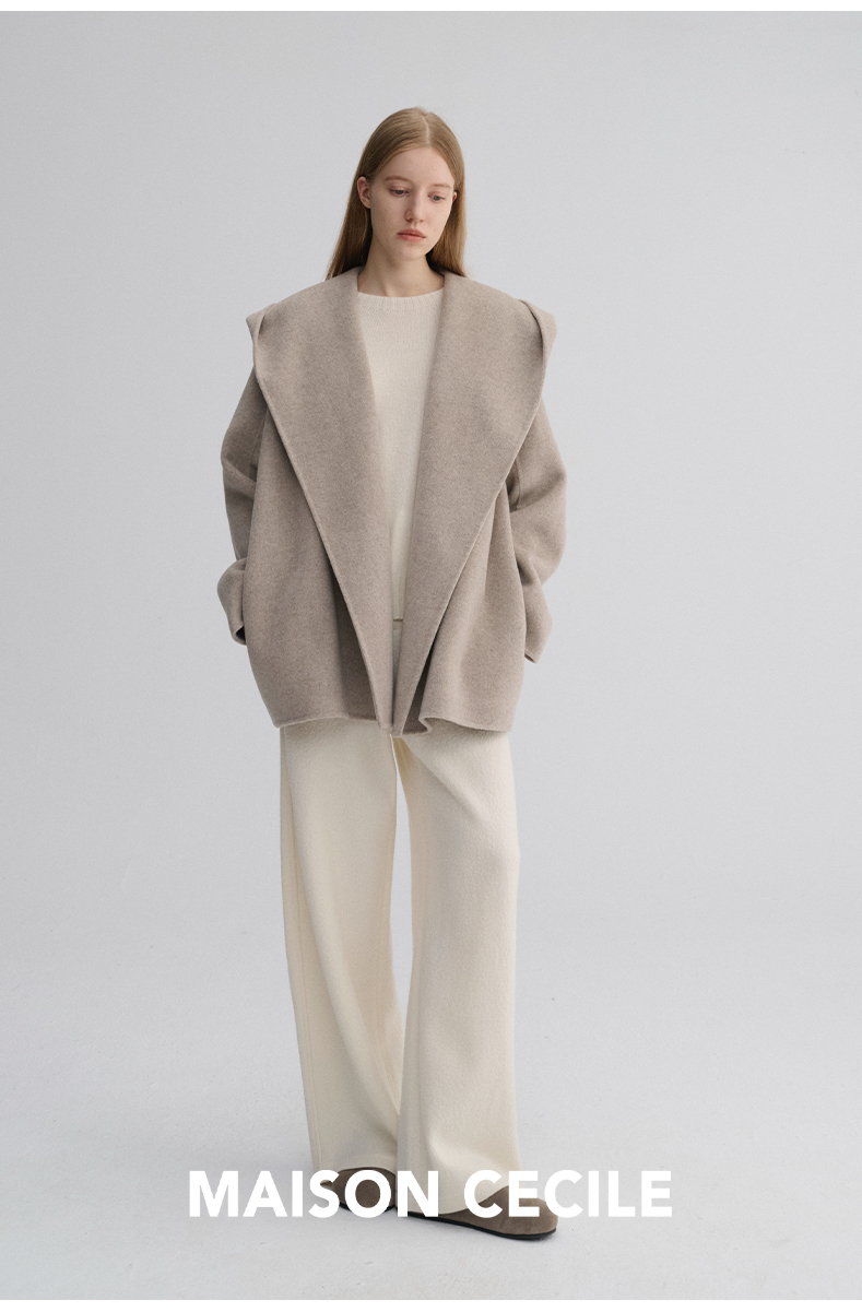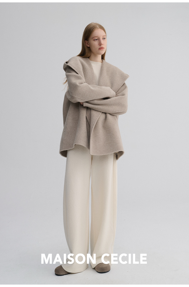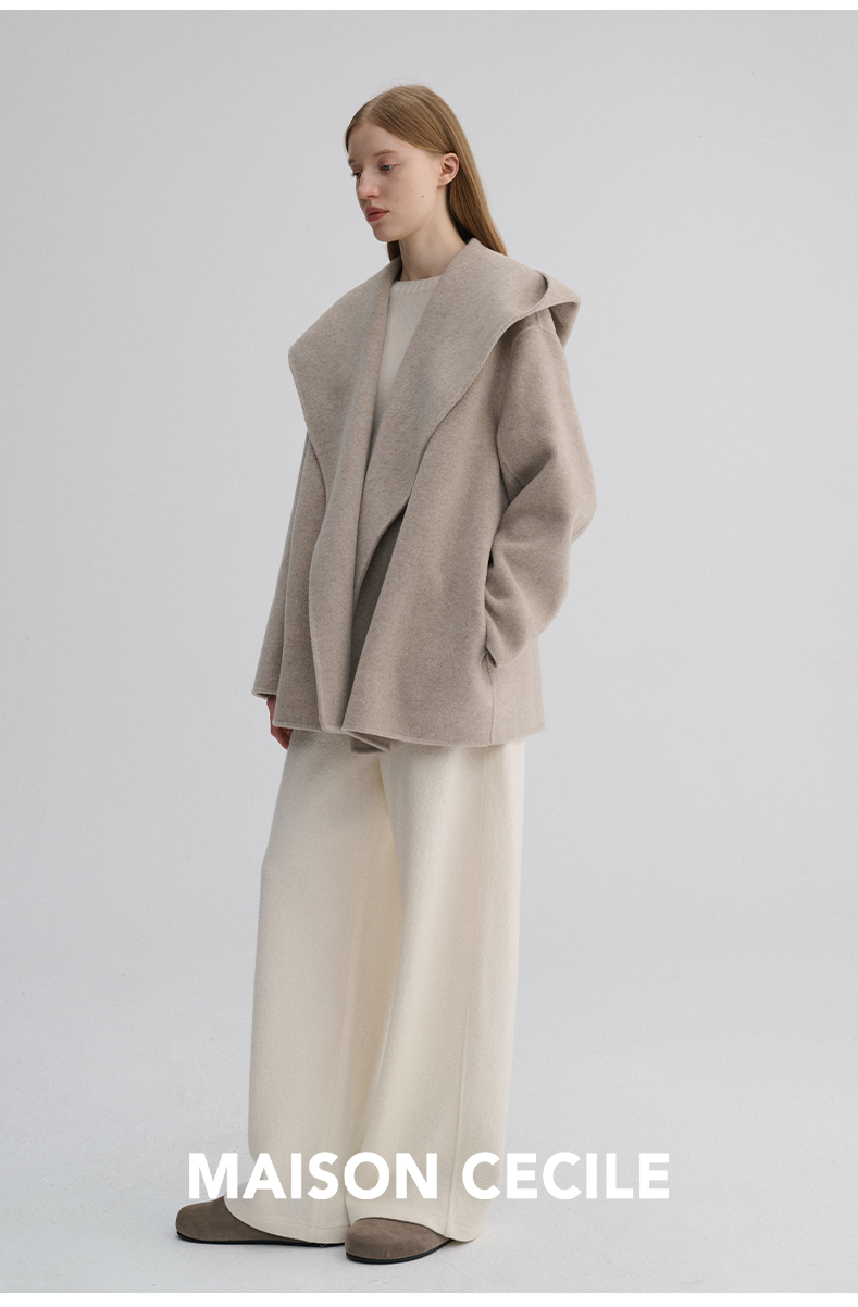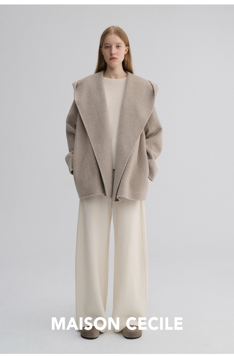 MAISON CECILE 羊驼毛羊毛混纺双面呢浴袍式大翻领廓形短款大衣