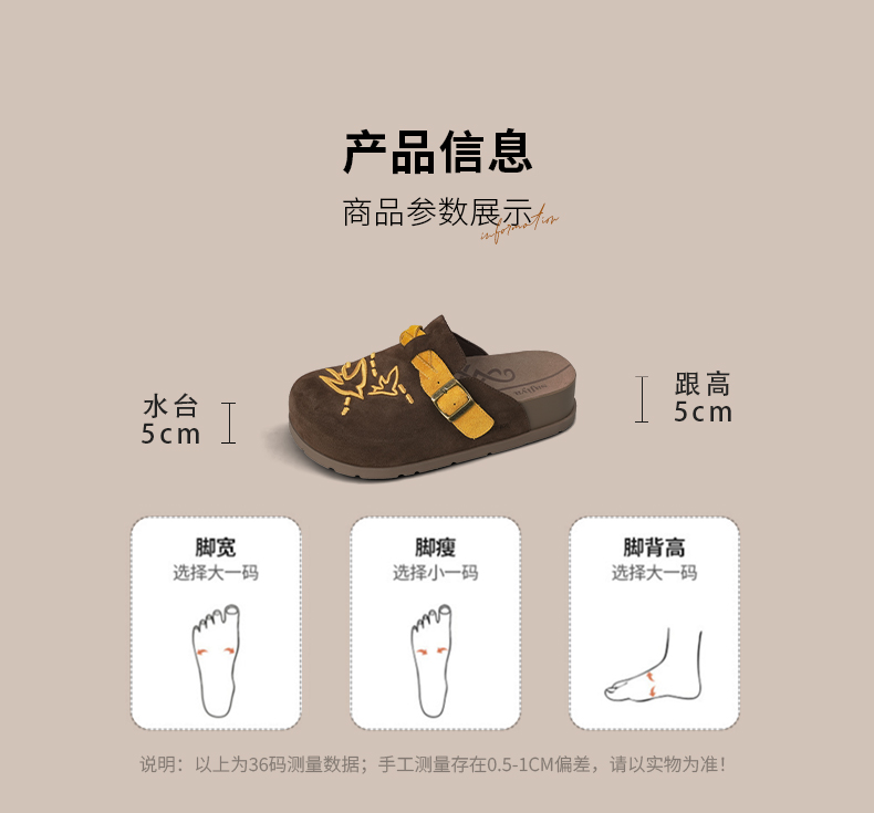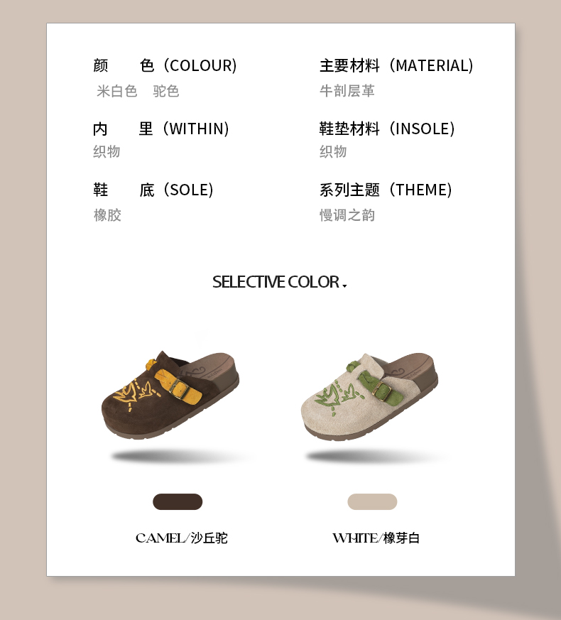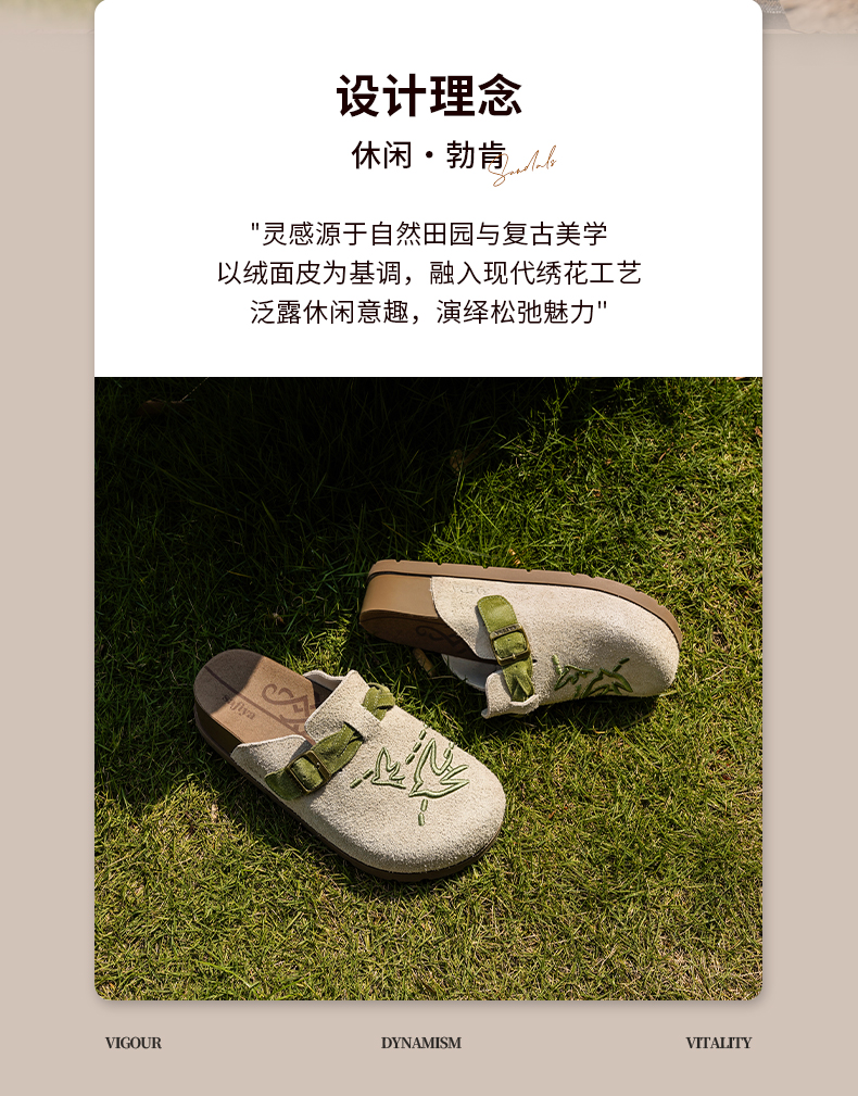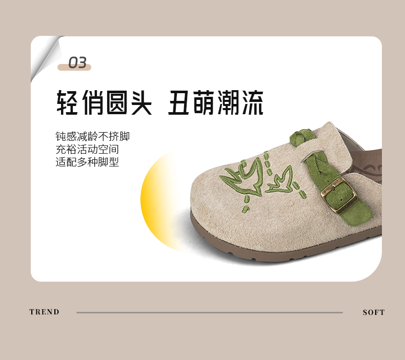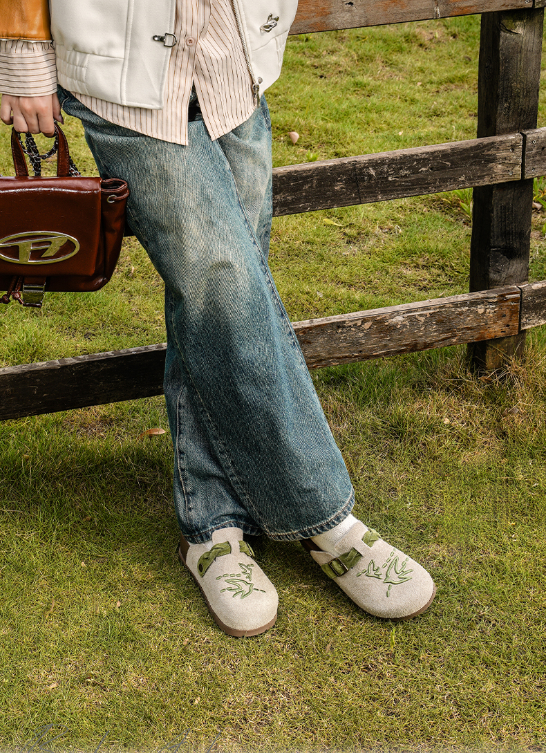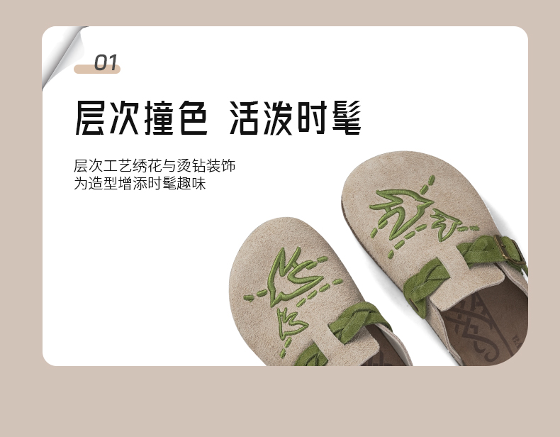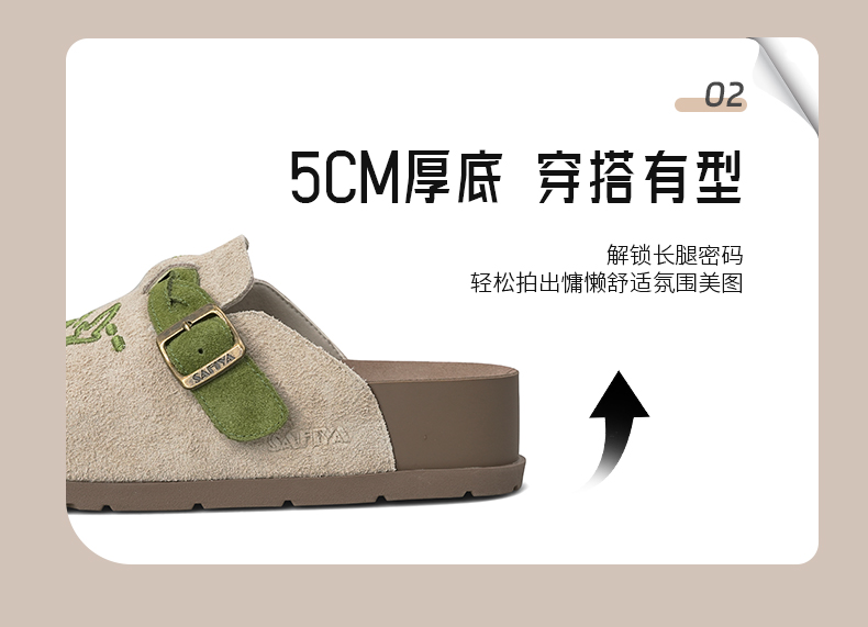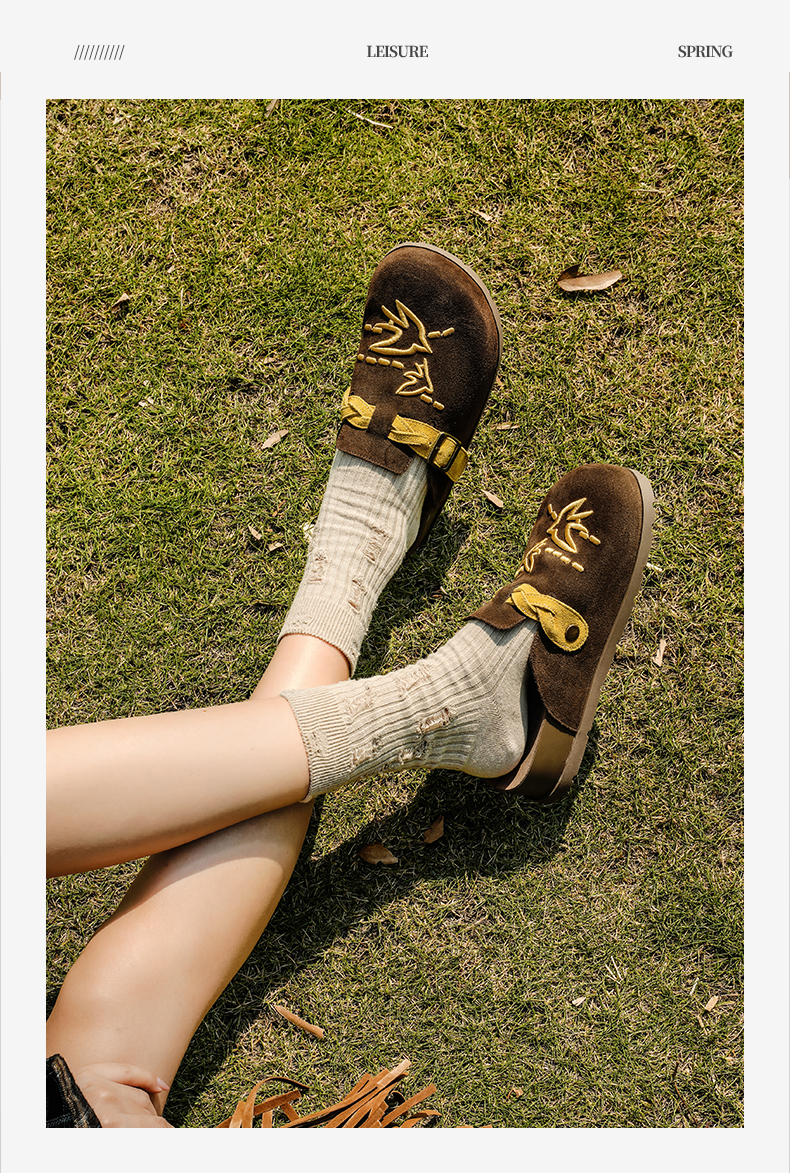 预售~Safiya/索菲娅2025小众复古刺绣飞鸟百搭拼色厚底懒人包头勃肯拖SFD3110150