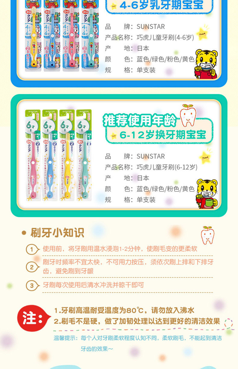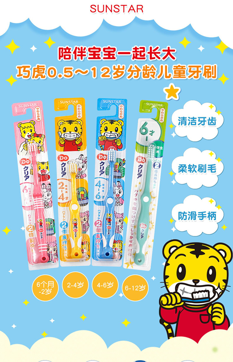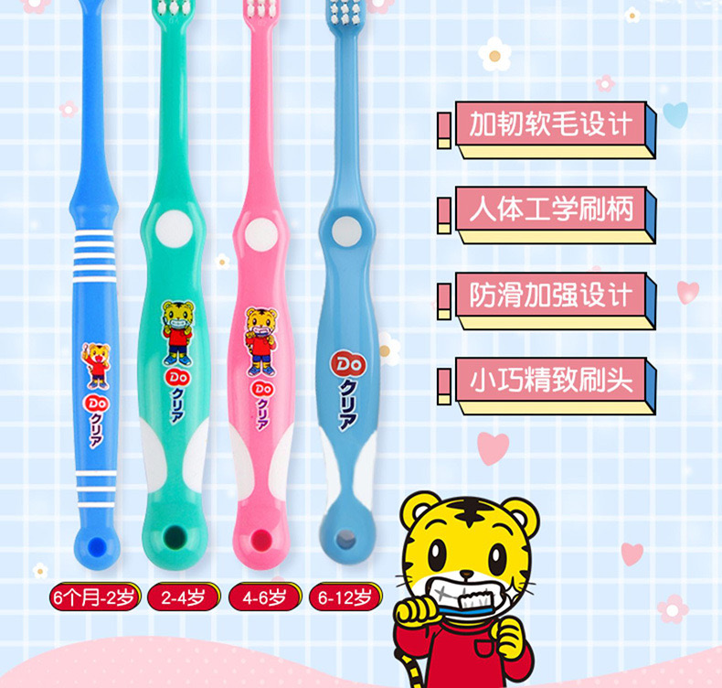 【日本儿童牙刷/儿童牙膏】 巧虎儿童宝宝护齿牙膏70g清新水果味2岁以上 、巧虎儿童牙刷分年龄段清洁软毛 6个月以上婴儿宝宝(母婴)
