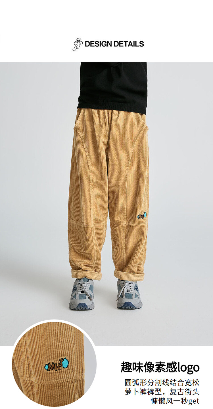 马拉丁潮牌漫画家儿童裤子冬新品粗条灯芯绒复古街头萝卜长裤