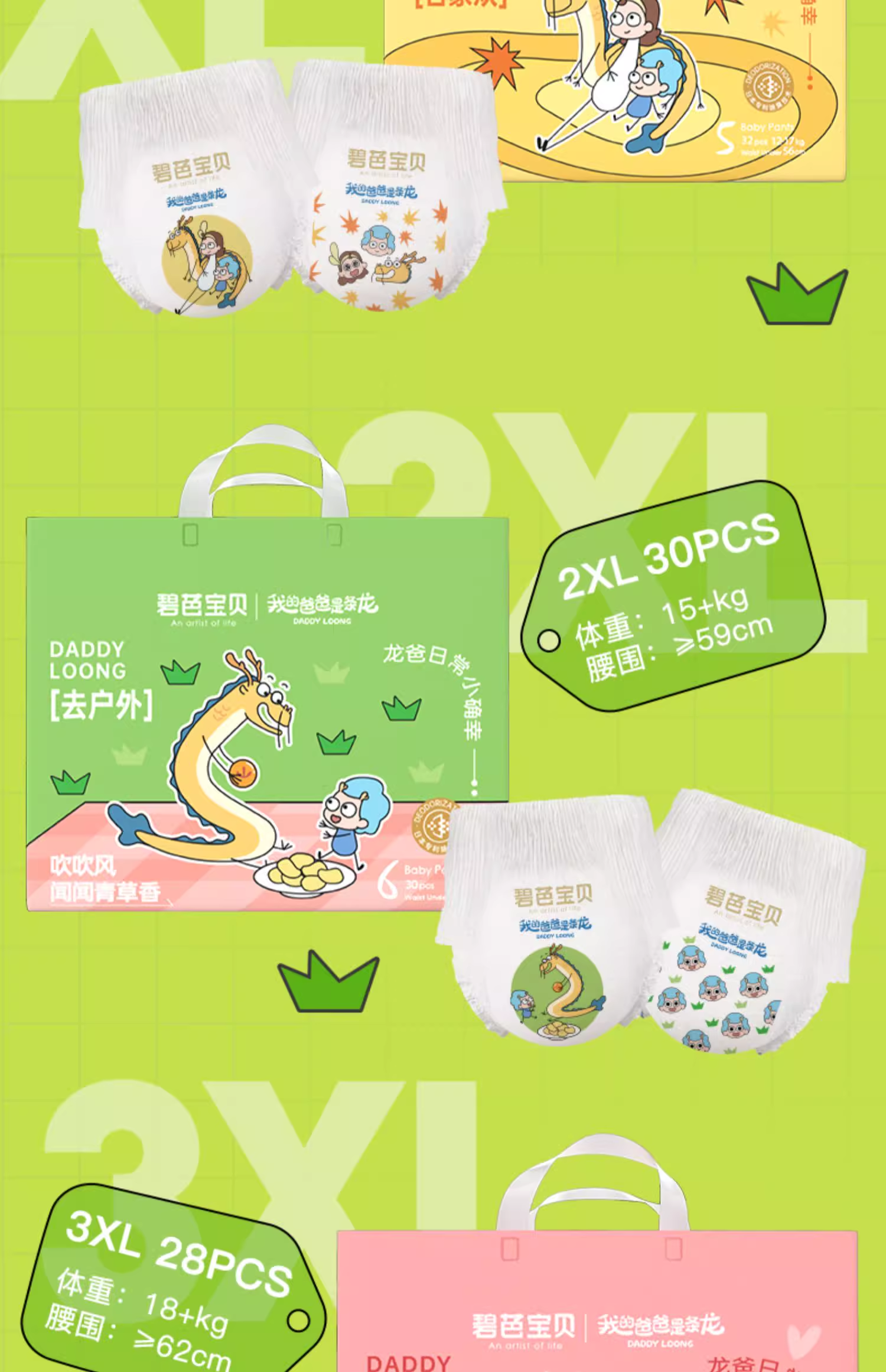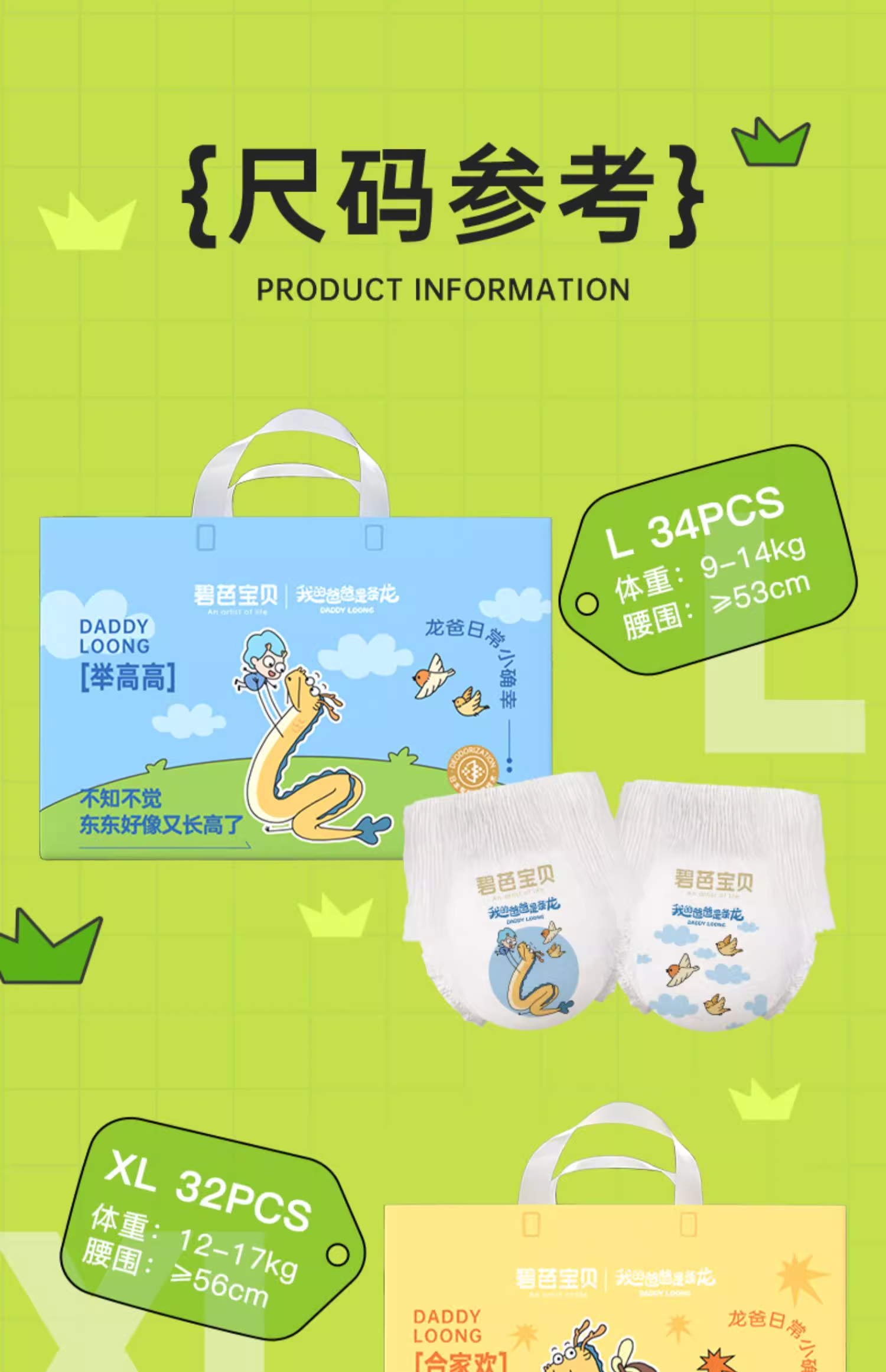 碧芭宝贝Beaba 我的爸爸是条龙婴儿纸尿裤拉拉裤透气除臭高弹莱卡
