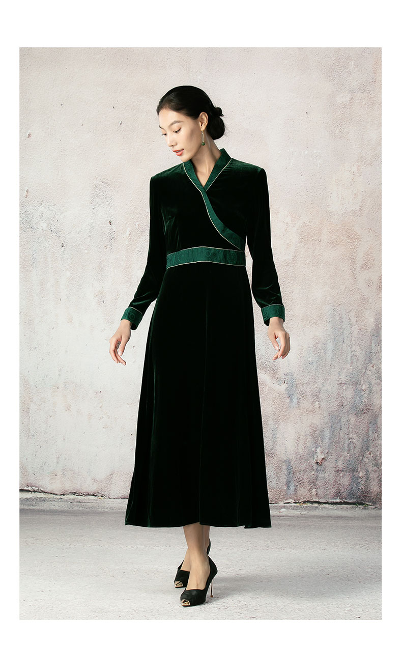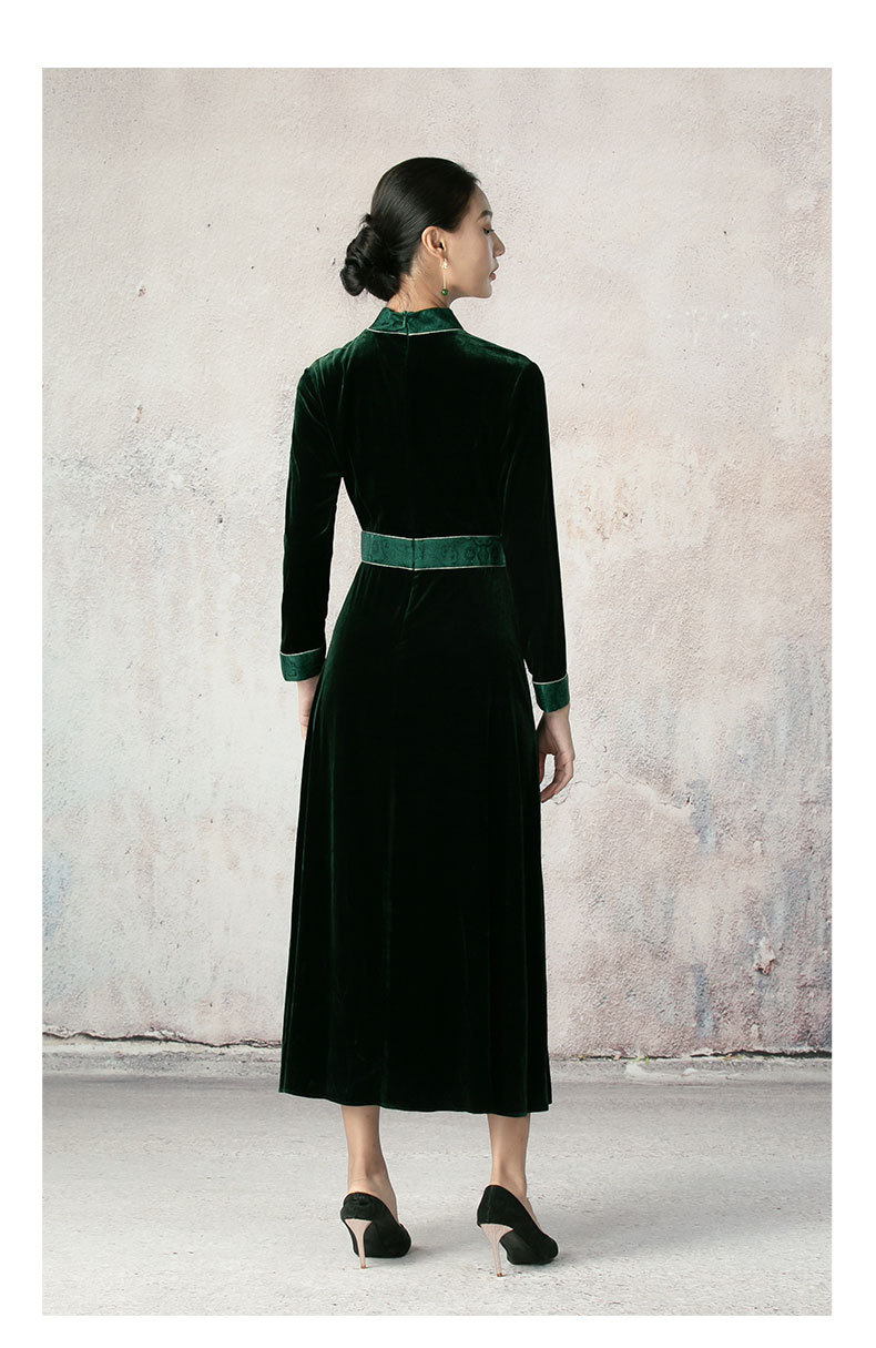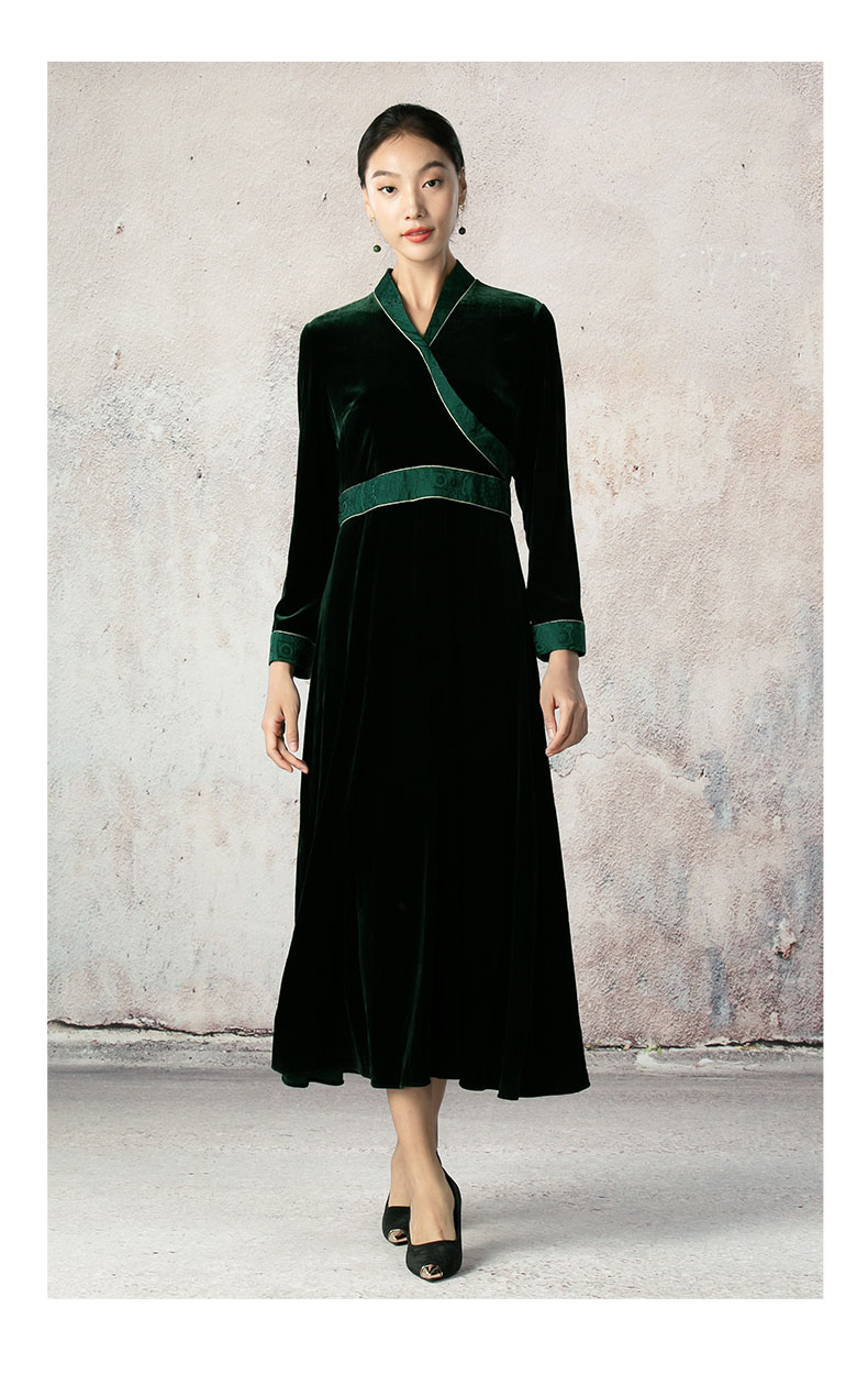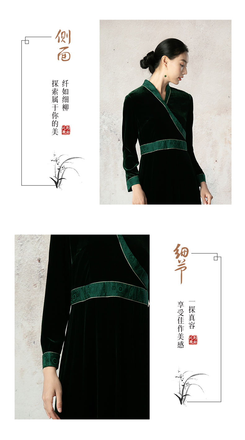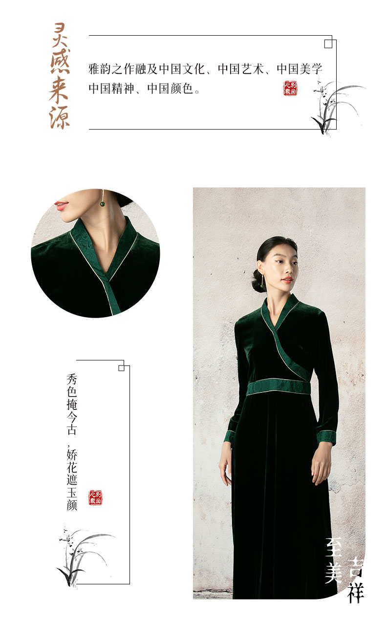 吉祥衣家新中式国风春季新款高端显瘦修身女装春晚绿野秀连衣裙