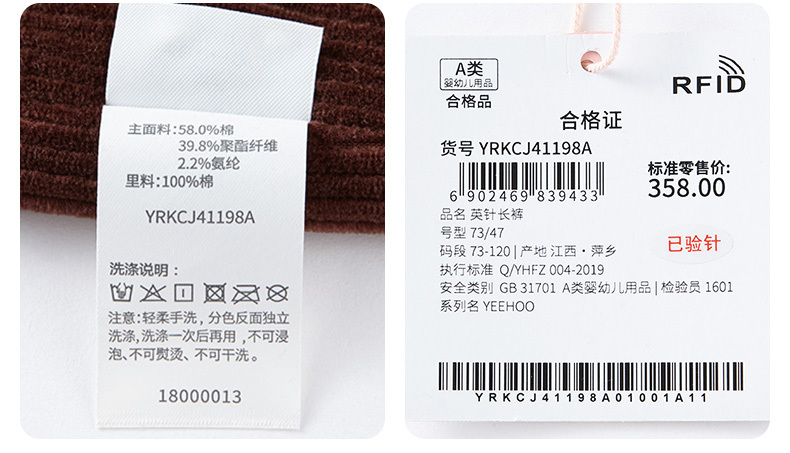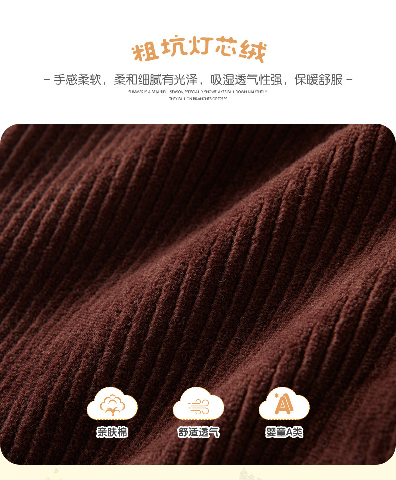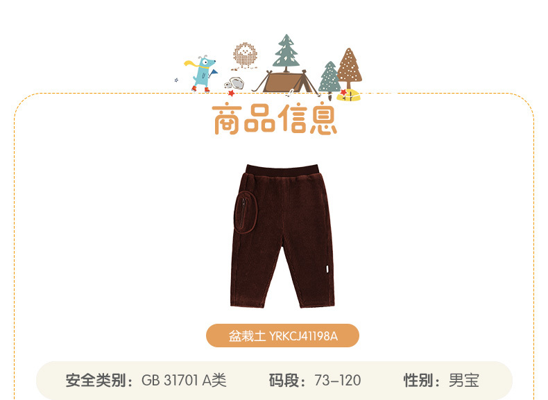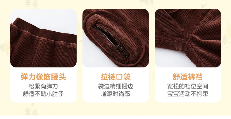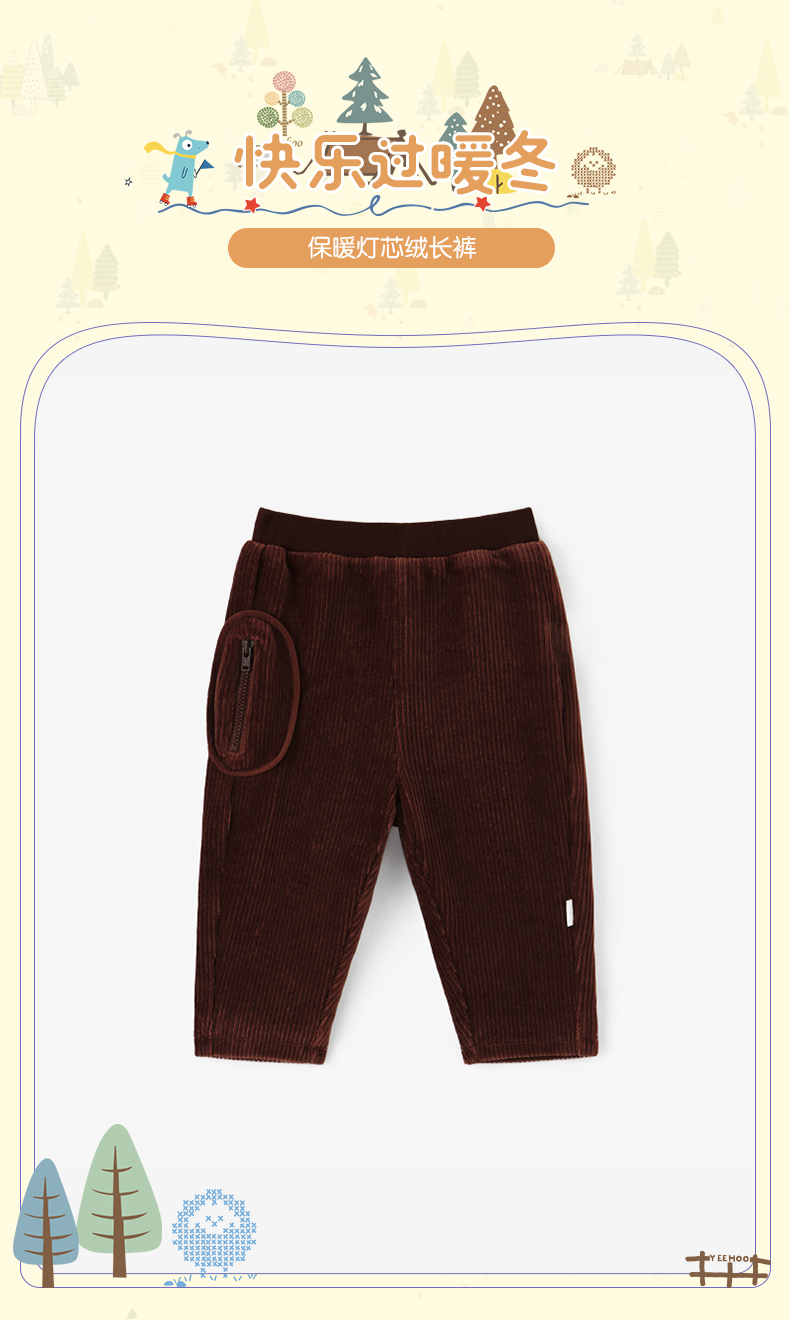 英氏秋冬男童灯芯绒长裤宝宝休闲裤双层保暖裤子YRKCJ41198A秋冬新品