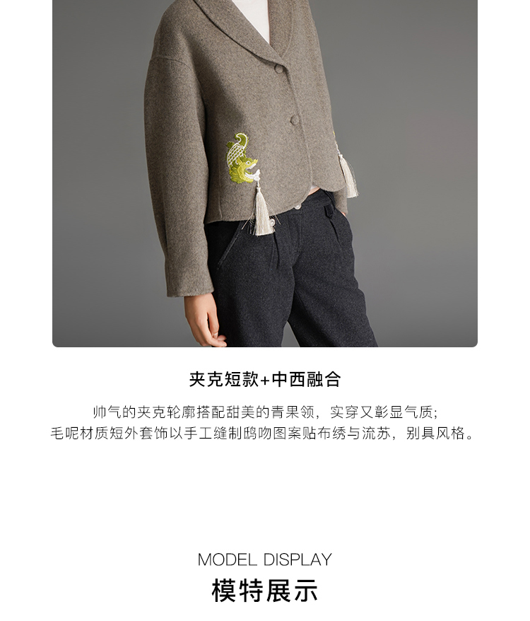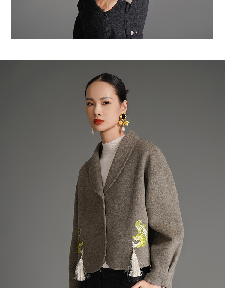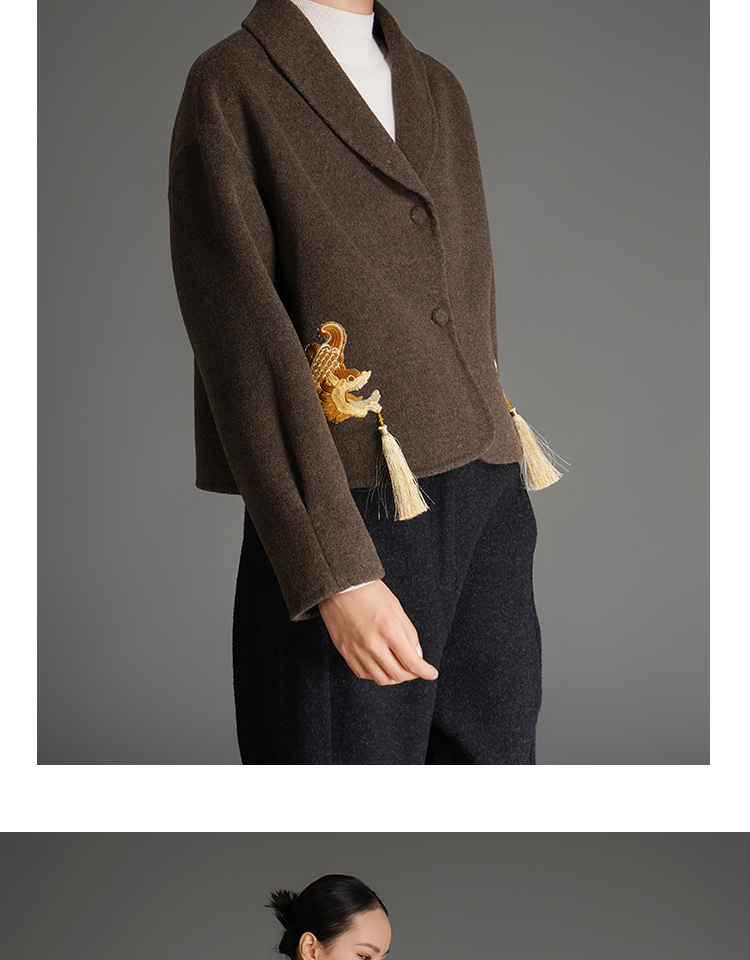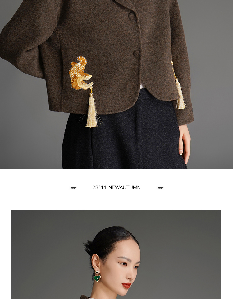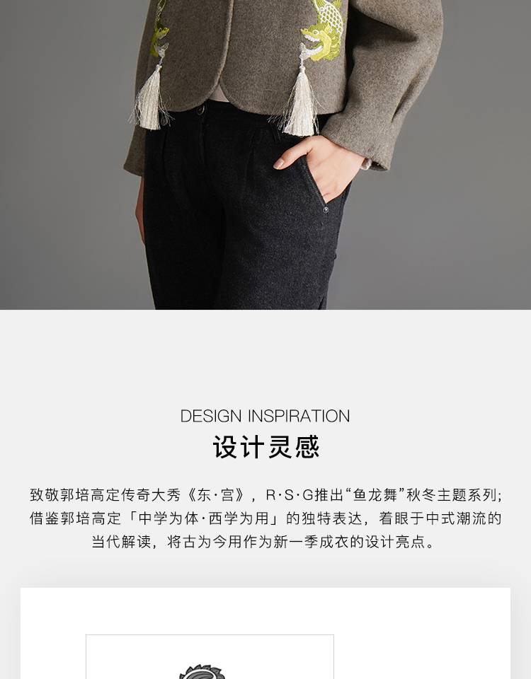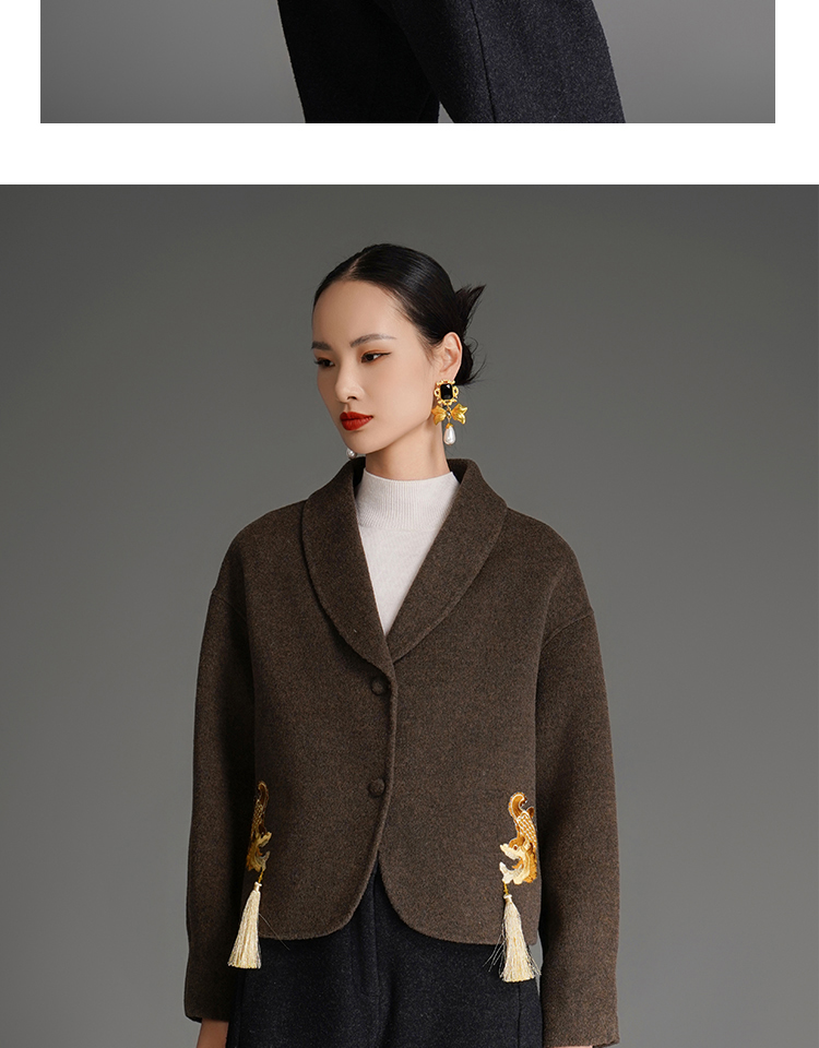 RSG郭培成衣品牌国风鸱吻刺绣设计美拉德秋冬羊绒气质夹克短外套