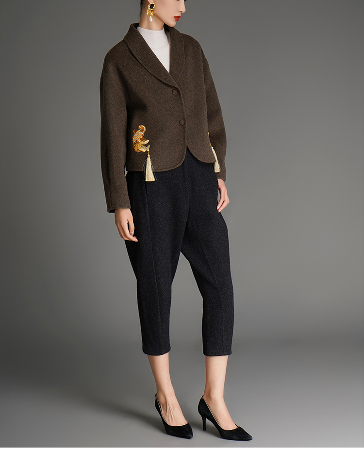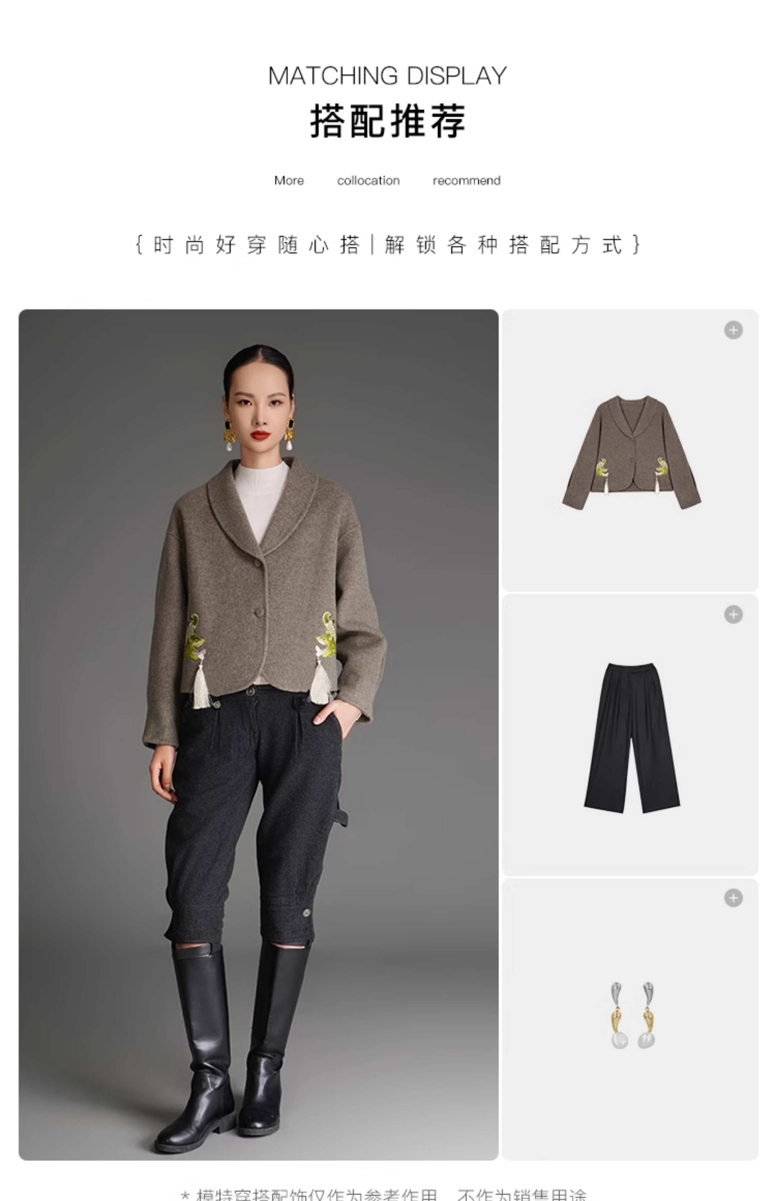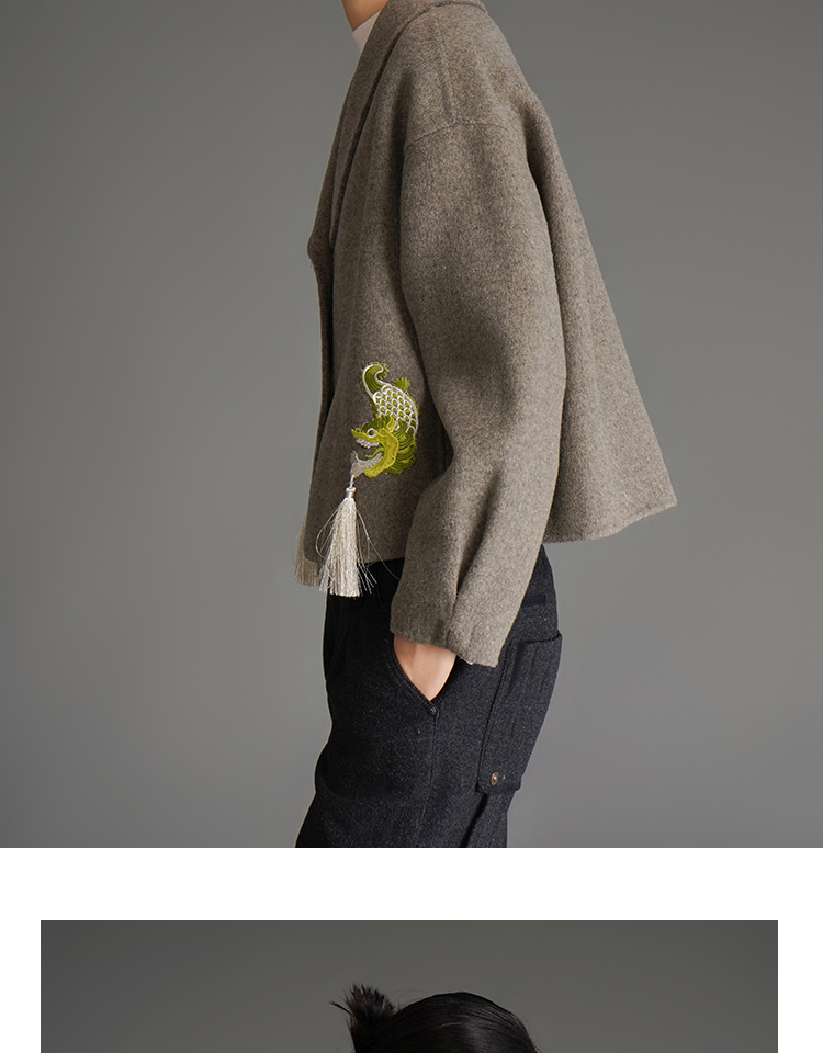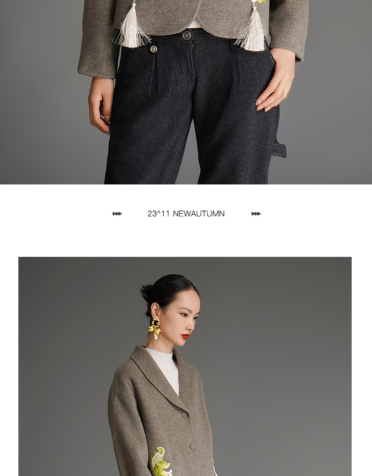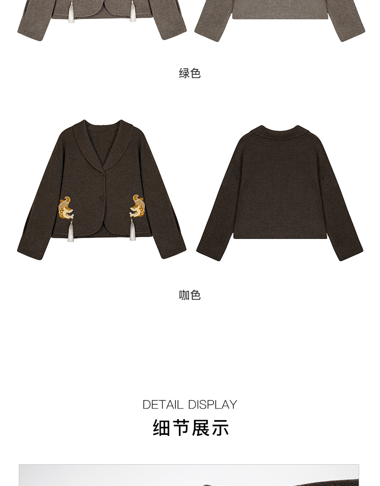 RSG郭培成衣品牌国风鸱吻刺绣设计美拉德秋冬羊绒气质夹克短外套
