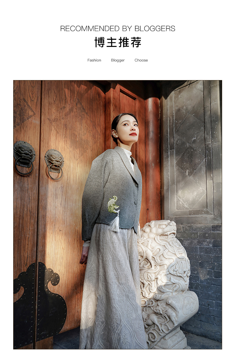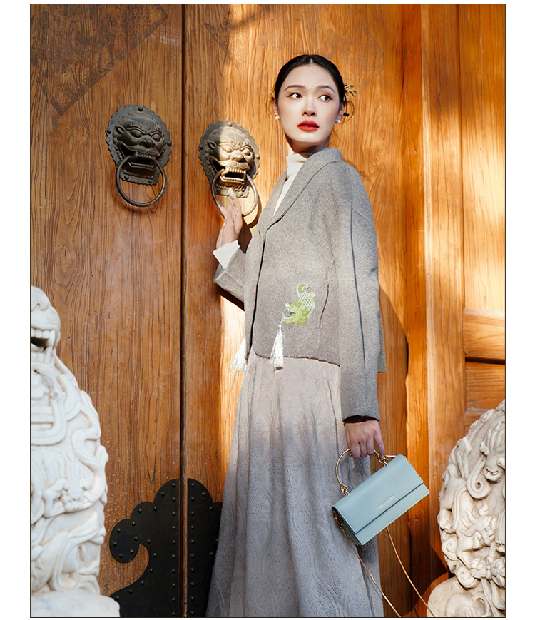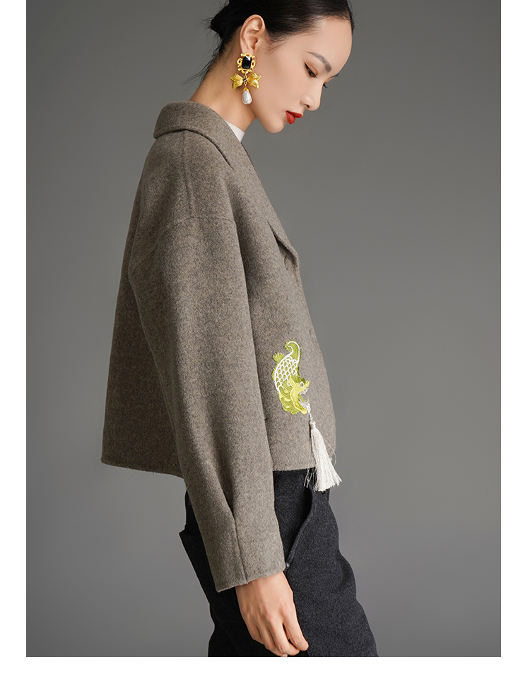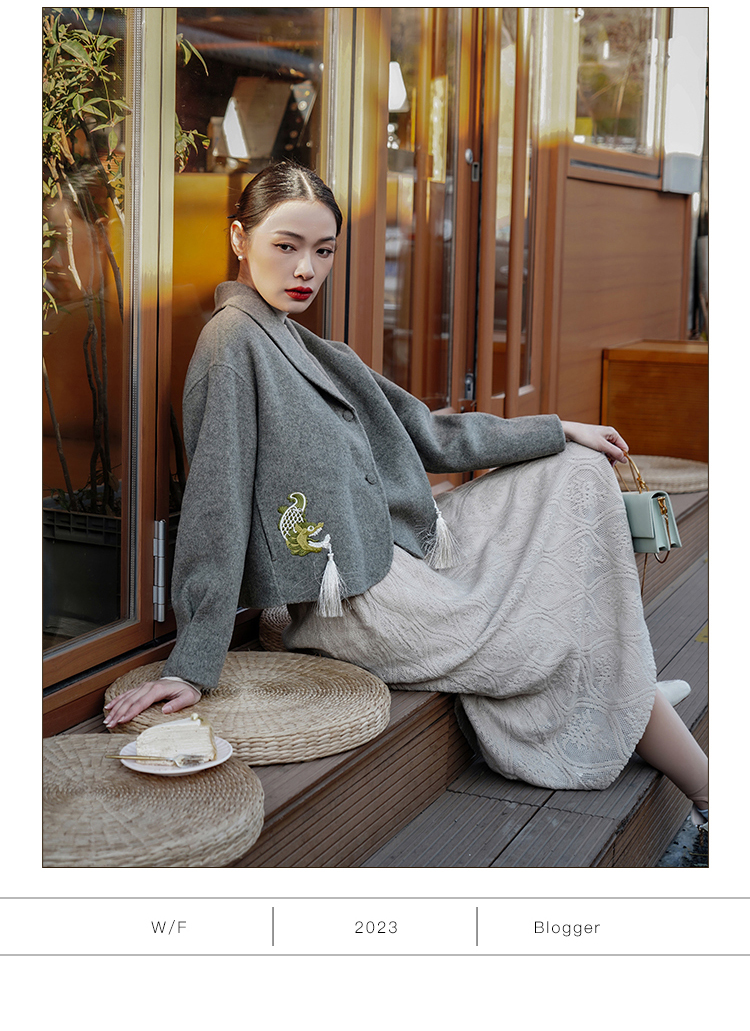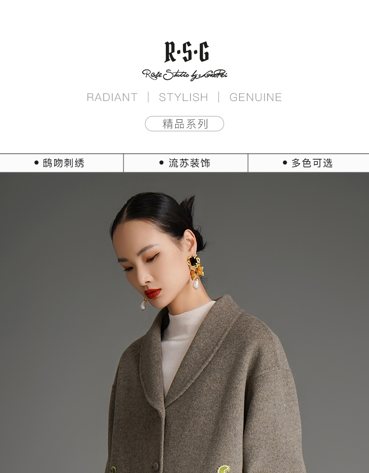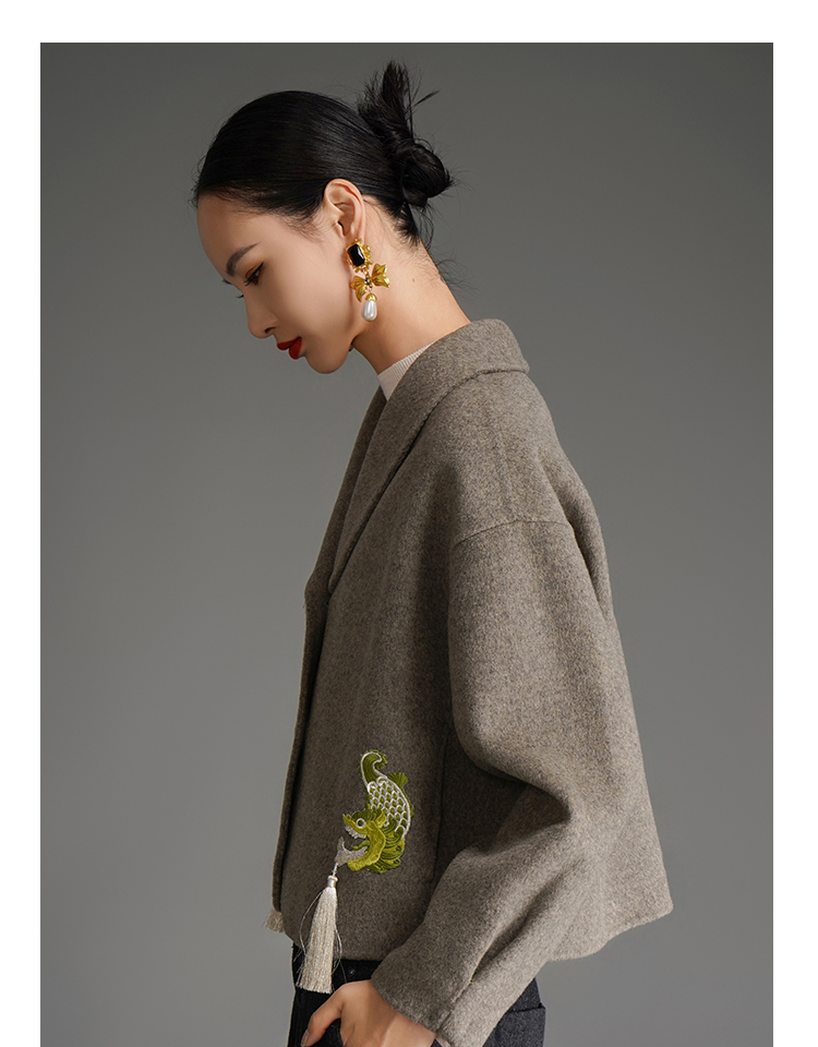 RSG郭培成衣品牌国风鸱吻刺绣设计美拉德秋冬羊绒气质夹克短外套