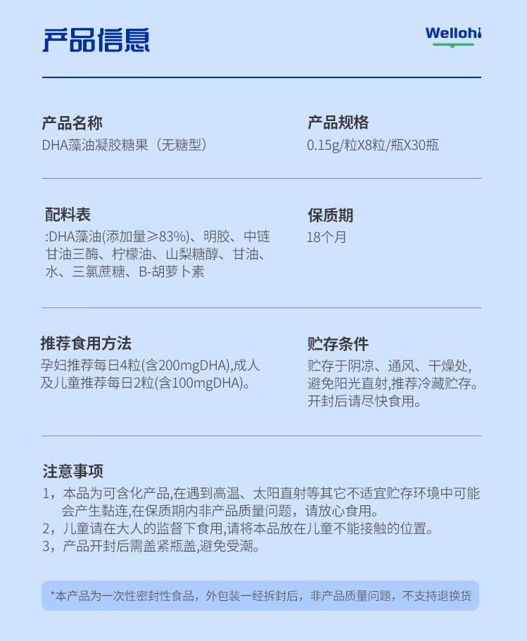 惠优喜DHA藻油凝胶糖果(无糖型)30瓶