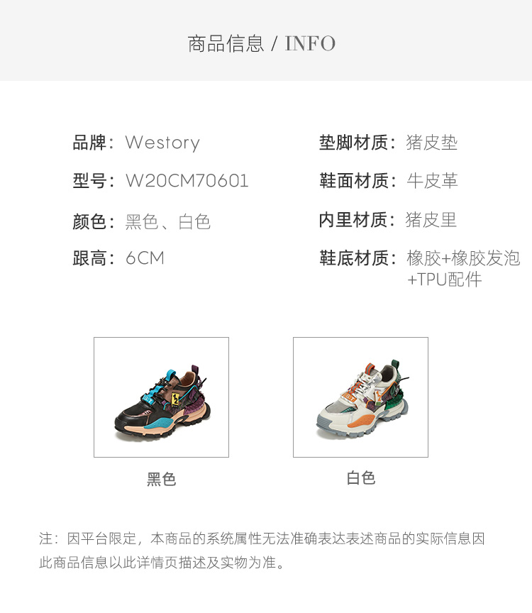 westory商场专柜同款2020秋冬新款真皮轻盈透气老爹鞋女厚底运动鞋W20CM70601