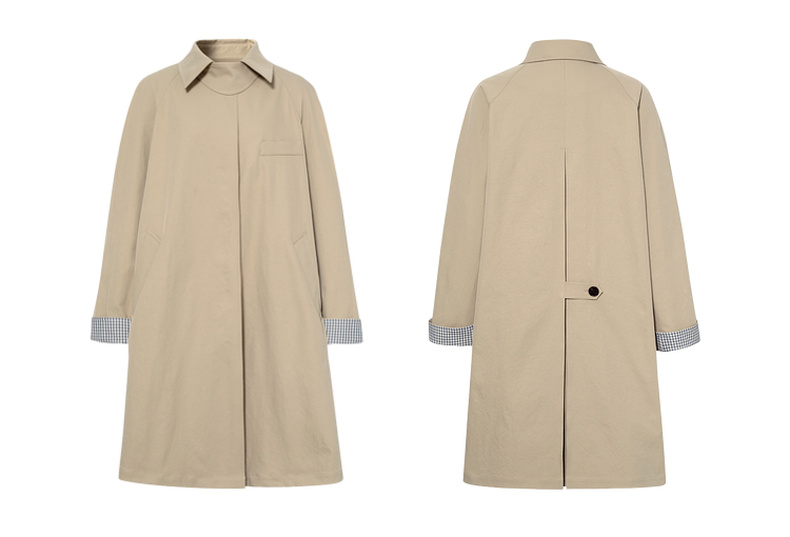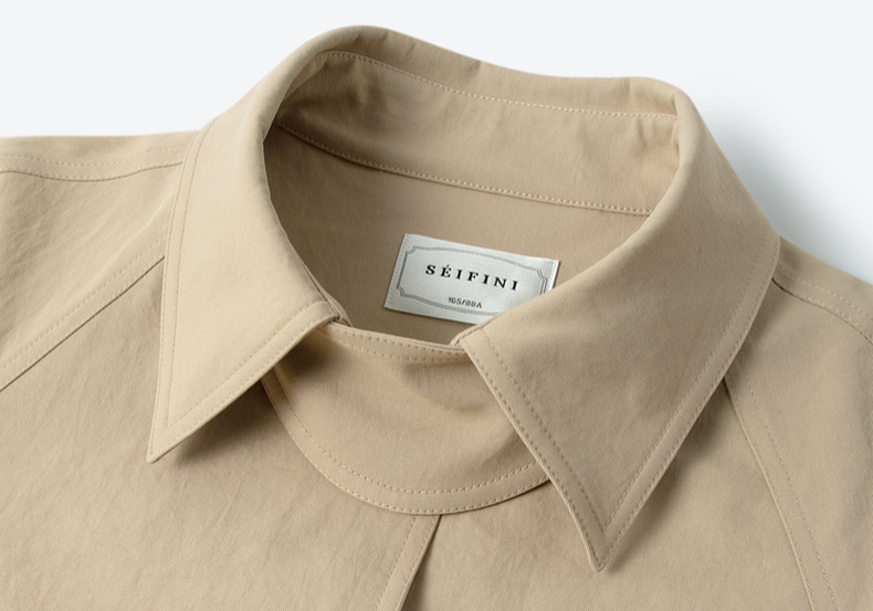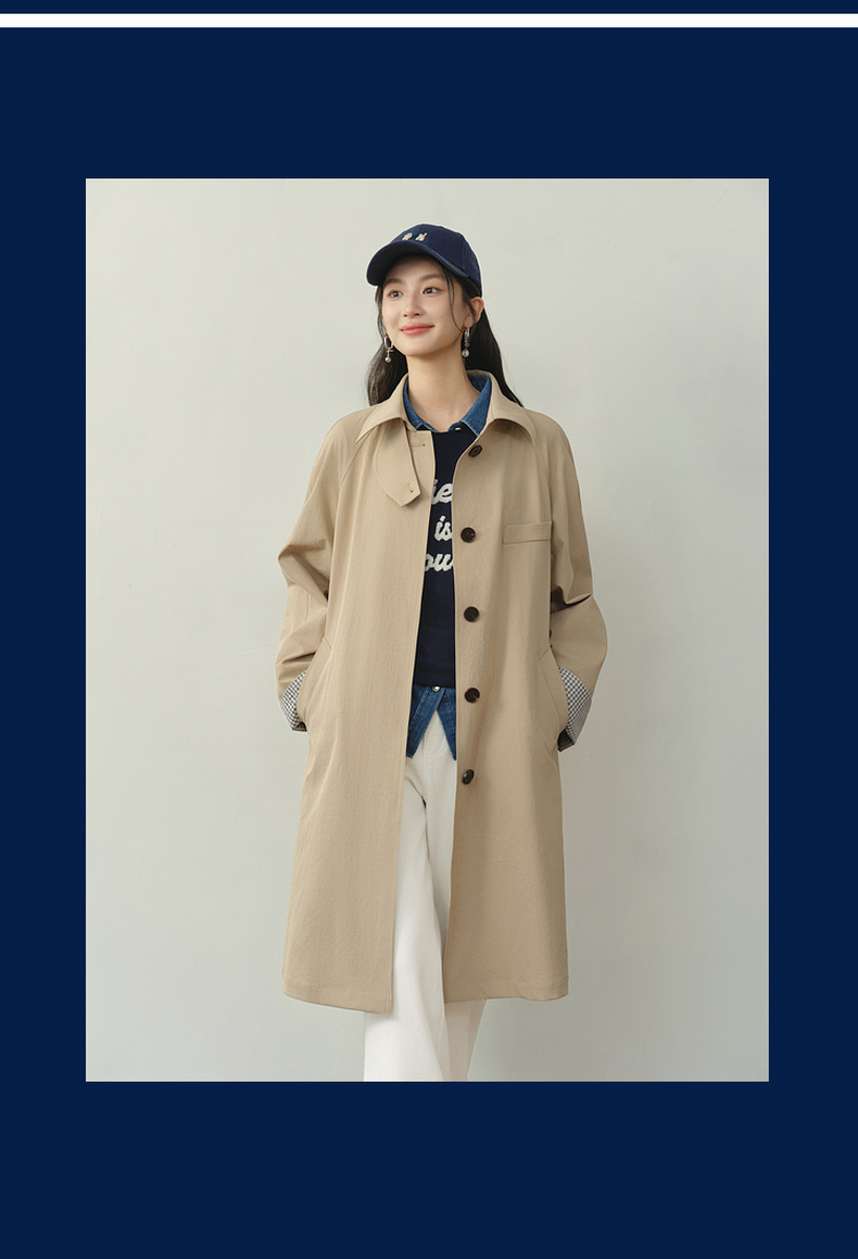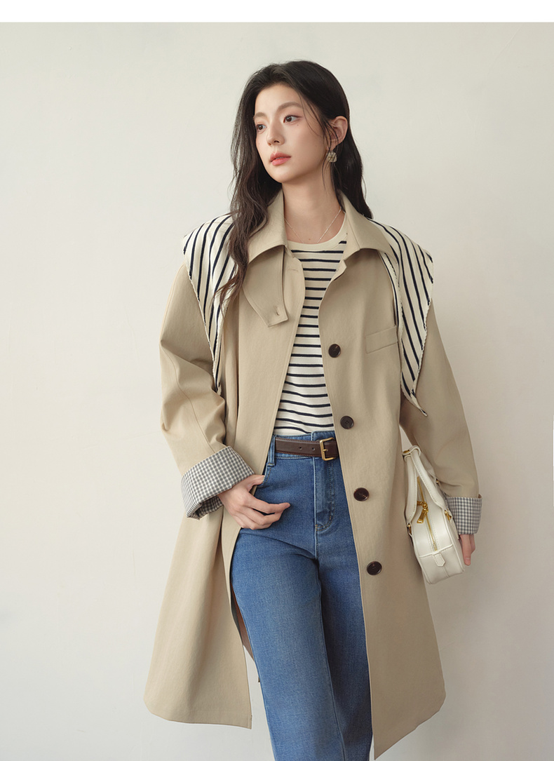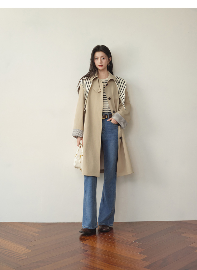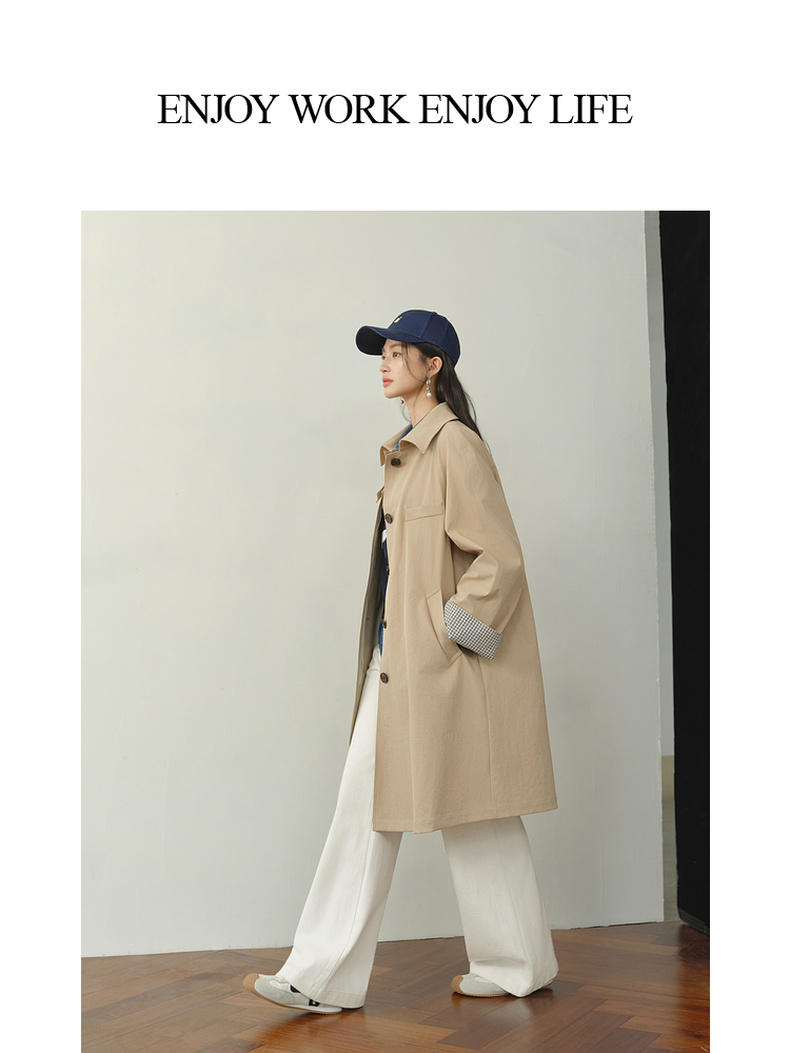 【严选】诗凡黎韩系格纹翻边通勤风衣2026春新款复古感翻领经典浅卡其外套7H1260171