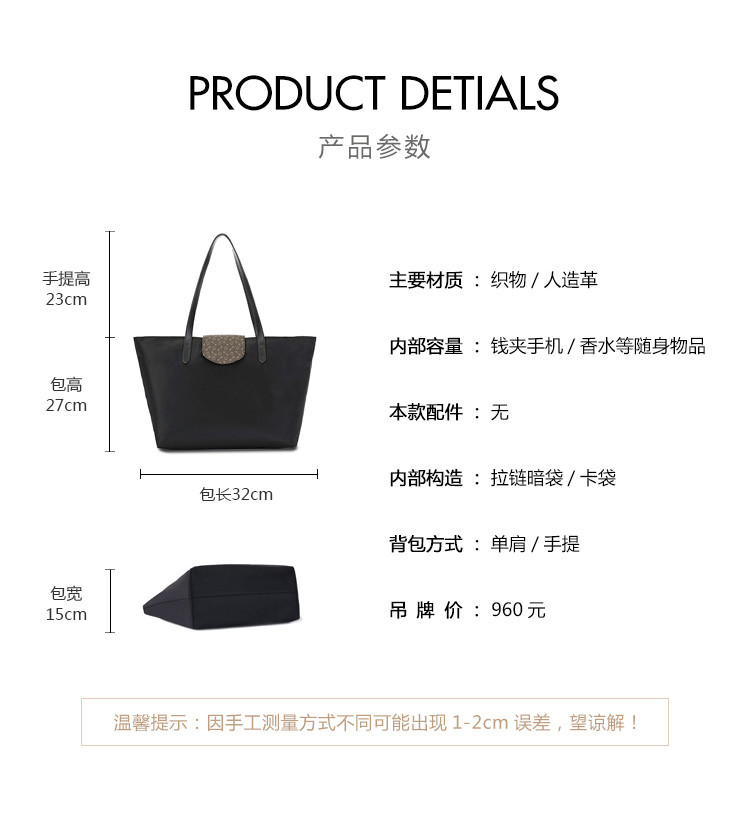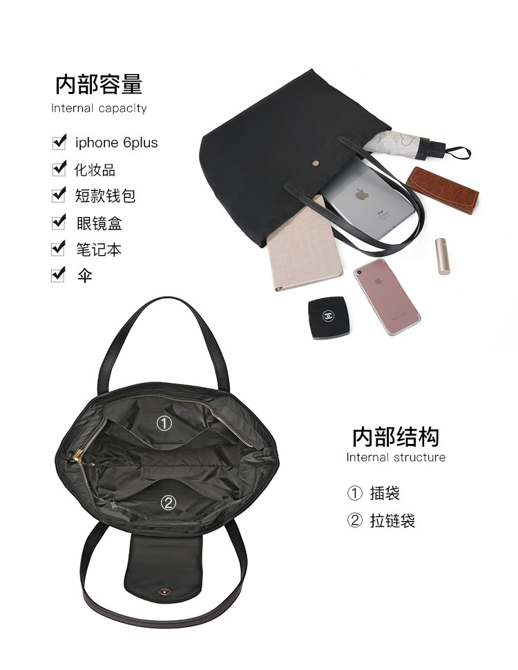 Why大容量防水托特包时尚单肩女包高级感春夏百搭WZ1491BK1Z