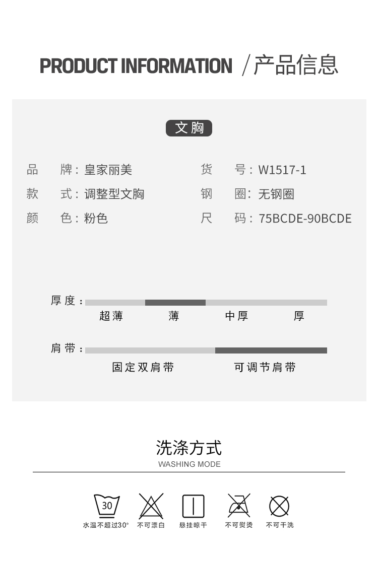 皇家丽美薄杯无钢圈收副乳聚拢调整型文胸W1517-1