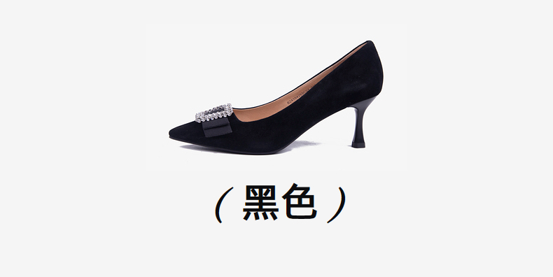 【静音系列】千百度羊皮通勤乐福鞋女粗高跟鞋豆豆鞋A25184405