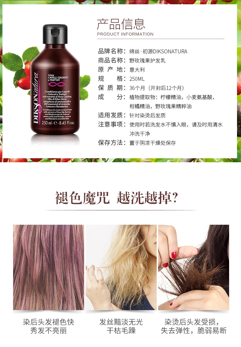 【授权商品】野玫瑰果染烫滋养护发素缔丝初源固色修复无硅油护发乳意大利进口250ml