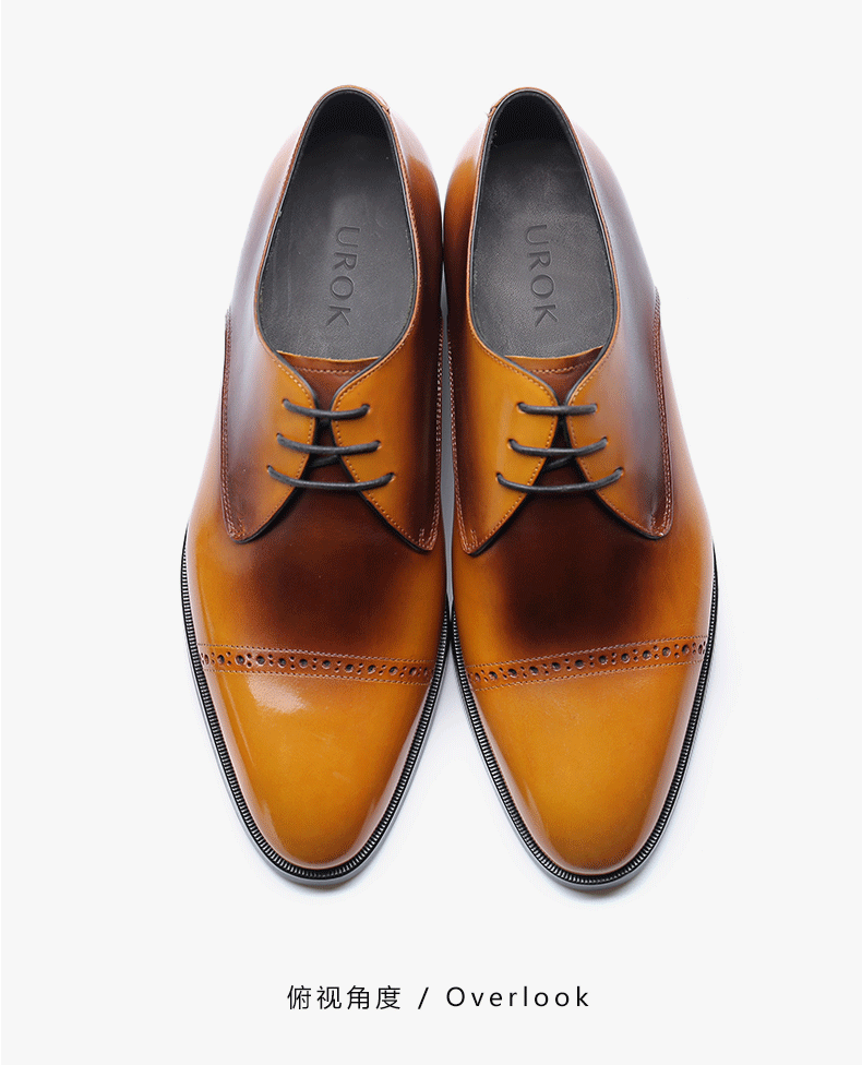 【21春夏新品】UROK男士皮休闲皮鞋 擦色渐变亮皮男鞋