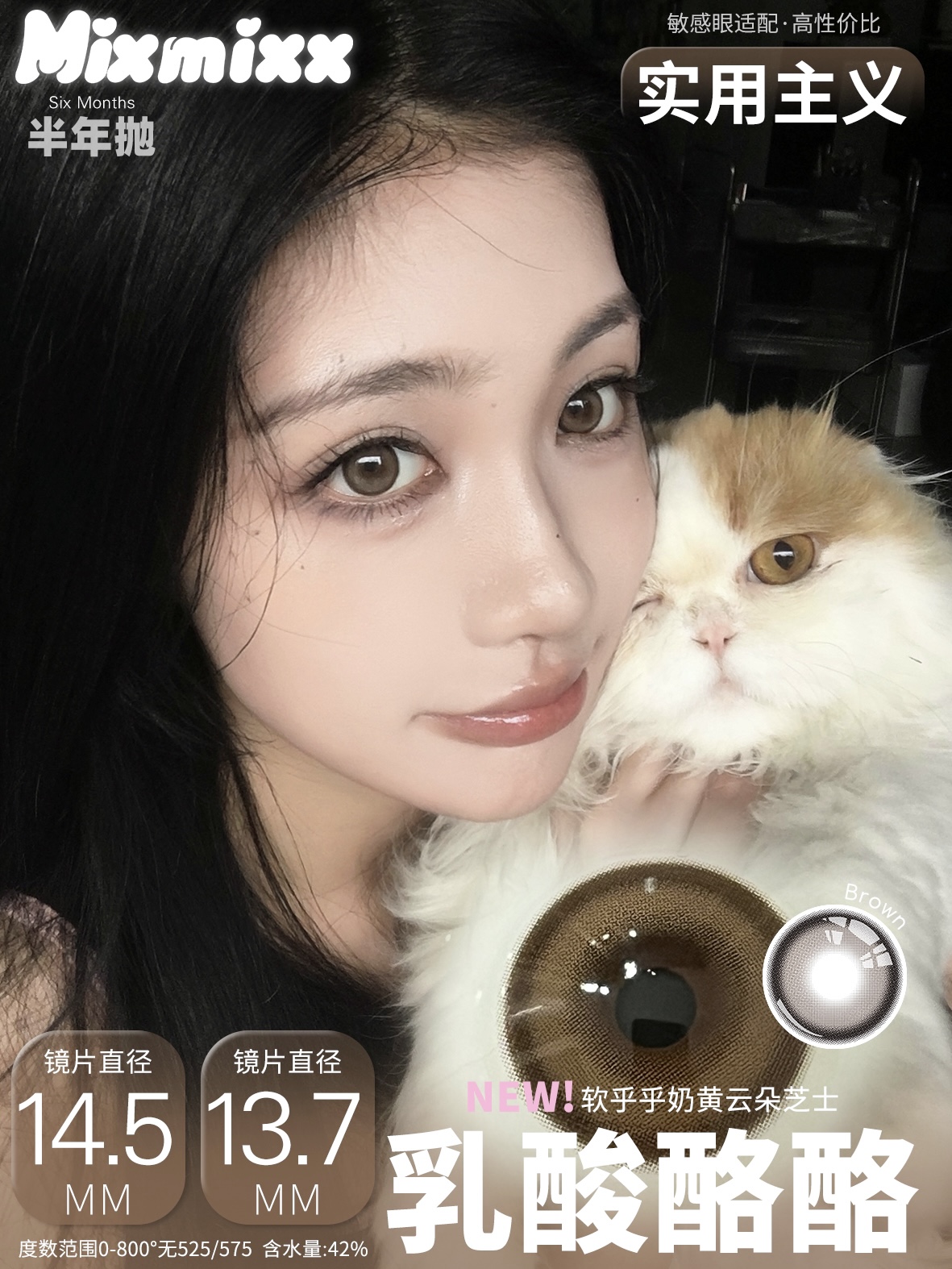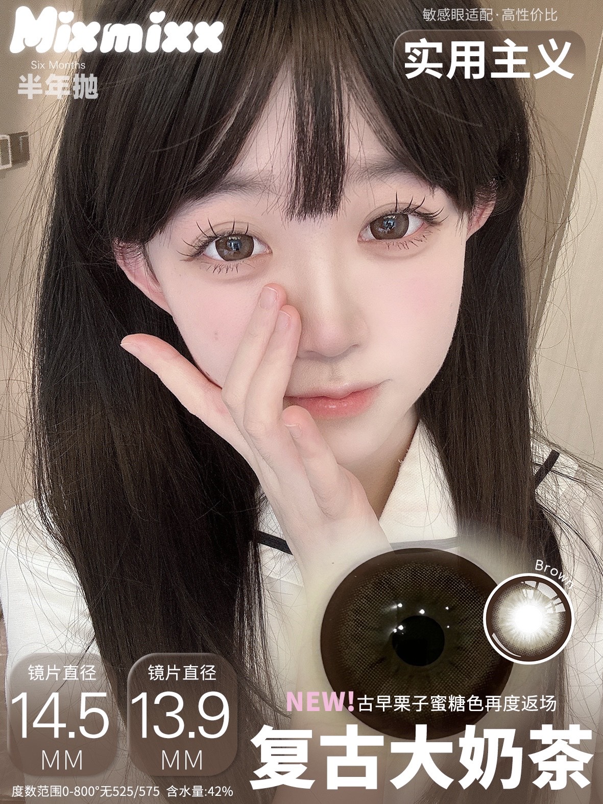 mixmixx半年抛 复古大奶茶/小狗情话/水漾黑糖/柔雾焦糖/星星回忆录/乳酸酪酪 14.5mm 棕黑灰