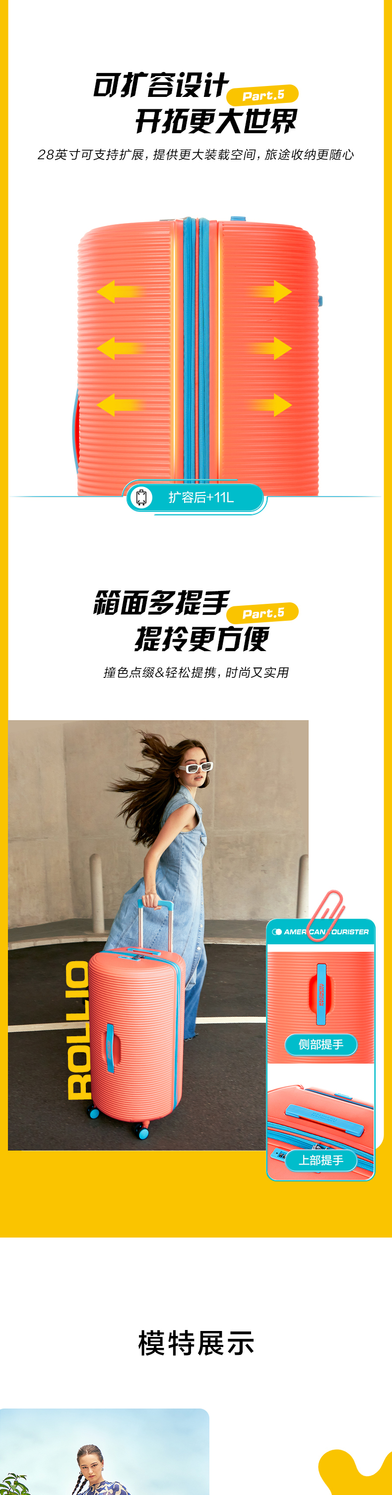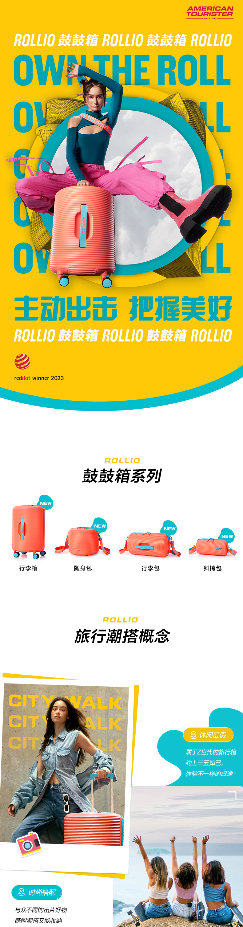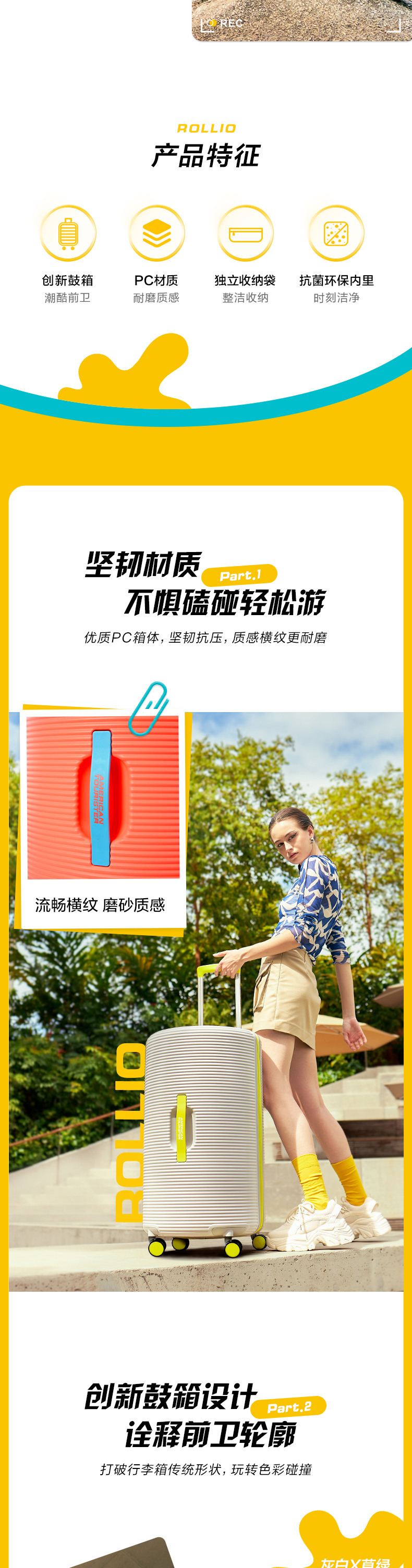 【美旅】Rollio鼓鼓箱系列潮搭优质PC时尚拉杆箱QV1