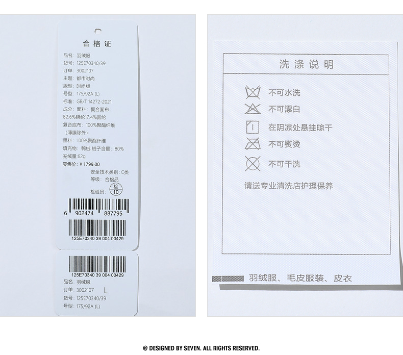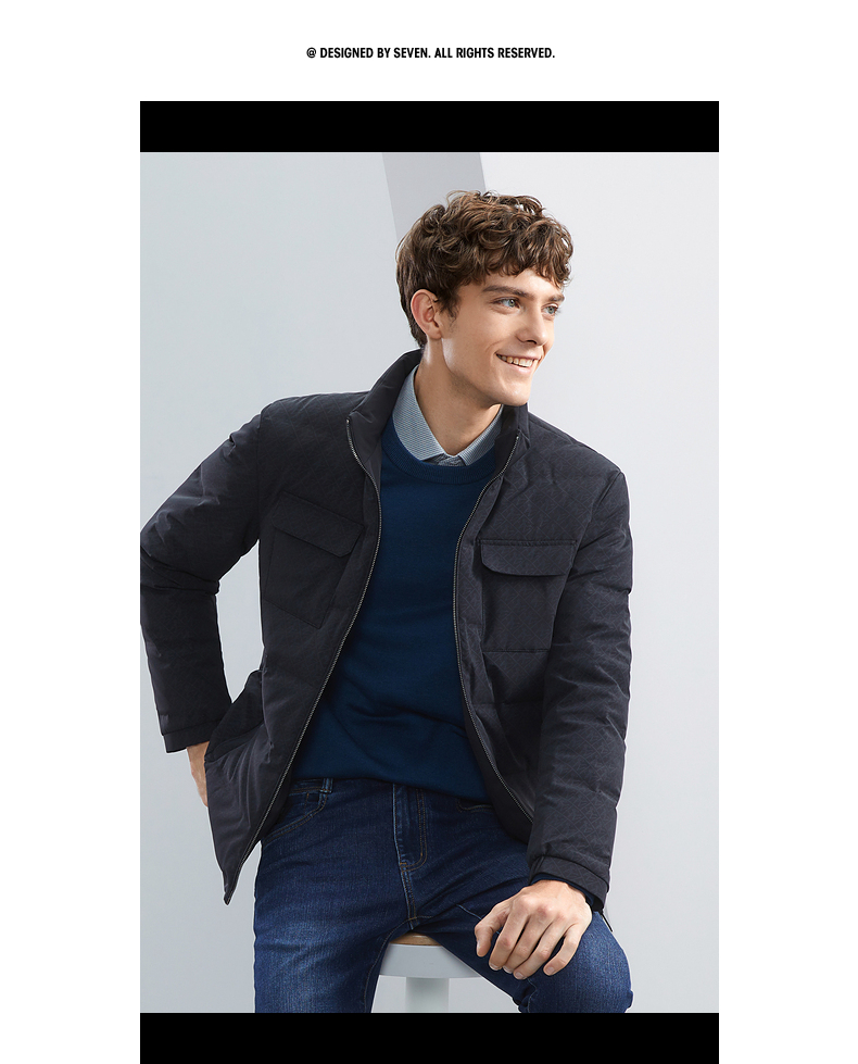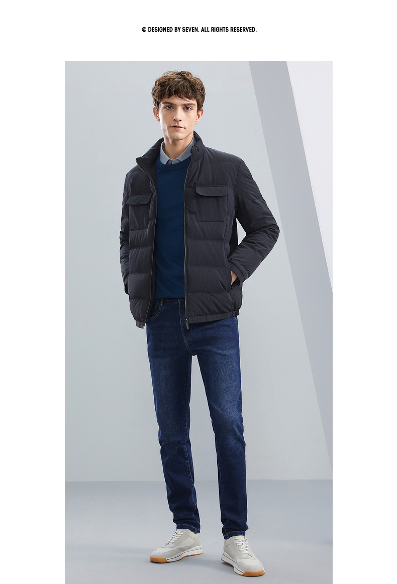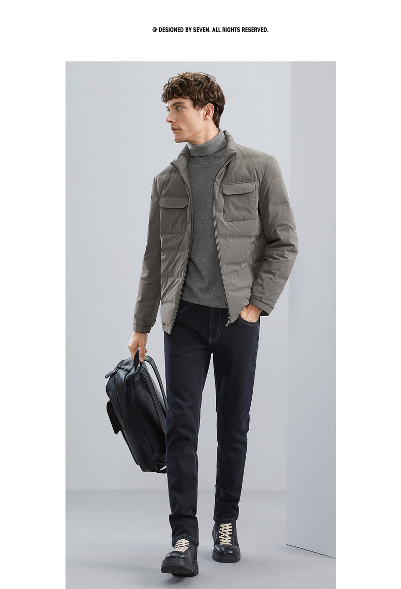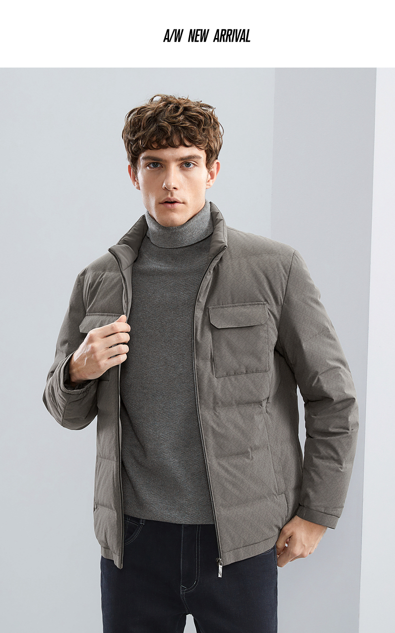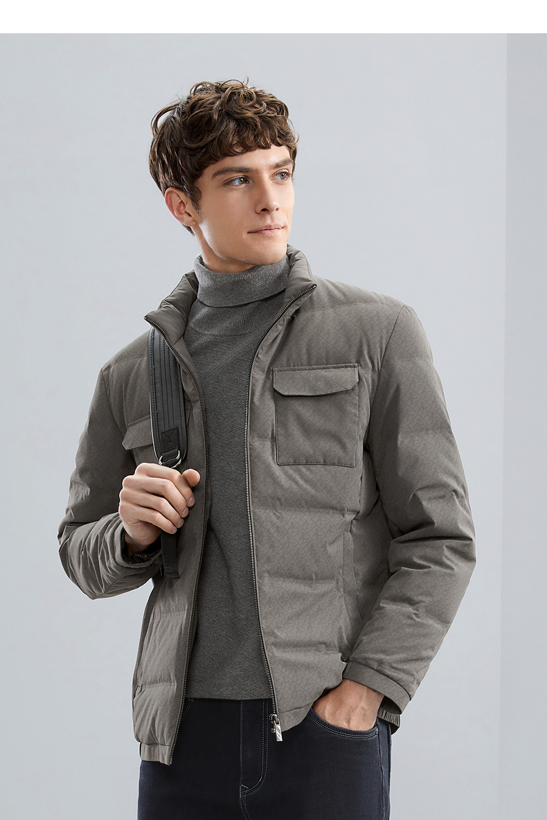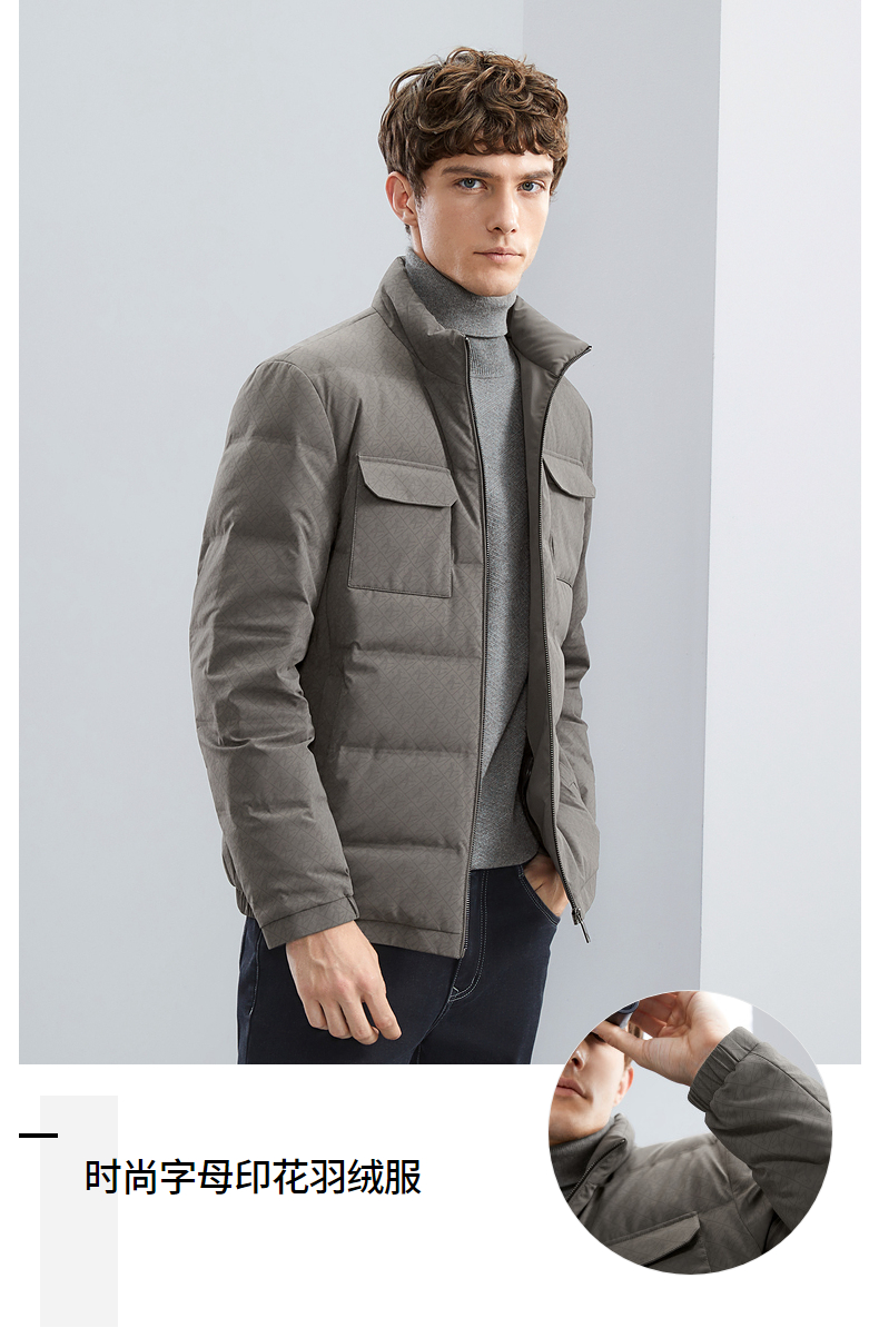 【90白鸭绒】柒牌男士立领羽绒服冬季厚款时尚字母印花工装风外套 125E70340