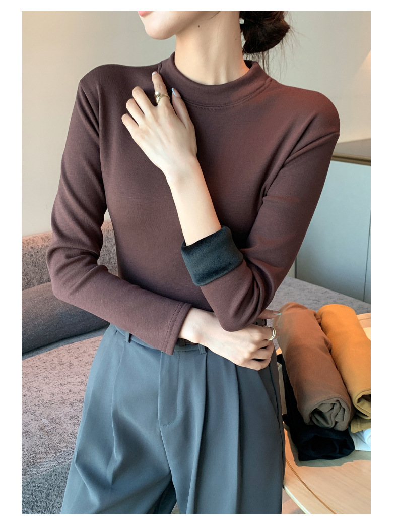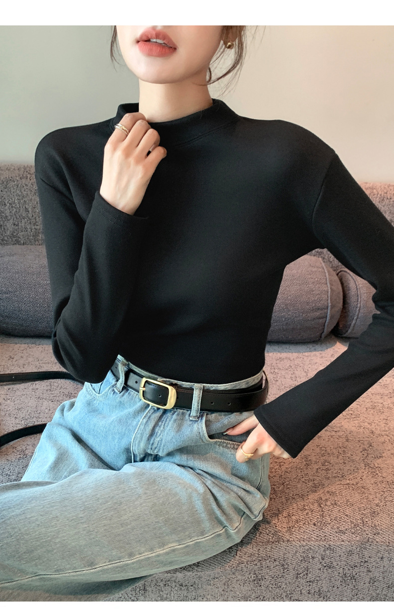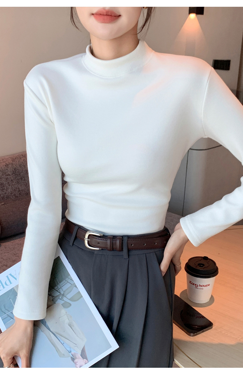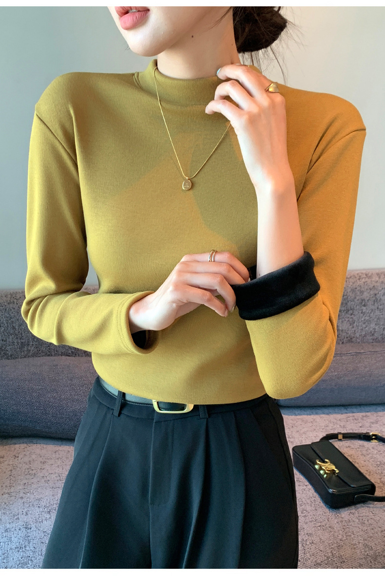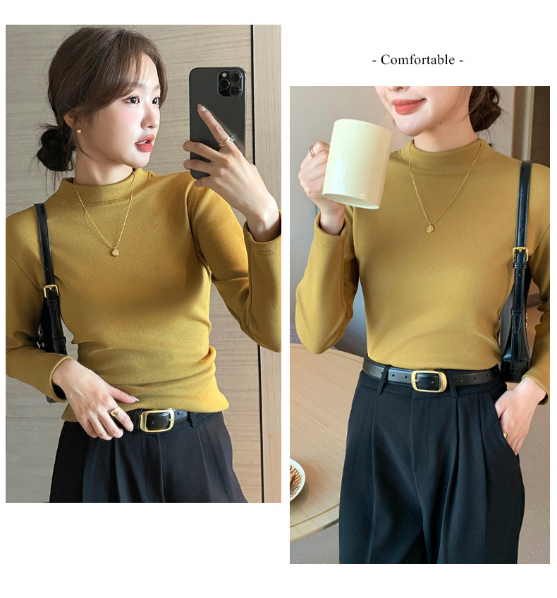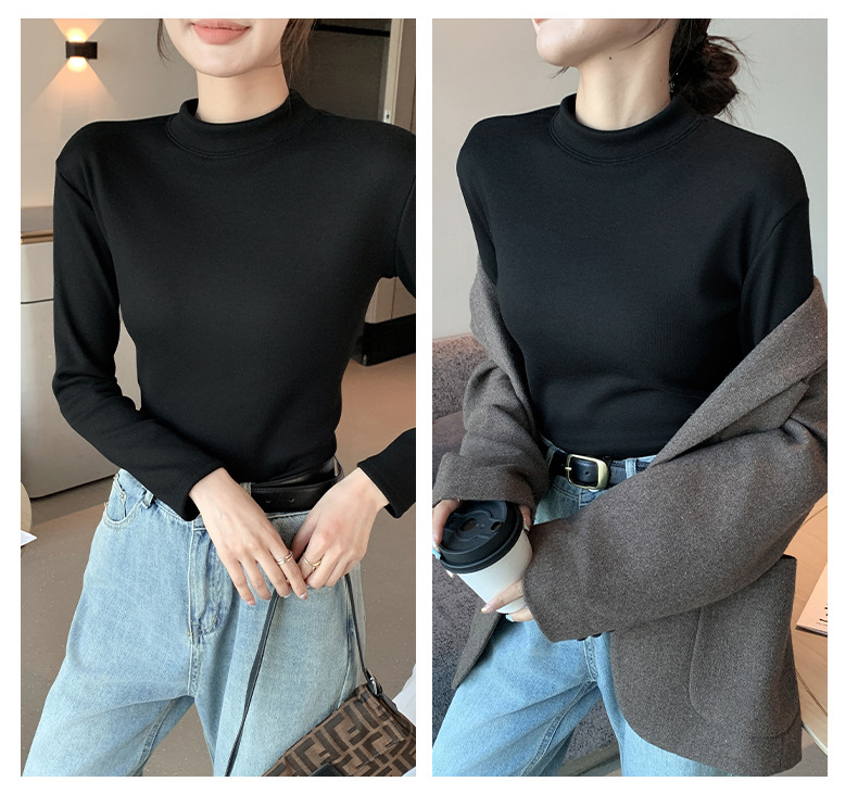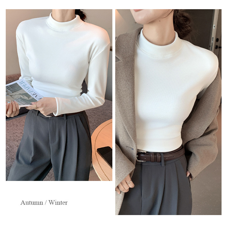 【百搭显瘦!加绒加厚】秋冬季新款螺纹一体加绒半高领打底衫中领保暖上衣,内穿外搭皆可。rb