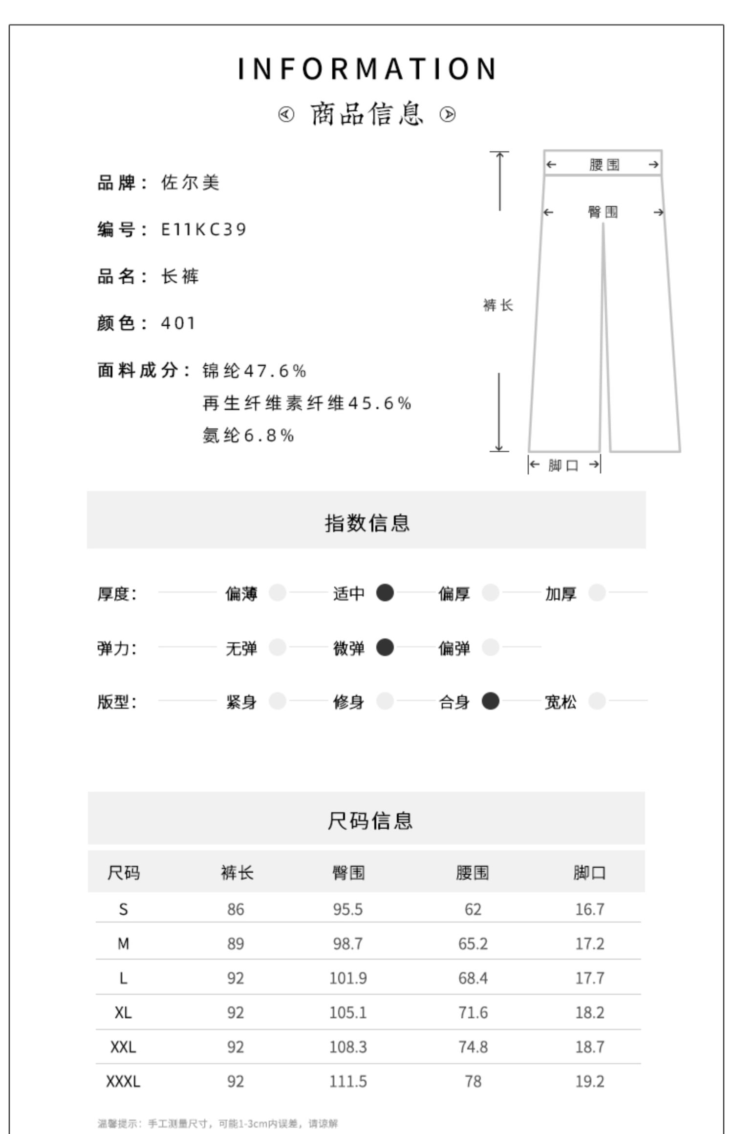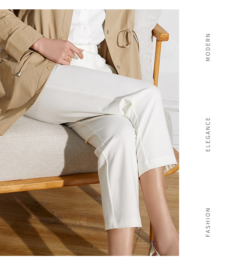 佐尔美春季新款 白色气质休闲宽松显瘦长裤女E11KC39