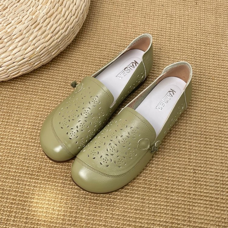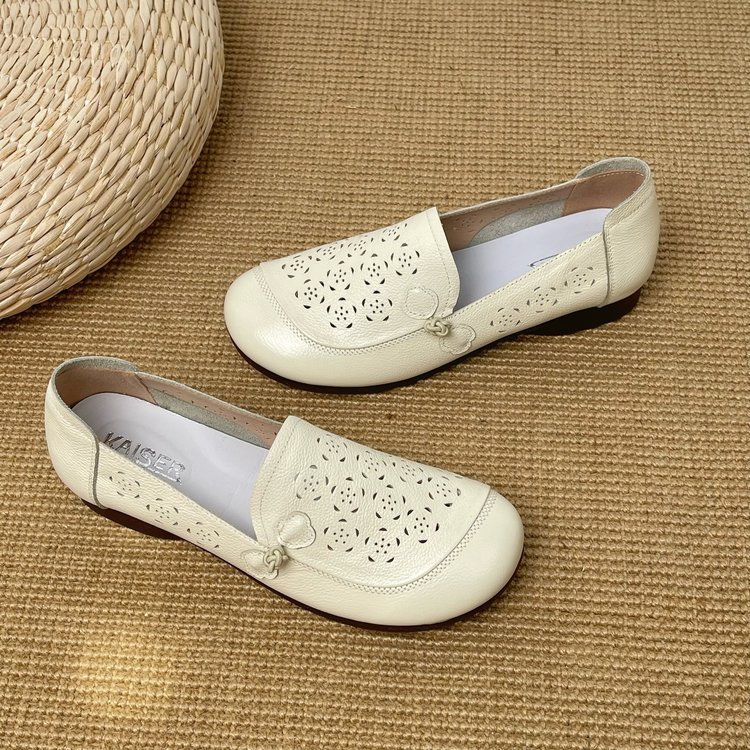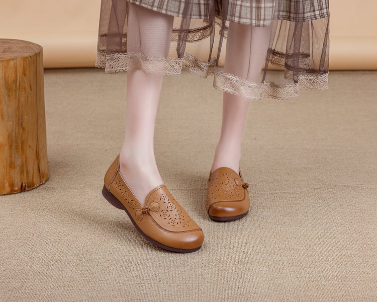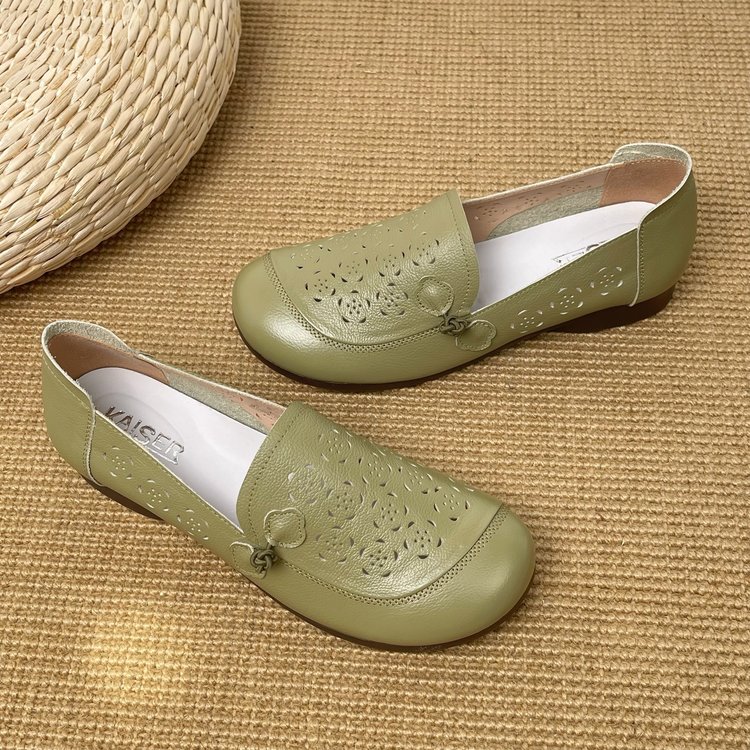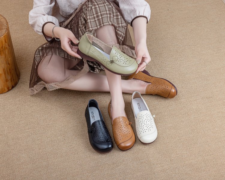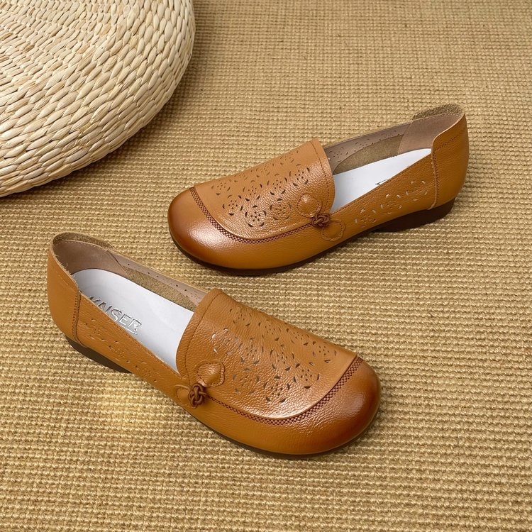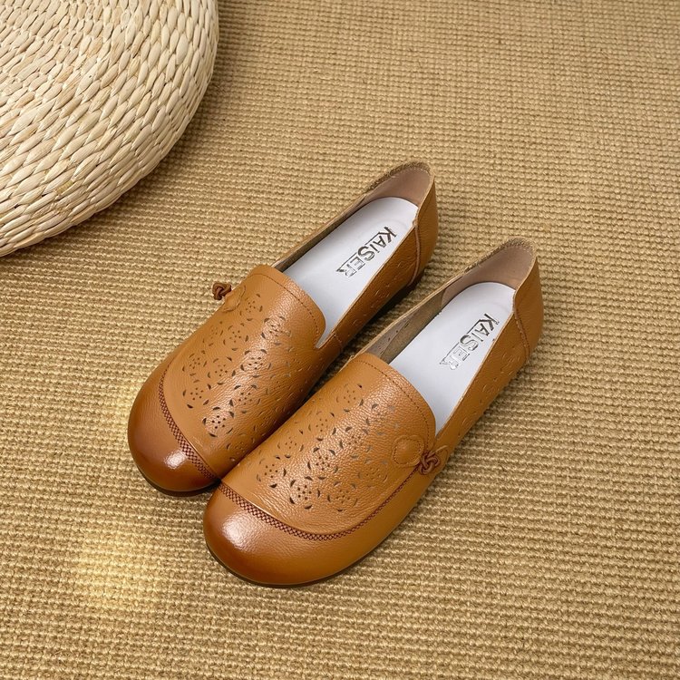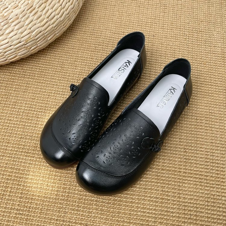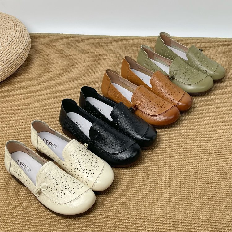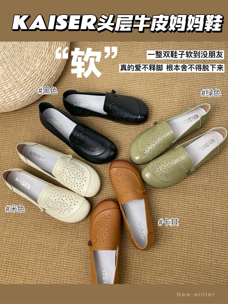 【母亲节礼物 下单送袜子】意大利KAISER 凯撒头层牛皮新中式镂空妈妈鞋 巨软巨好穿!(KS7881款)