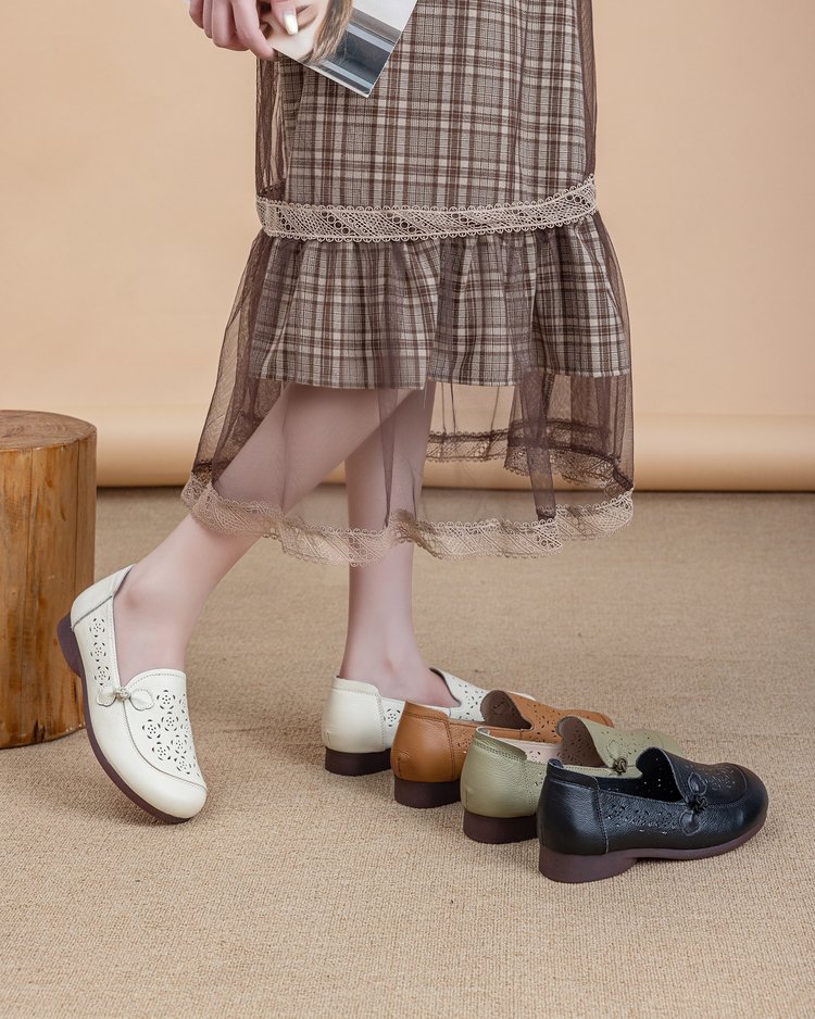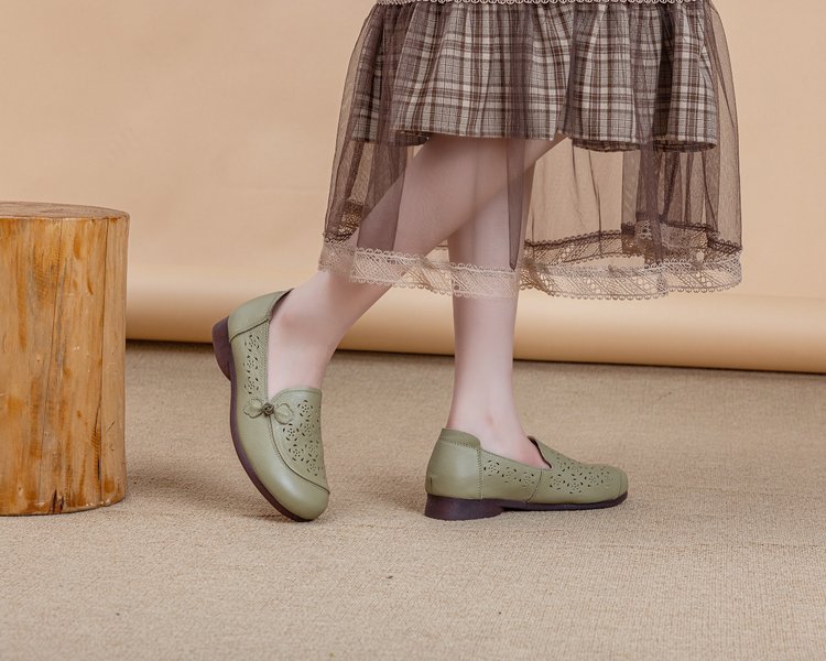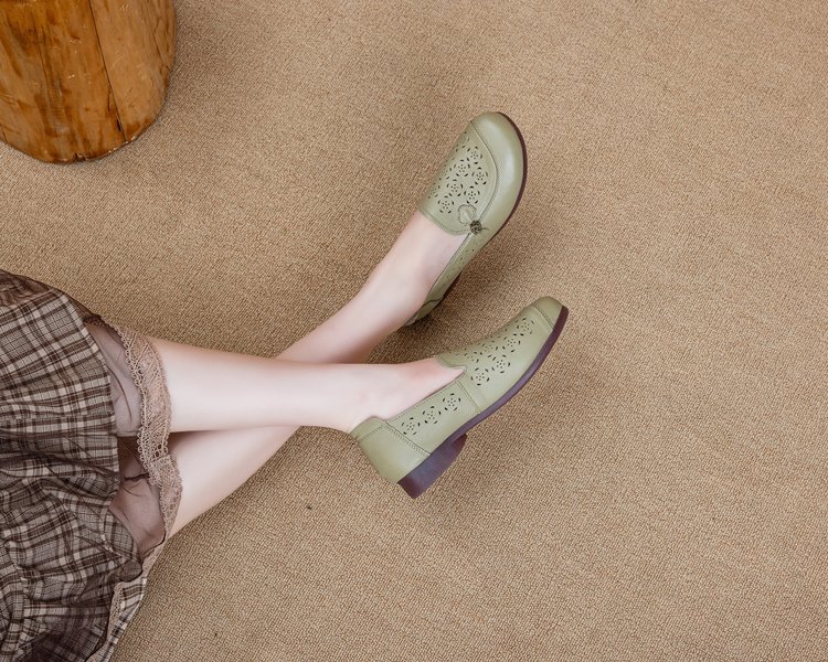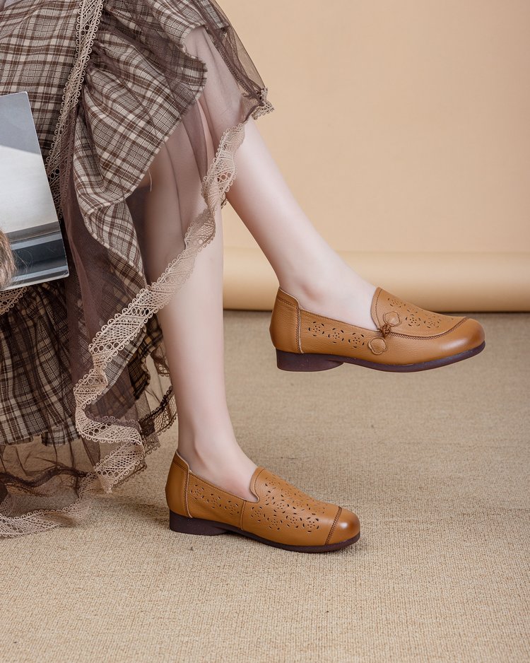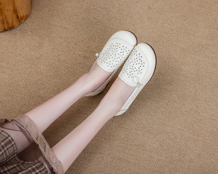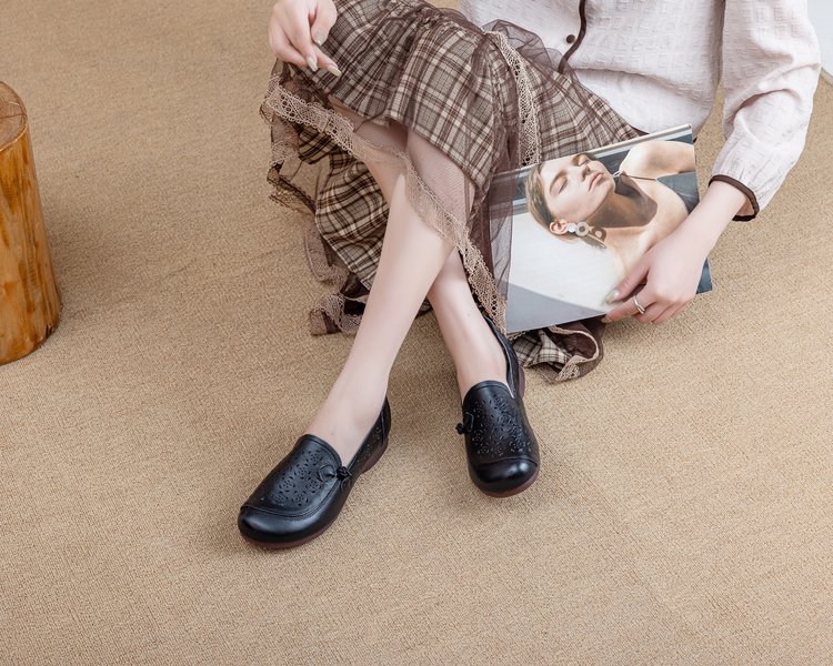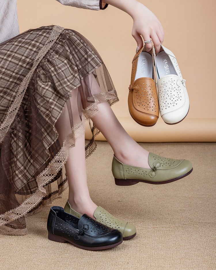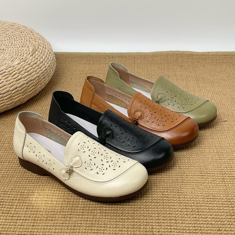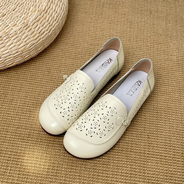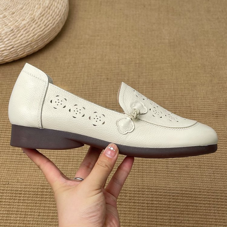 【母亲节礼物 下单送袜子】意大利KAISER 凯撒头层牛皮新中式镂空妈妈鞋 巨软巨好穿!(KS7881款)
