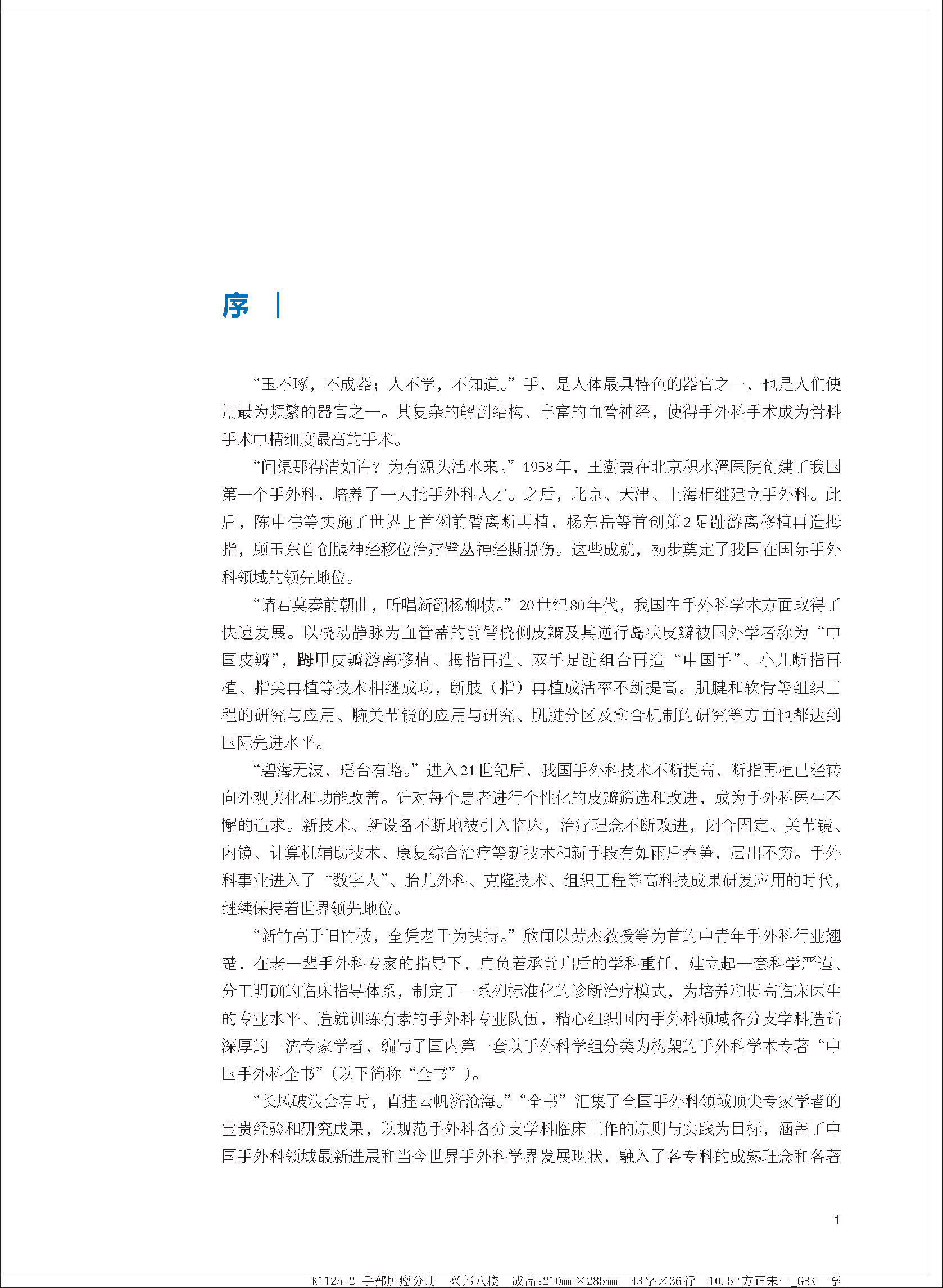 “全书”的出版,一方面为国内手外科医师提供了一部完整的手外科学的综合性著作,有助于提升我国手外科从业人员的理论和技术水平;另一方面也反映了我国手外科在世界手外科领域的领先地位,充分展现了本学科所取得的丰硕成果及其强大实力。