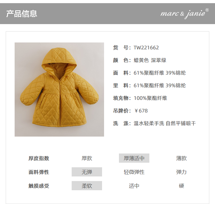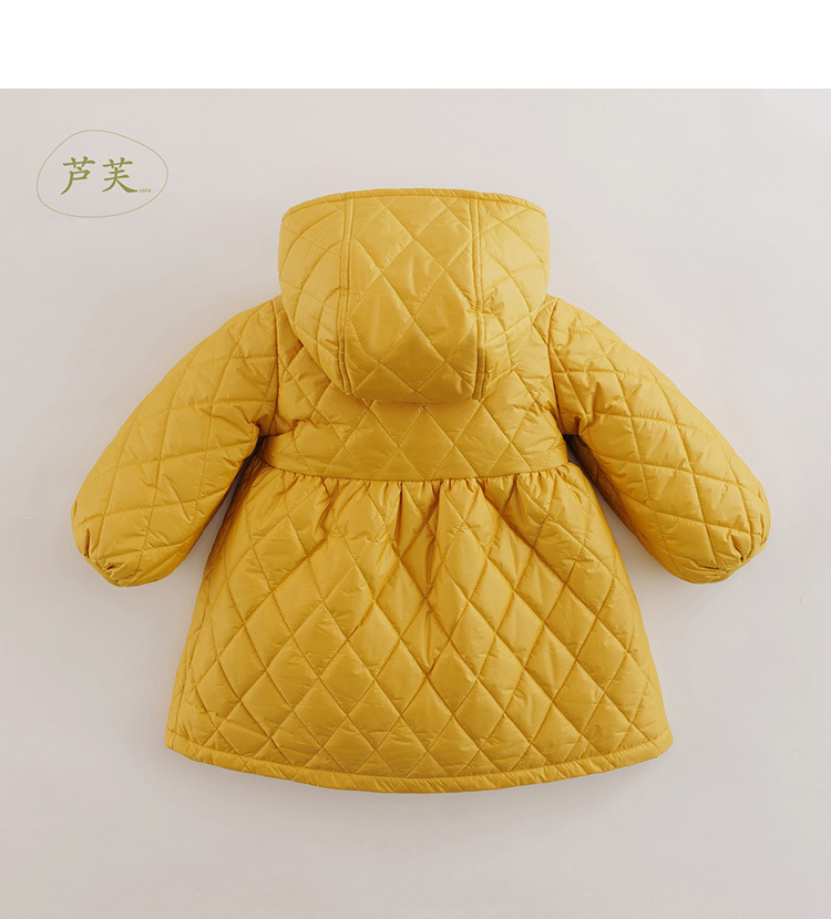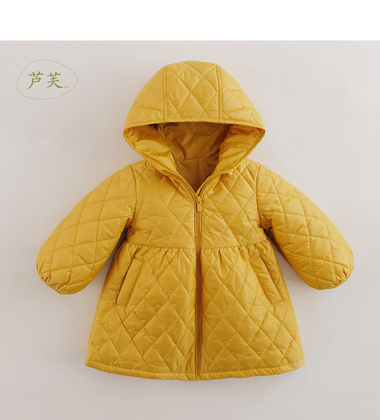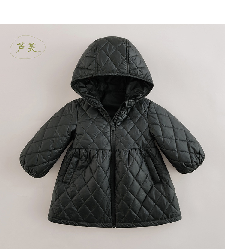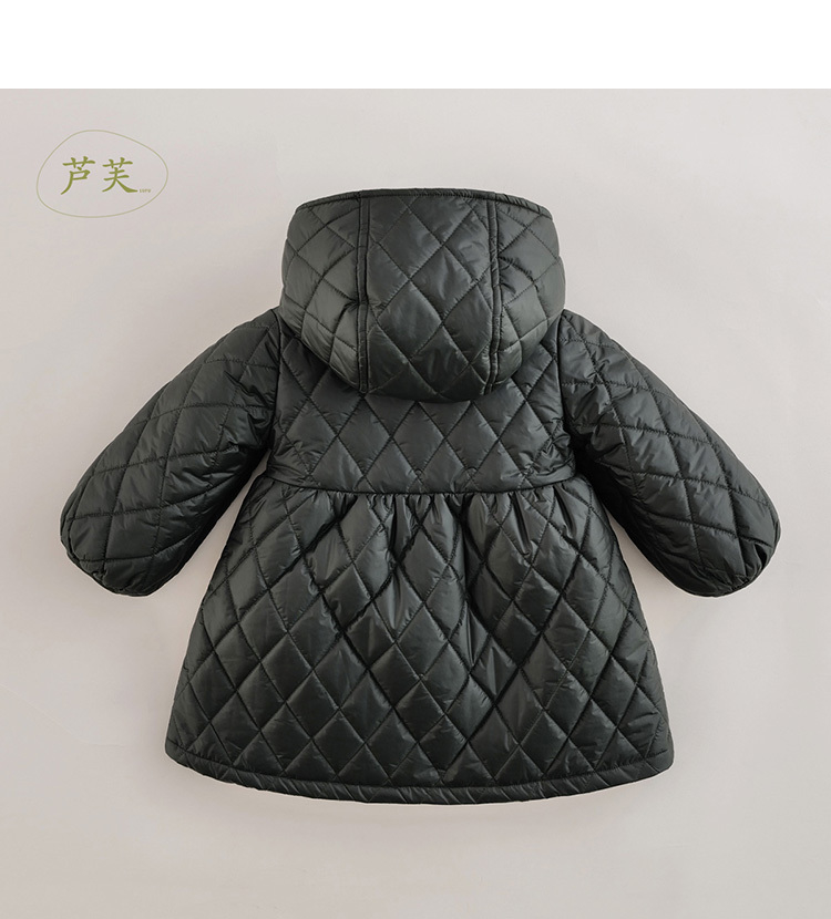 【马克珍妮 芦芙】秋装新款 菱形格灯笼袖连帽棉衣外套221662
