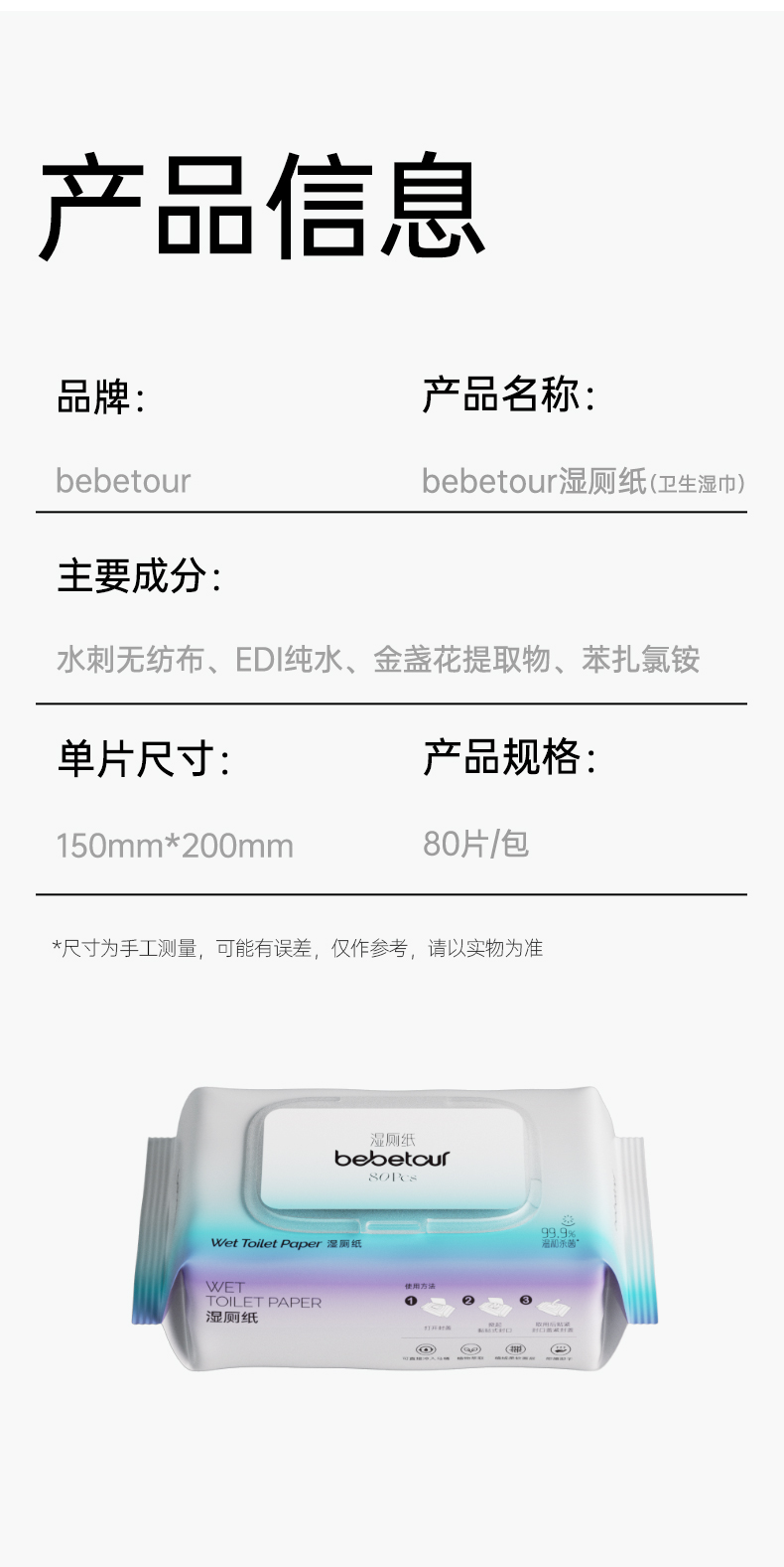 bebetour金盏花湿厕纸家庭实惠装洁厕湿巾私处擦屁屁股男士女士专用