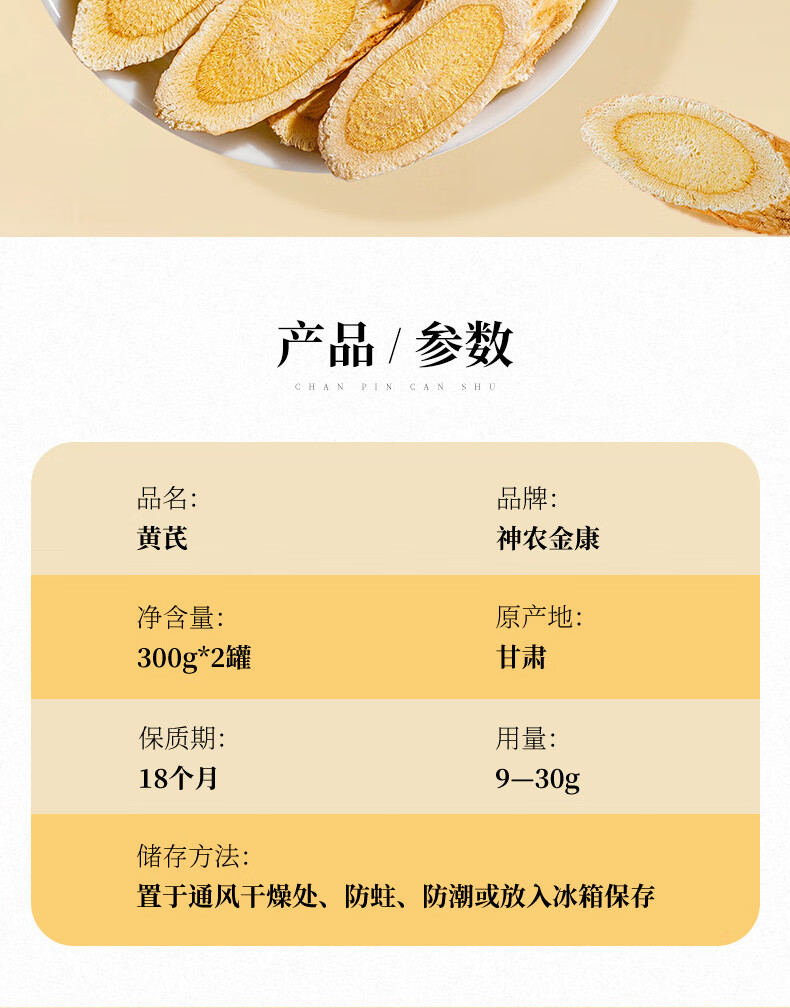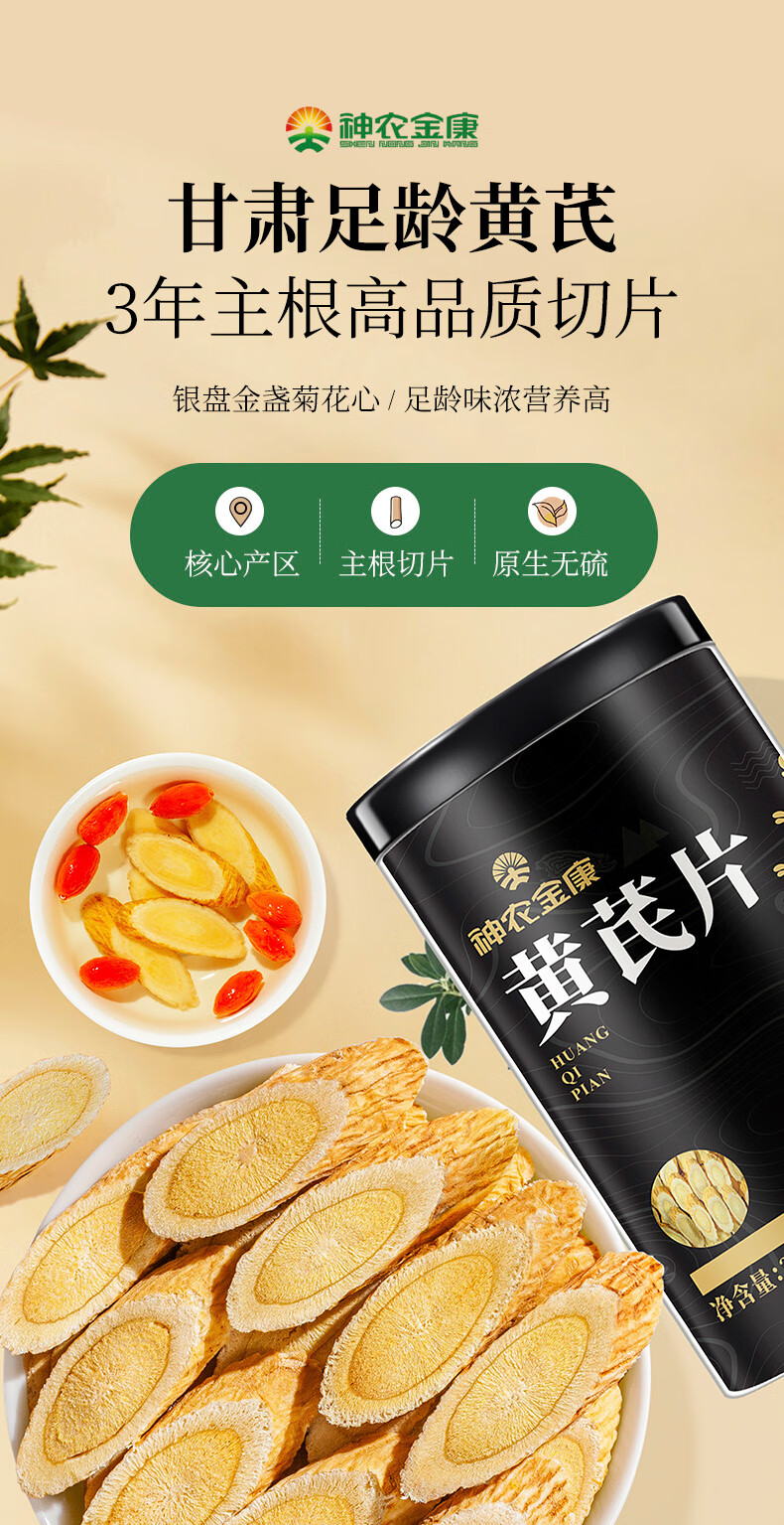 【买1送1】神农金康 甘肃岷县黄芪片300g/罐 原生态真滋补 喝护家人健康