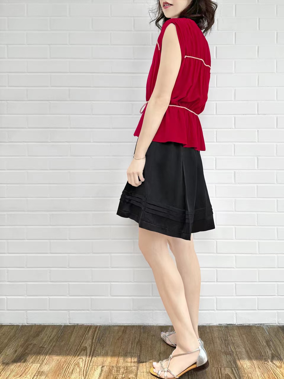TYNVIE 抽褶无袖真丝上衣 - 红色
