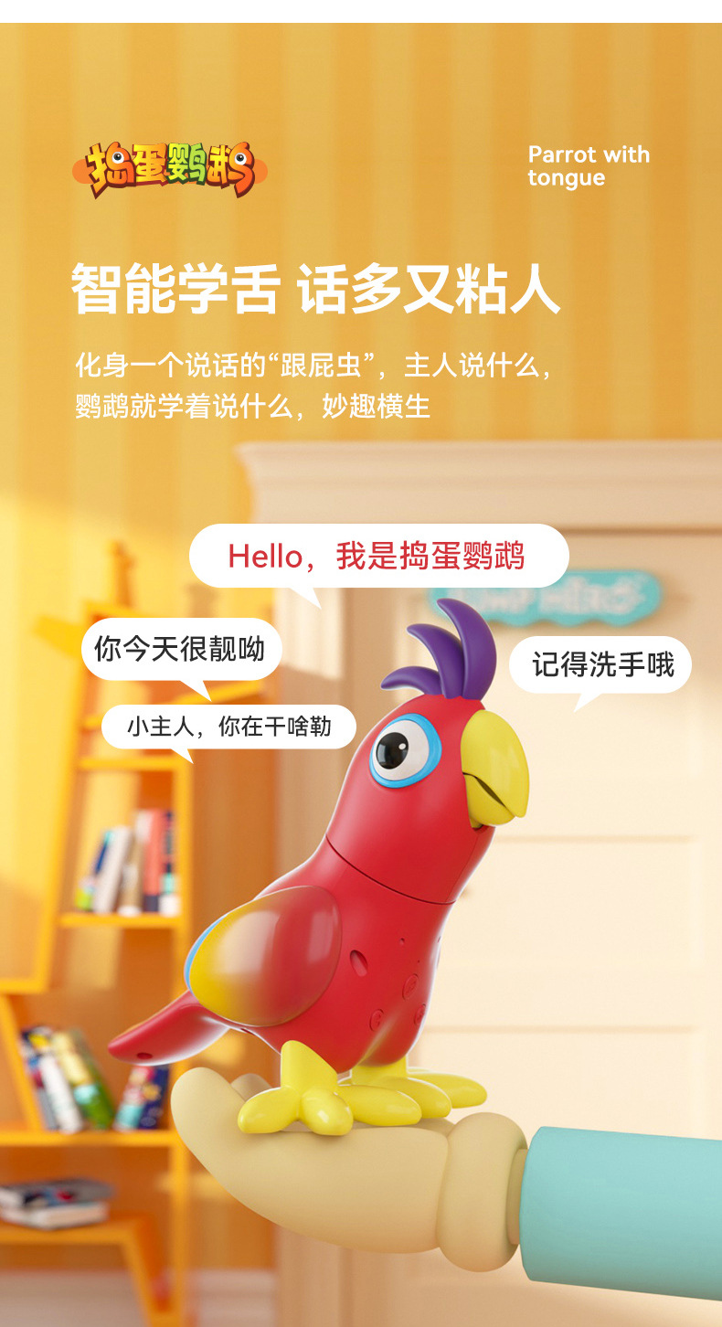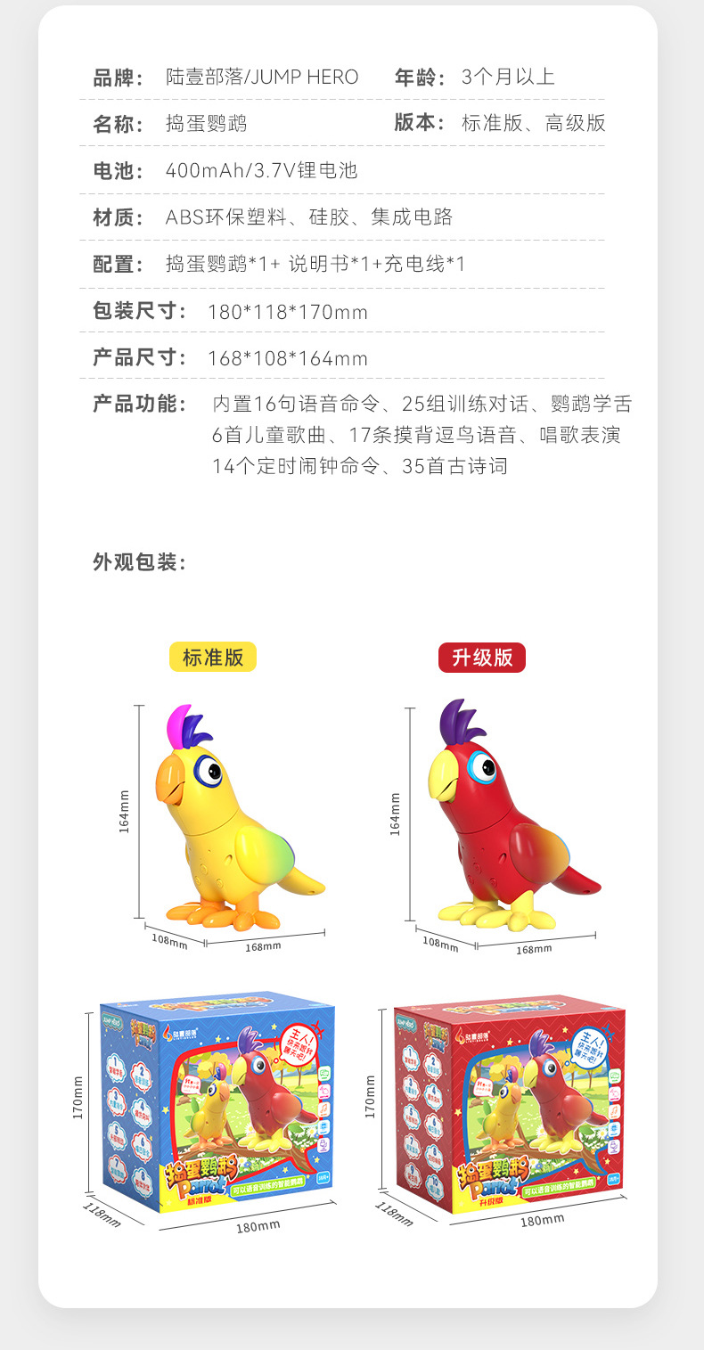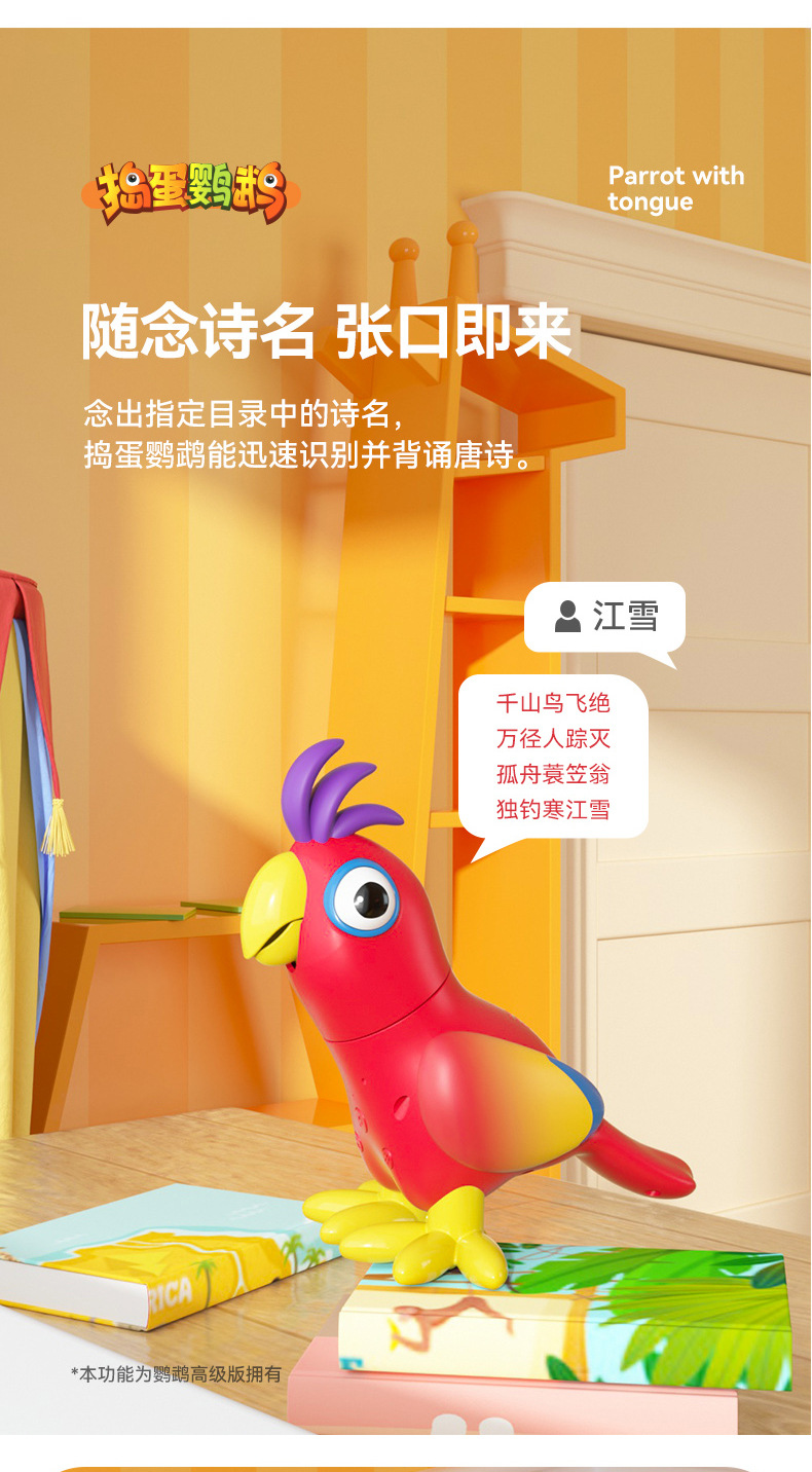 【能语言训练的捣蛋鹦鹉】JUMPHERO新品捣蛋鹦鹉学舌玩具 神奇AI人工智能 对话互答更好玩 早教故事 英文歌曲 对接如流