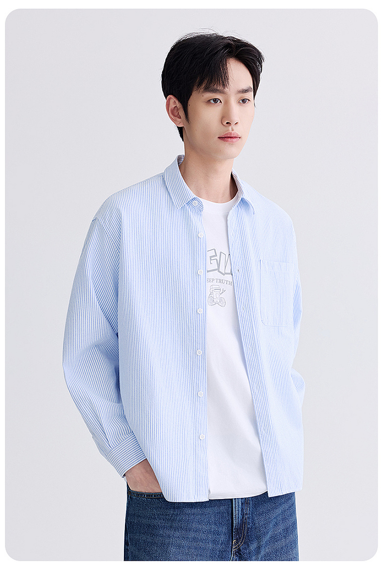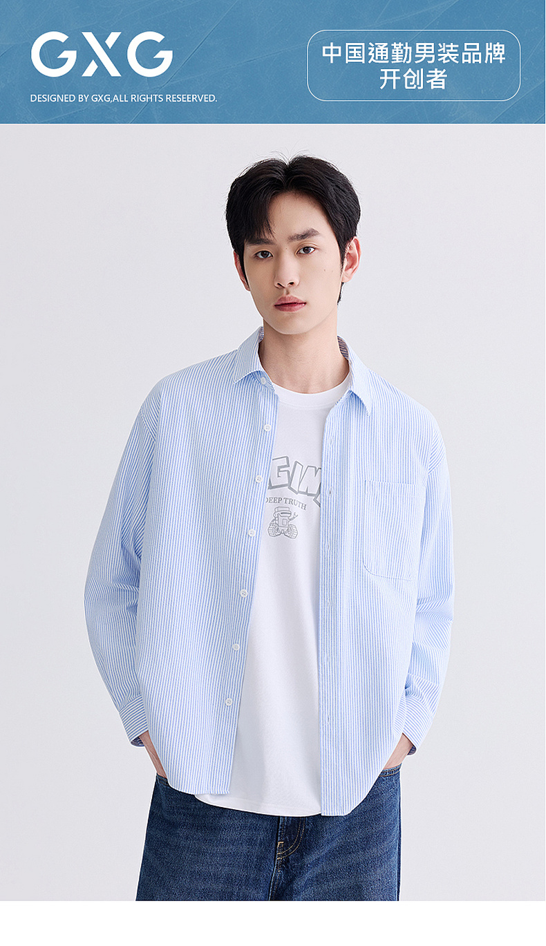 GXG男装26春季时尚潮流亲肤舒适透气简约百搭男式翻领长袖衬衫K&C