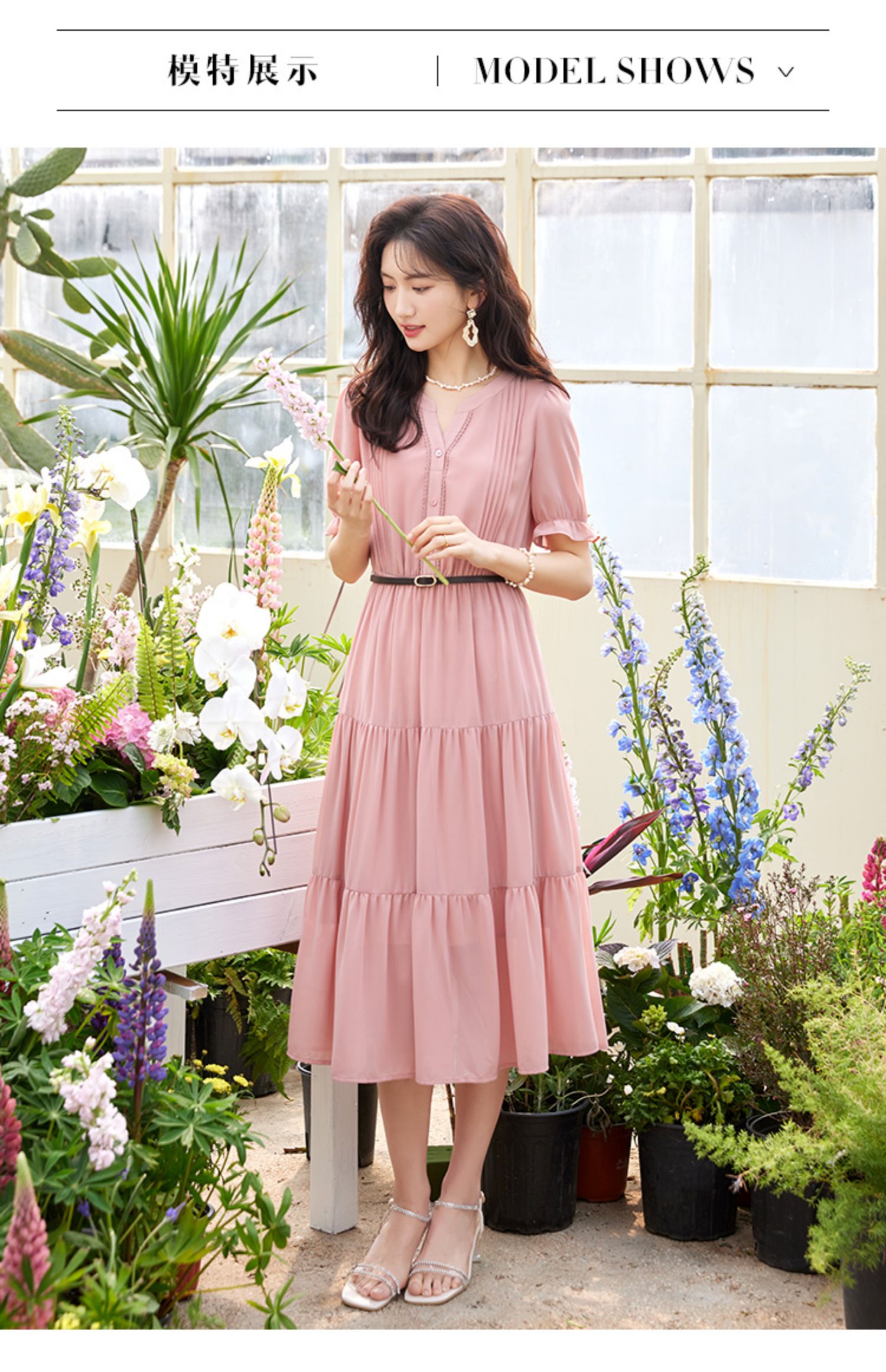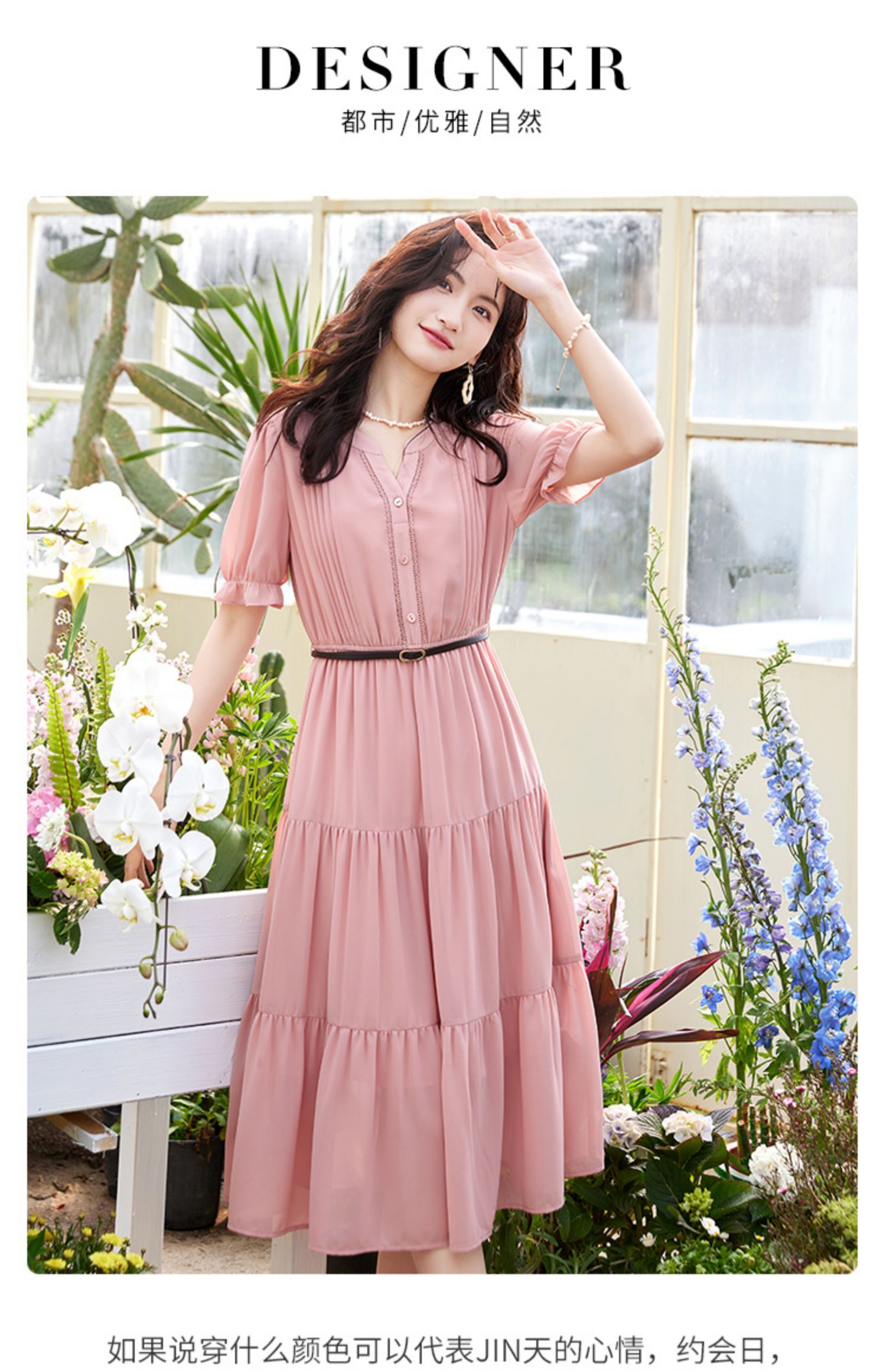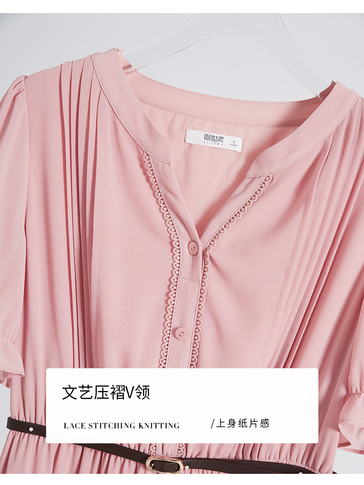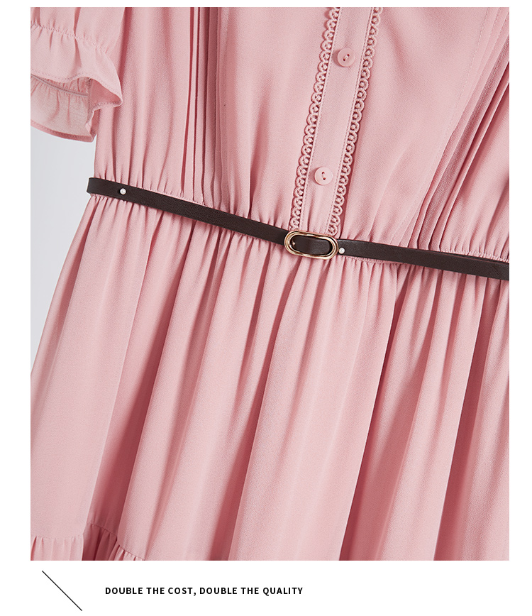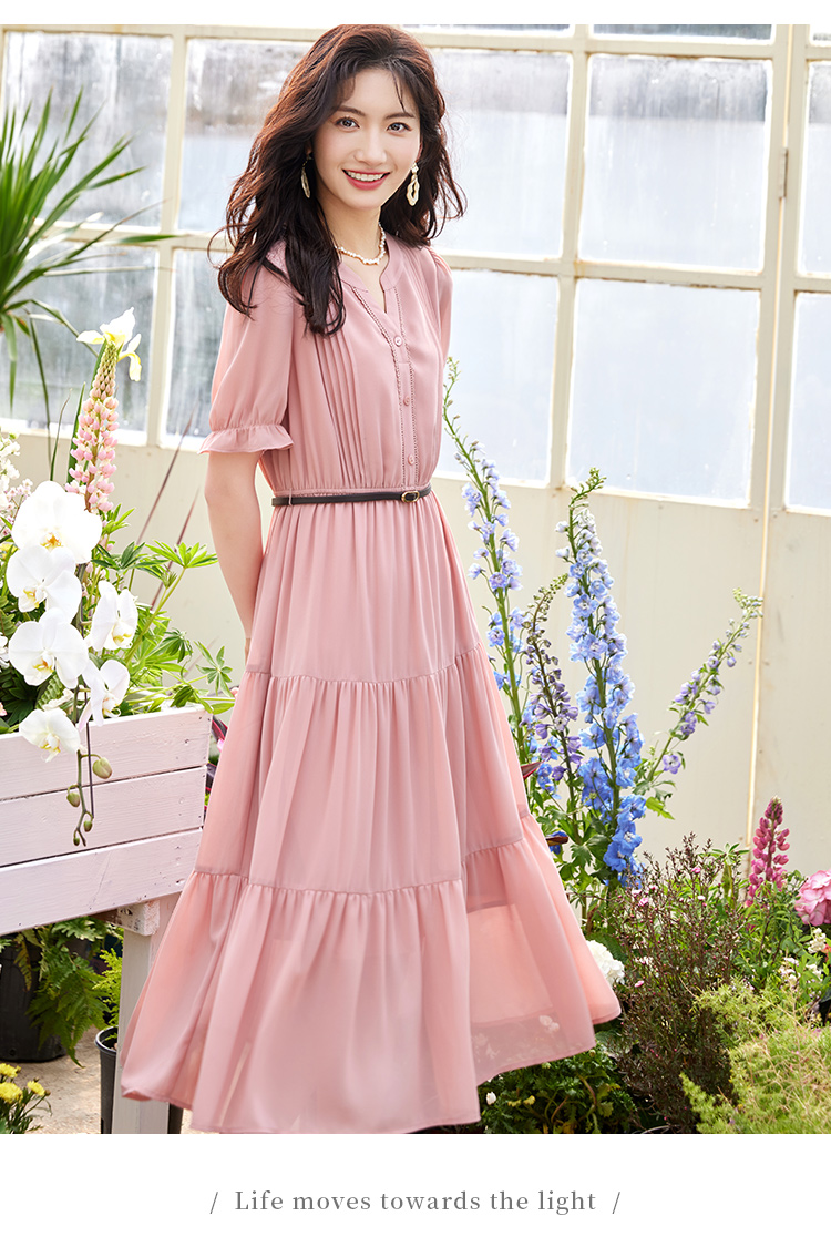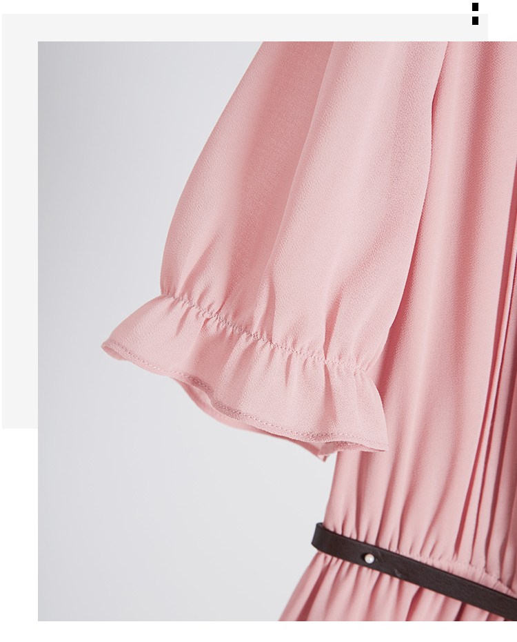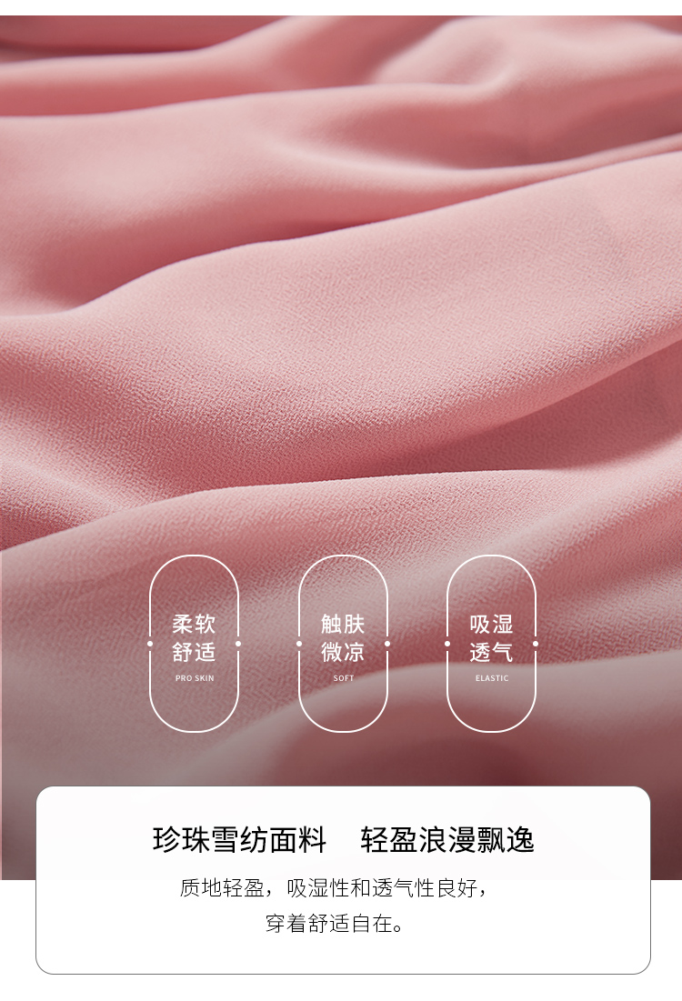 【618秒杀】熙世界法式温柔风雪纺连衣裙女设计感小众气质粉色荷叶边夏季裙子