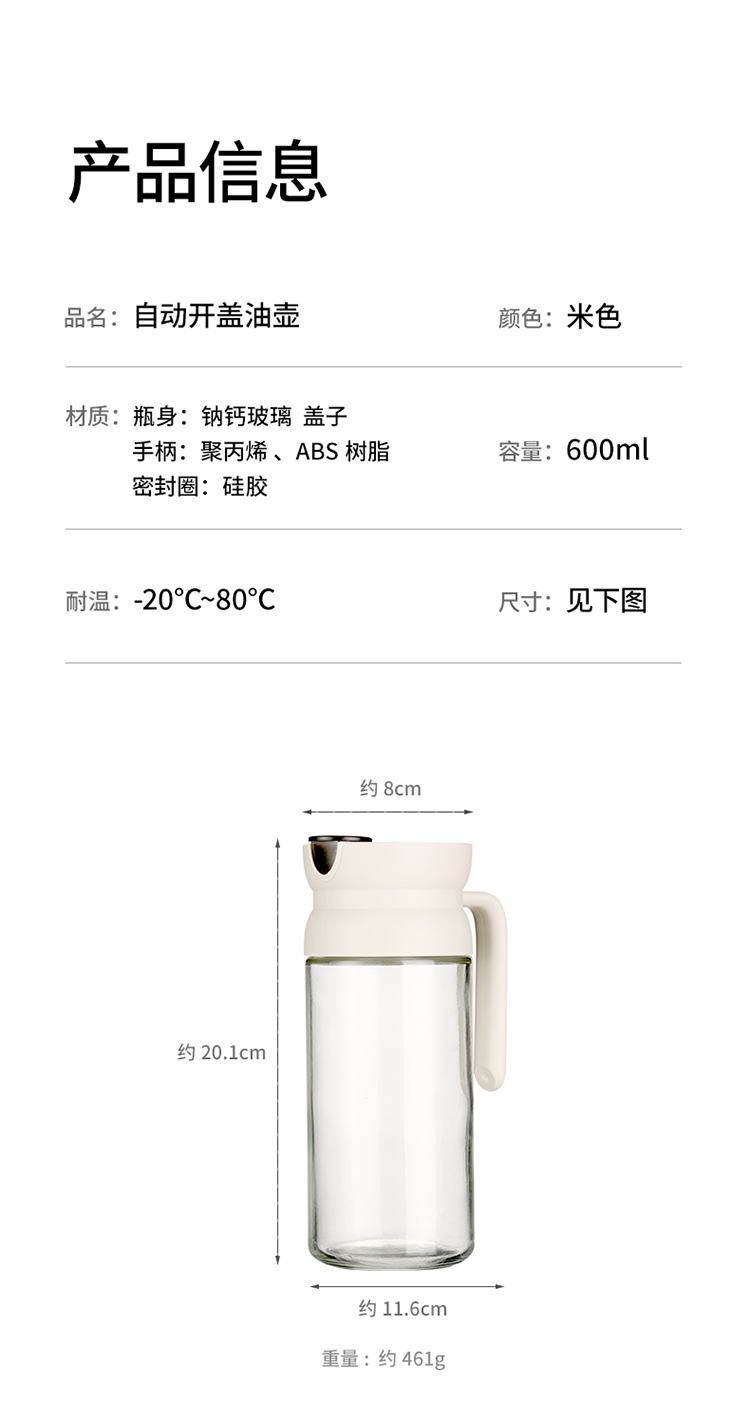 FaSoLa玻璃油壶家用厨房自动开合大容量油壶酱油醋调料瓶重力油瓶