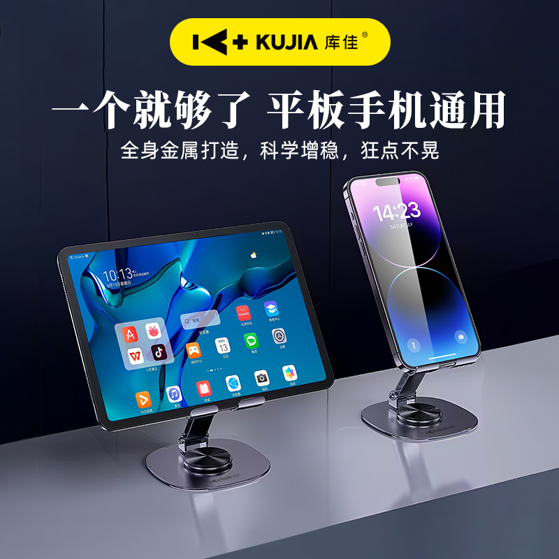 【库佳 旋转折叠手机支架】买一送一,PS+五金底座,升降折叠旋转支架,一架多用,选它错不了!