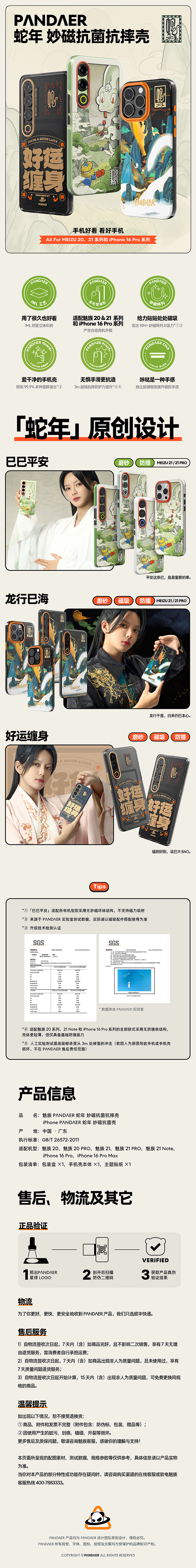 魅族 20/21系列、iPhone 16Pro/ProMax 已巳蛇年 妙磁抗菌抗摔壳
