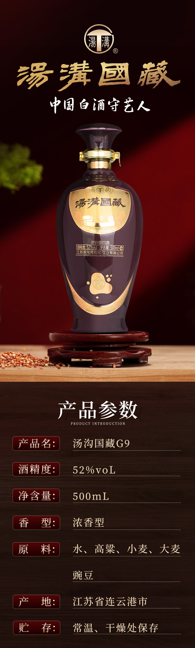 52度汤沟国藏G9(2021版)*500ML 单瓶装