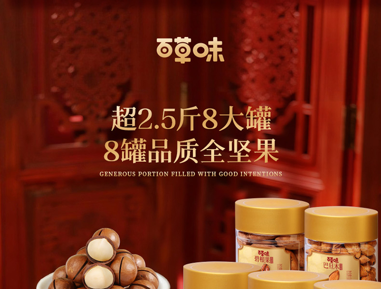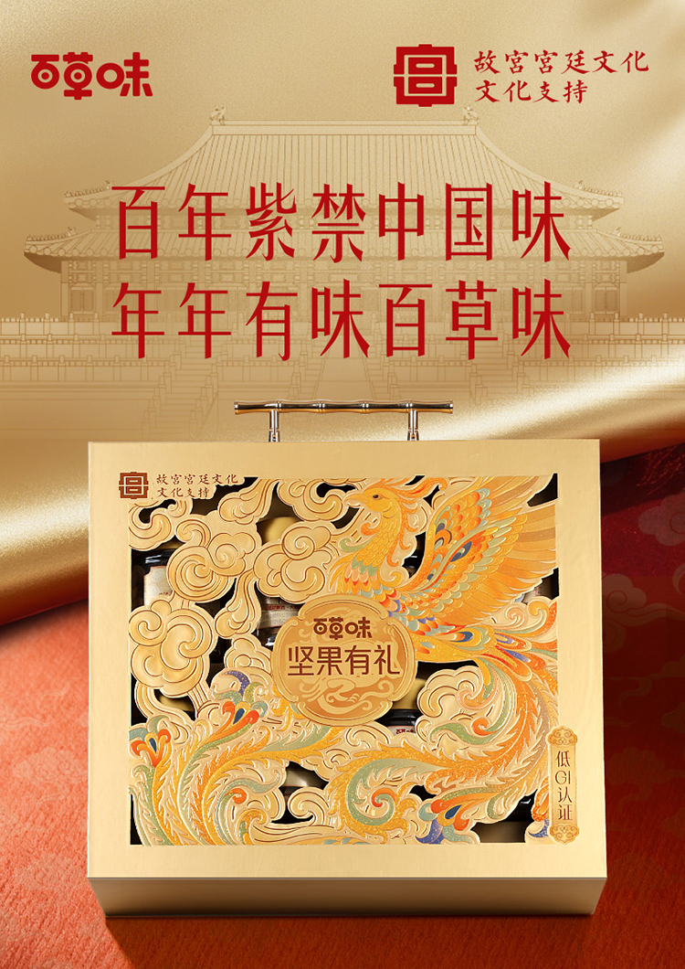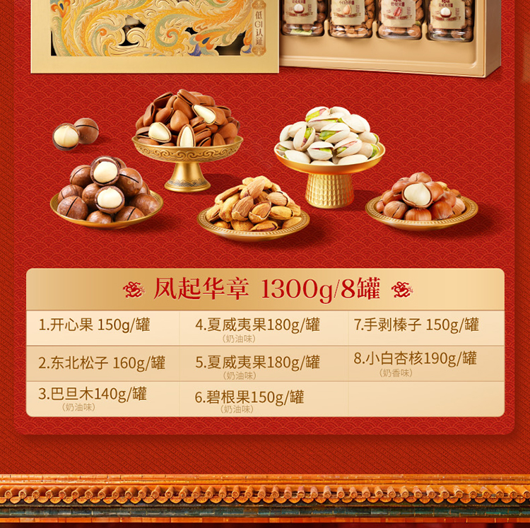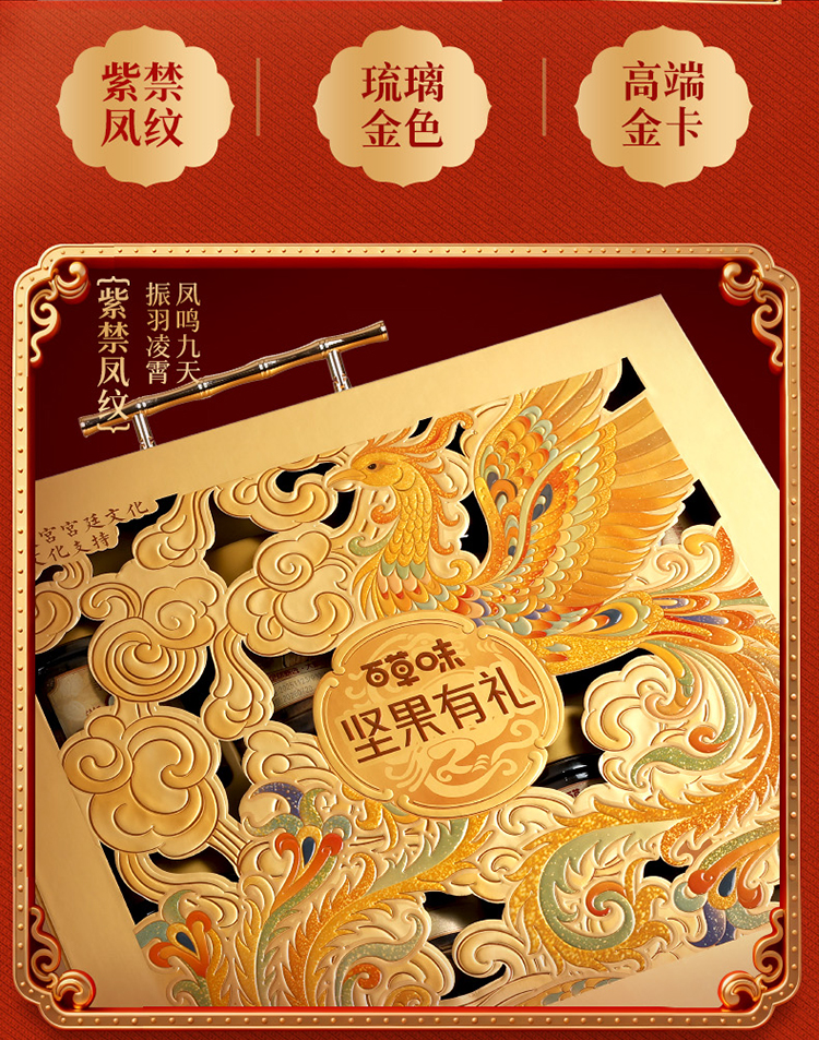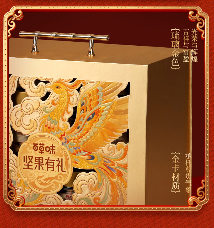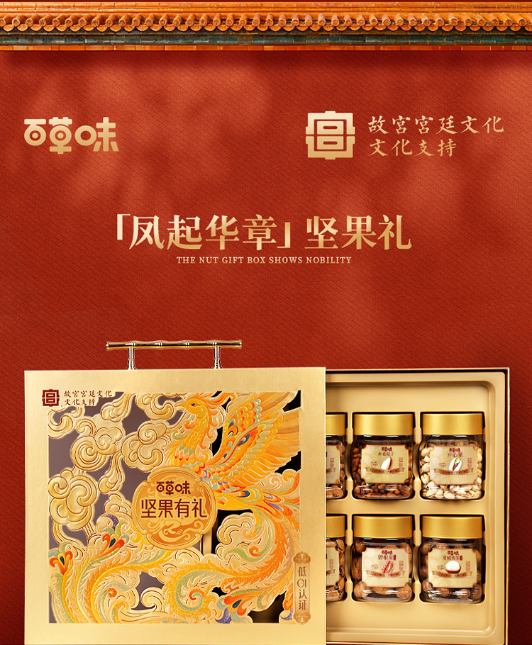 【百草味】罐装坚果零食礼盒D4-1300g(坚果有礼-椭开窗)凤起华章