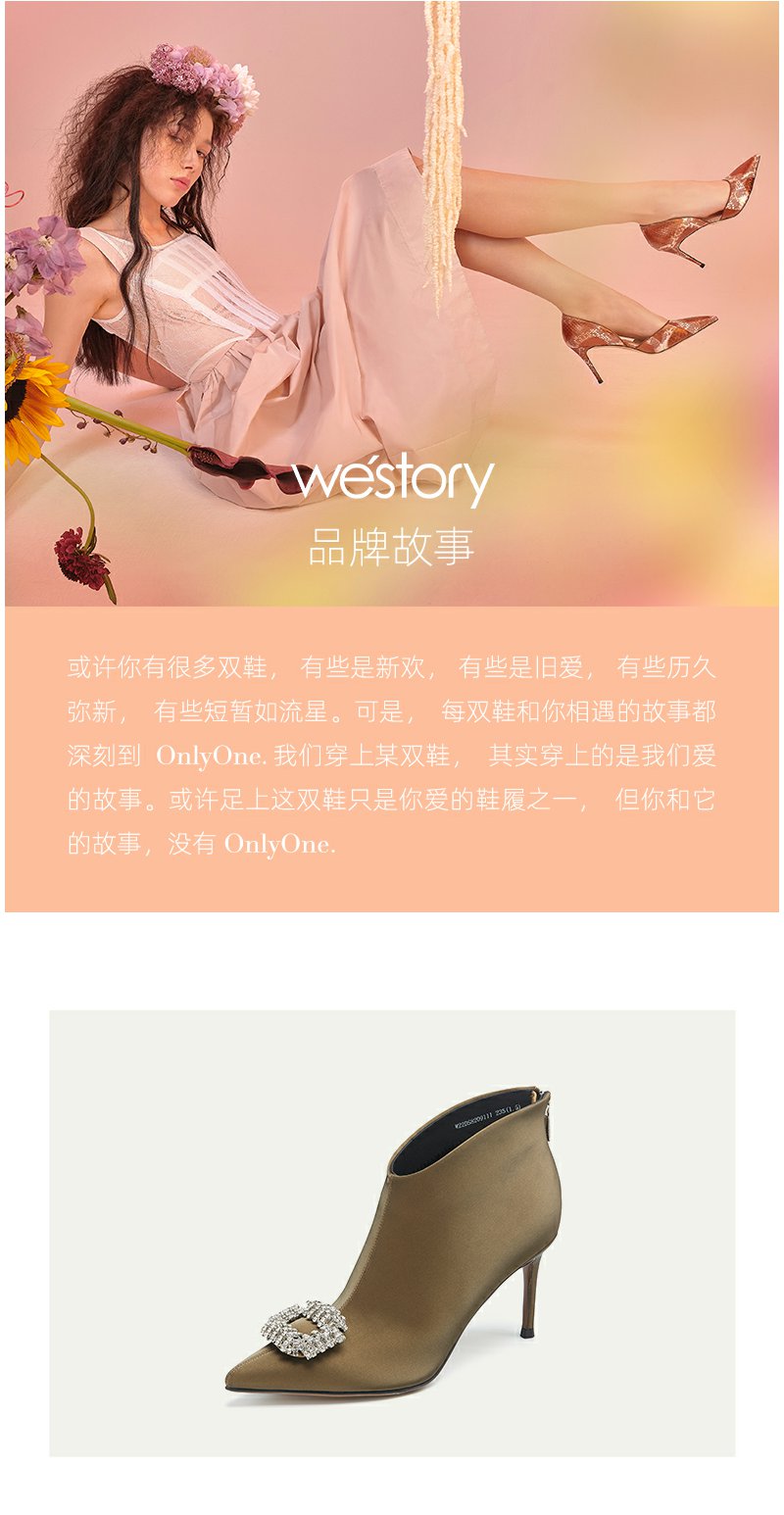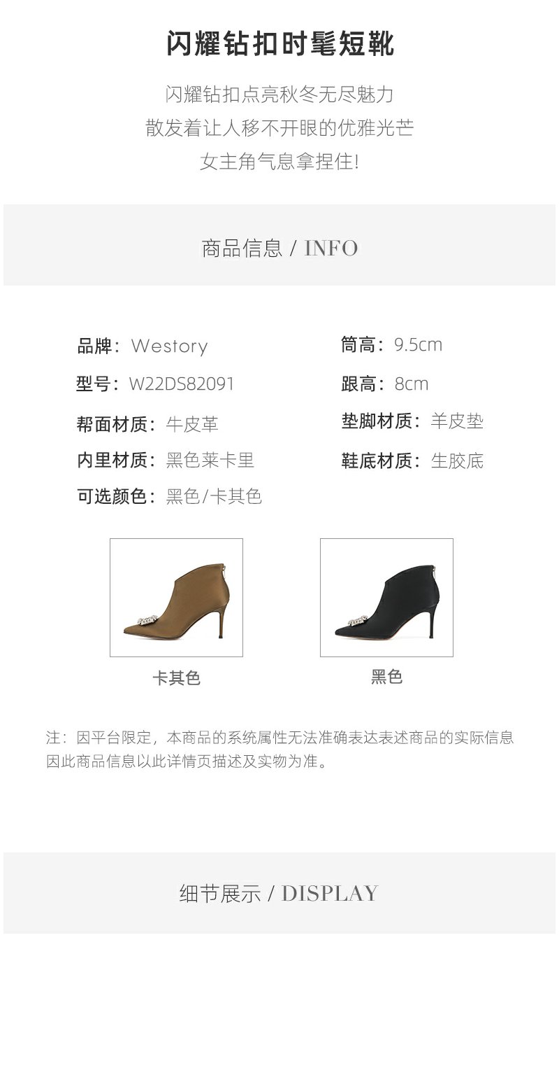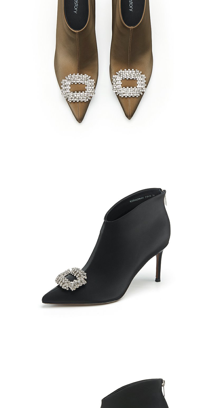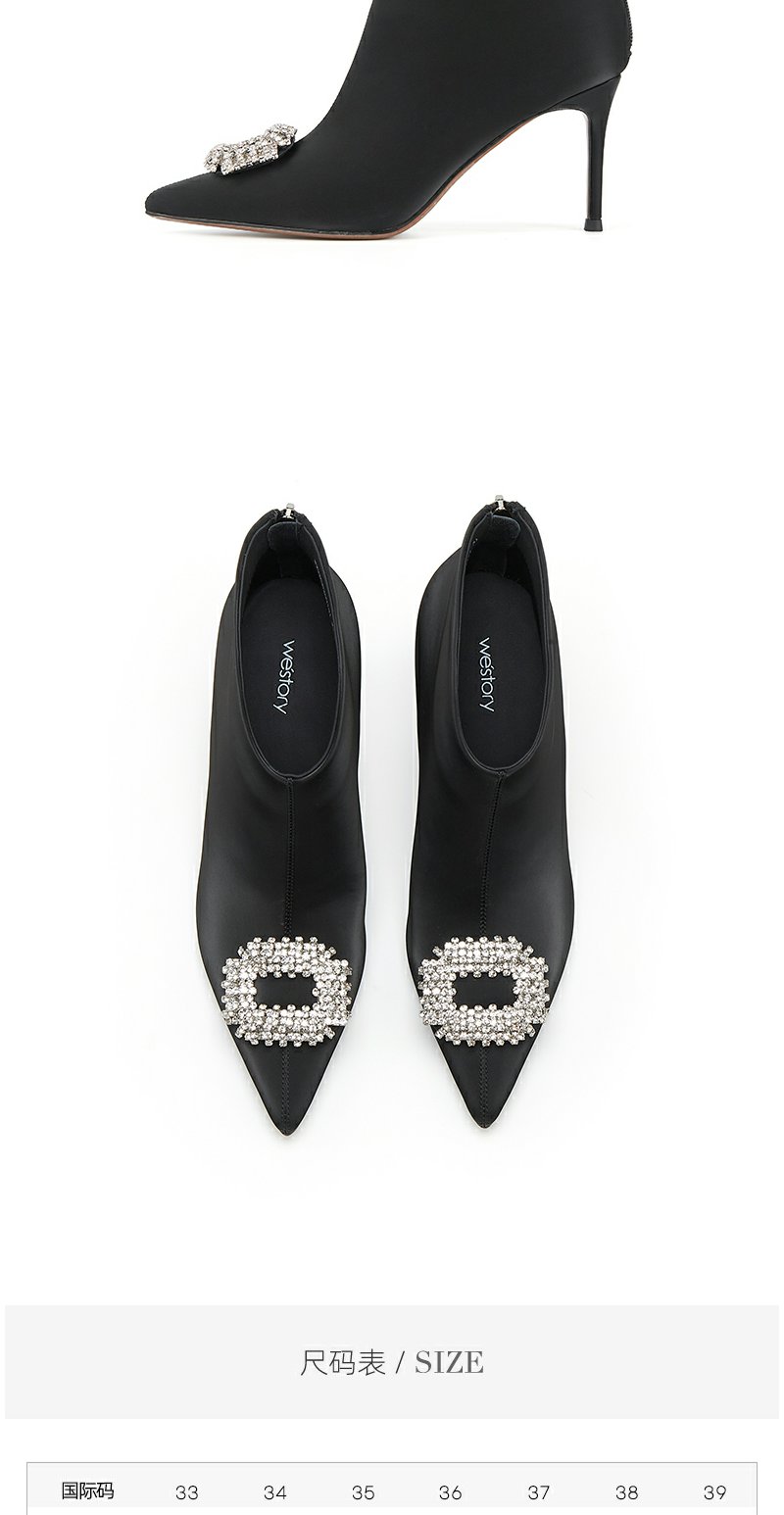 westory复古钻扣尖头细高跟增高百搭22秋新款时装短靴82091