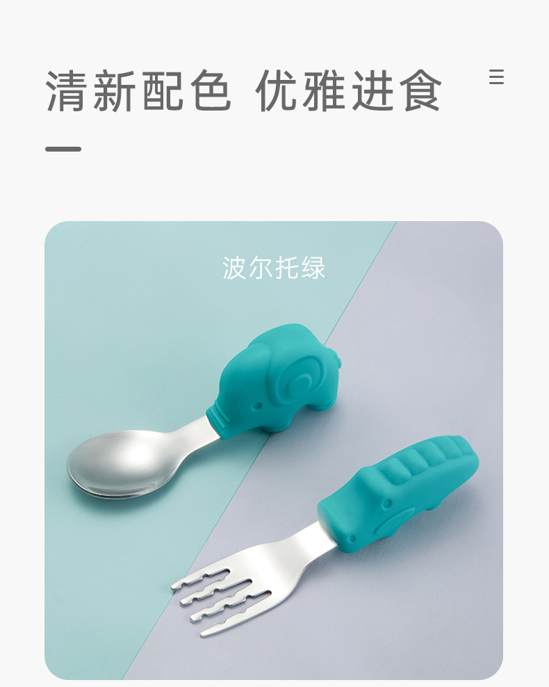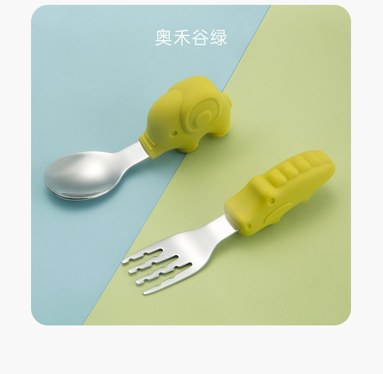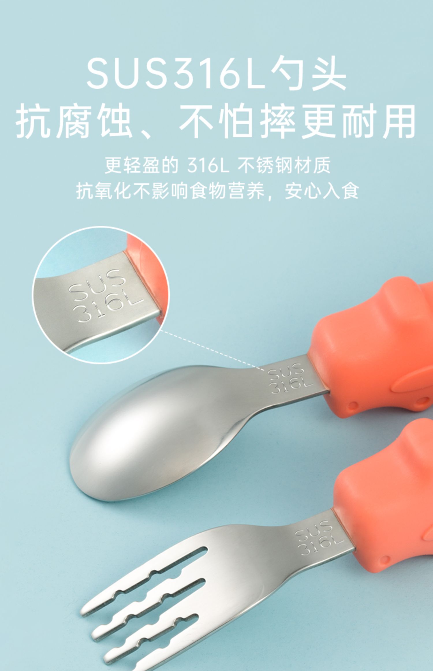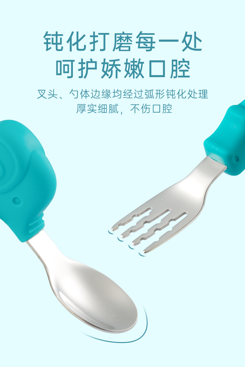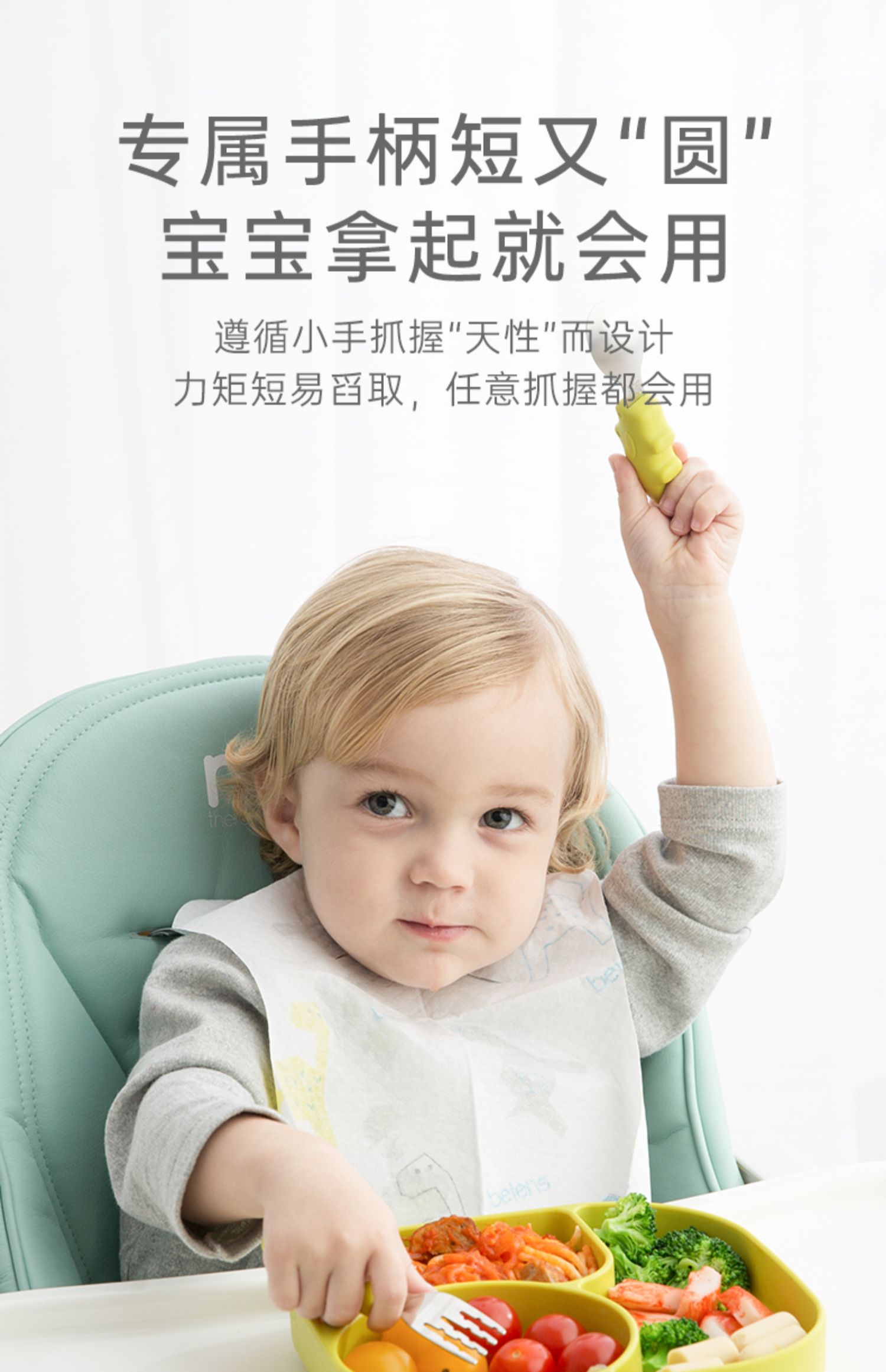 贝恩施宝宝餐具短柄勺子叉子婴儿辅食勺儿童训练学吃饭叉勺不锈钢